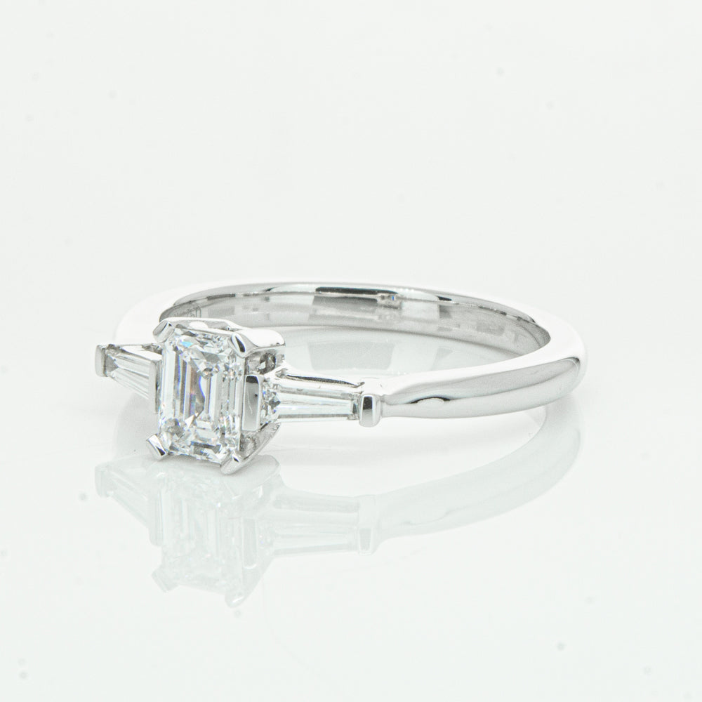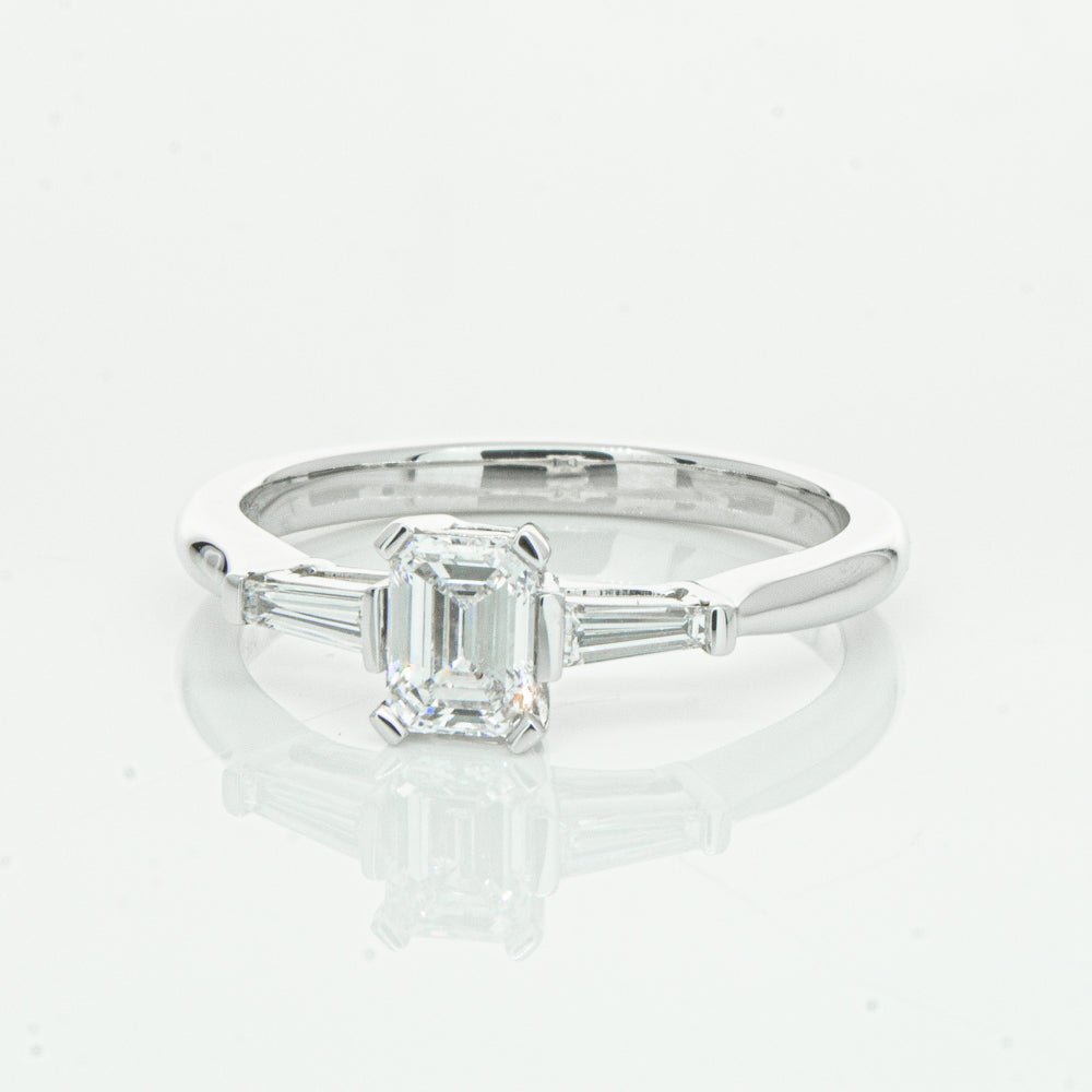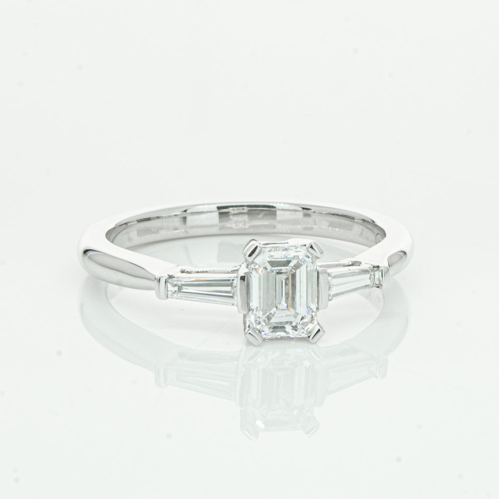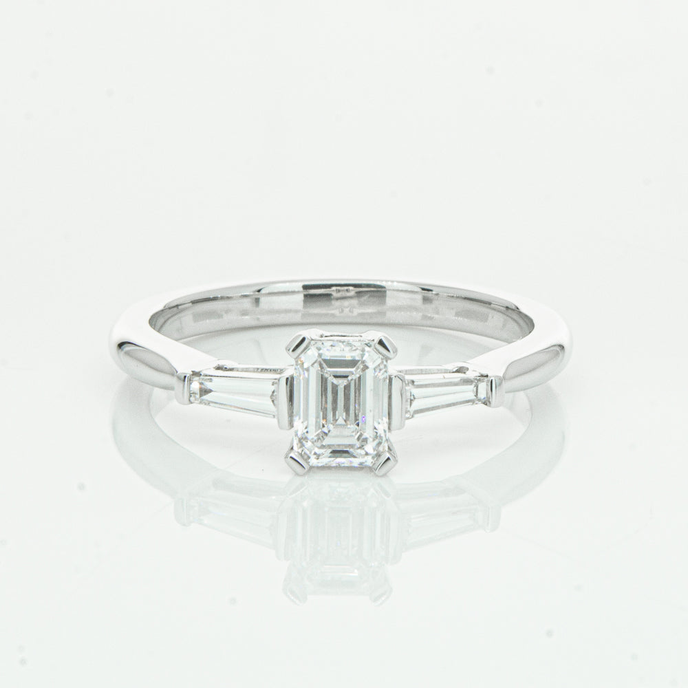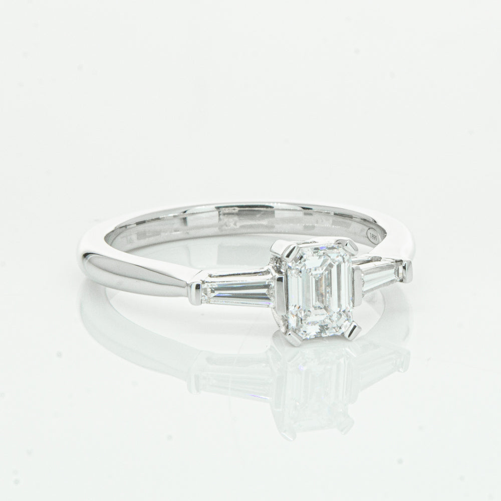 18ct White Gold Emerald-Cut and Taper-Cut Diamond Ring