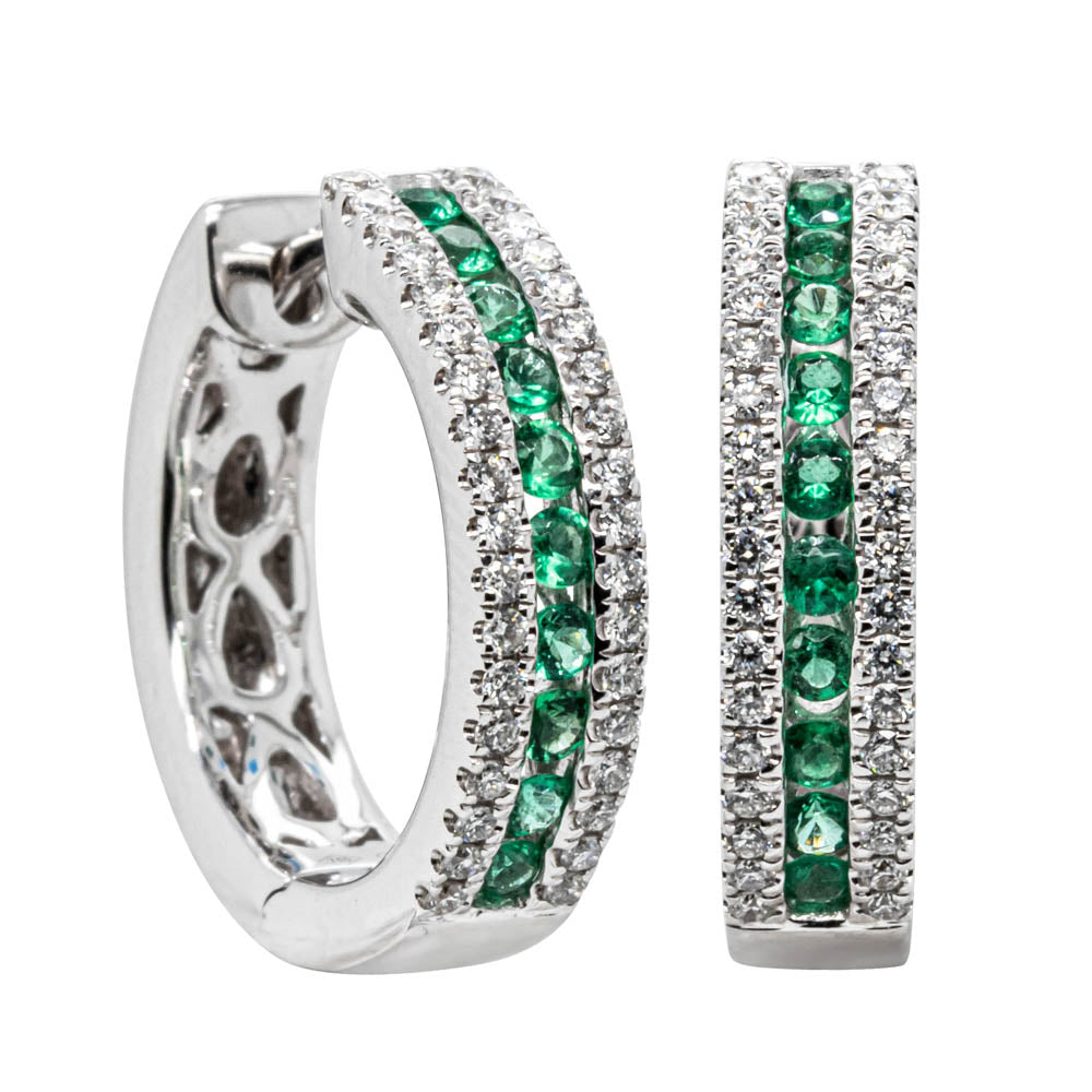 You will absolutely glow in these beautiful 18ct white gold and emerald hoop earrings. Boasting bright green emeralds and twinkling white diamonds, it is the perfect earring to spoil yourself with.