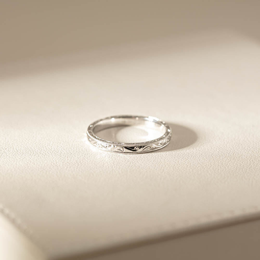 Carefully crafted in 18ct white gold from our signature 1899 collection, this ring features a beautiful and intricate engraving that will certainly impress.