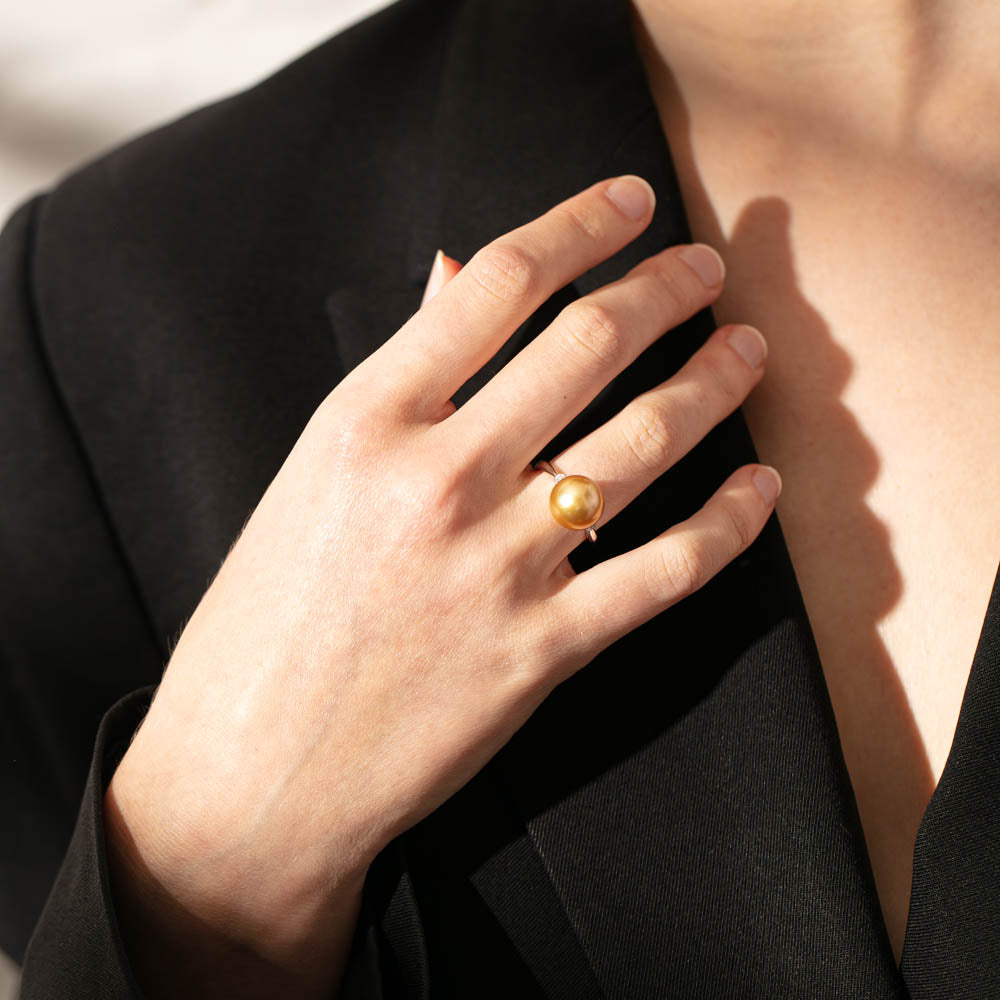 Elegant and timeless...you will cherish this divine golden south sea pearl and diamond ring from our signature 1899 collection for years to come. Beautifully crafted in 18ct white gold, this precious piece boasts a yellow golden pearl. You will adore showing off this classic piece!