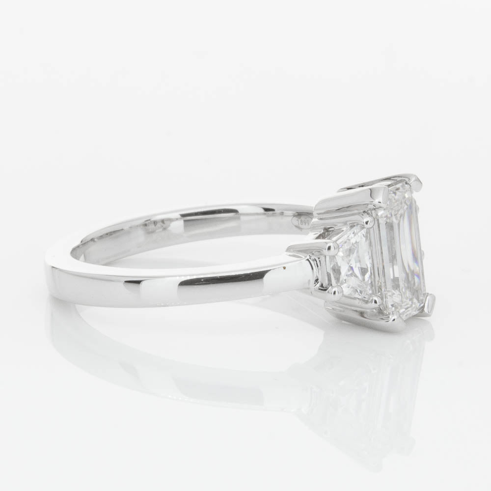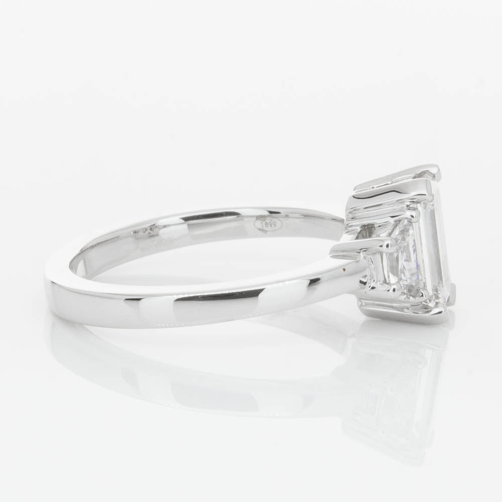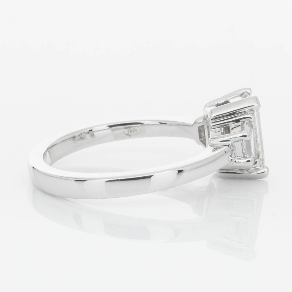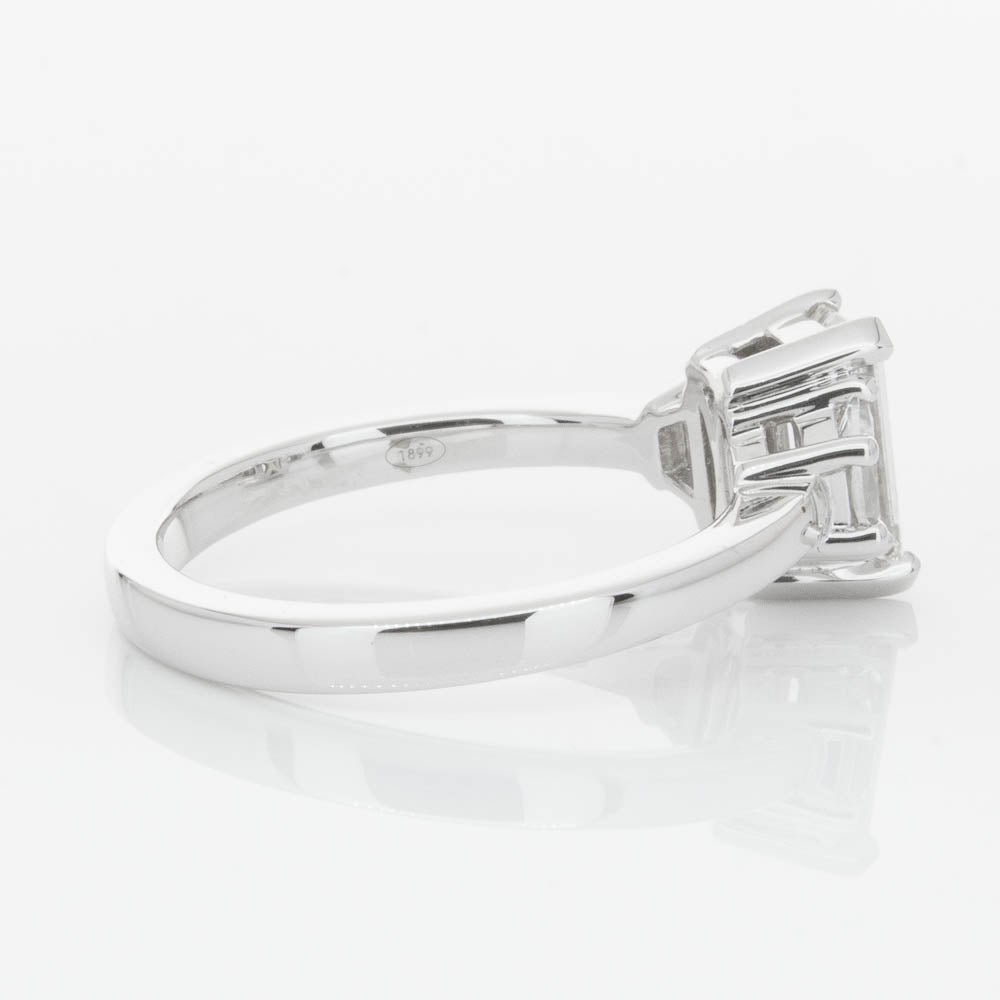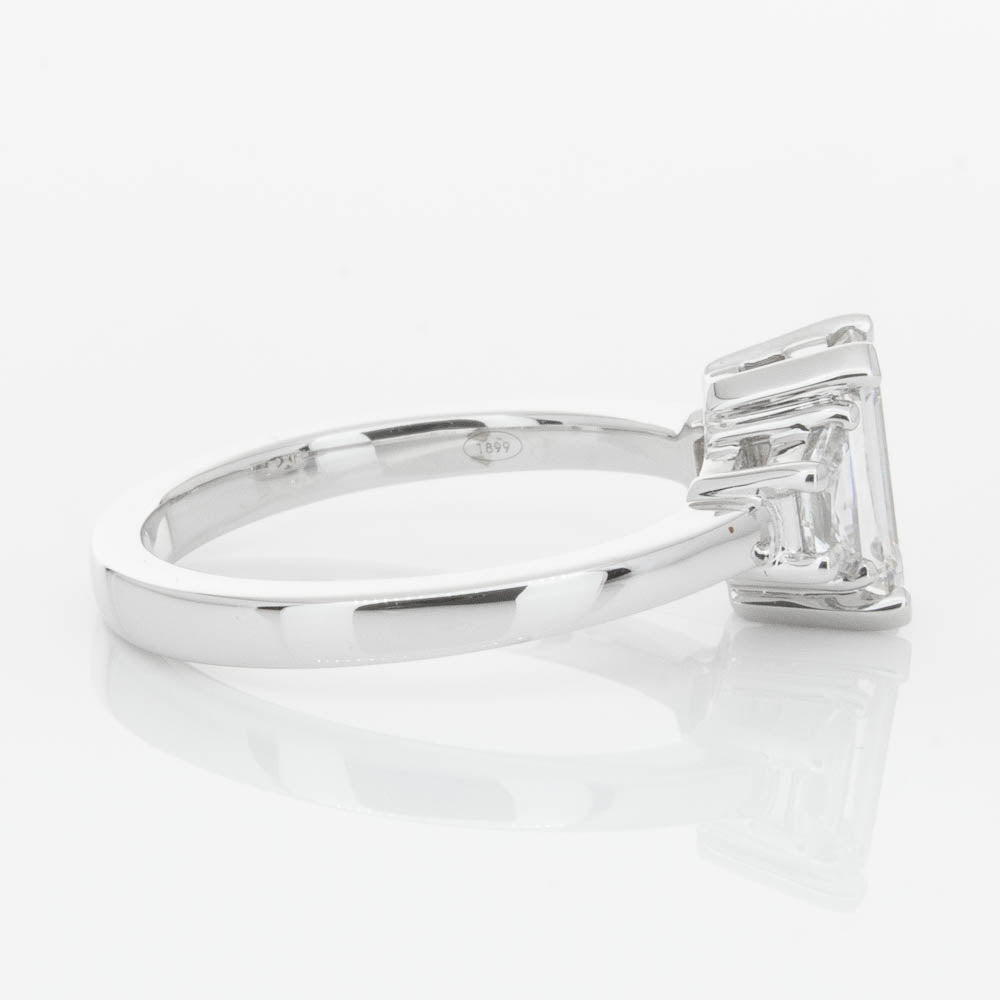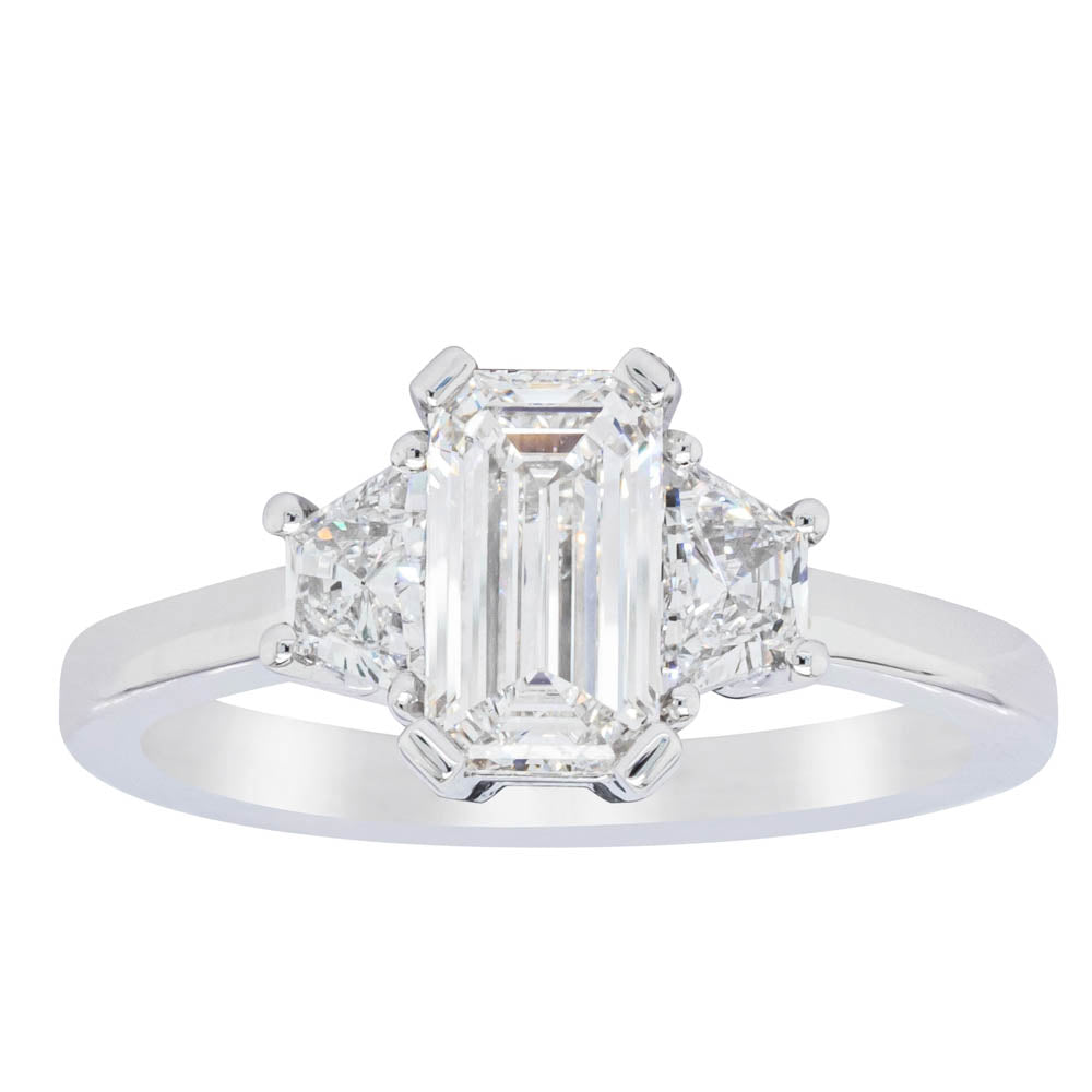 Beautifully crafted in 18ct white gold from our signature 1899 collection, this dazzling Odyssey ring boasts one sparkling emerald cut centre diamond and flanked by two striking taper cut diamonds. A ring you will treasure for years to come.