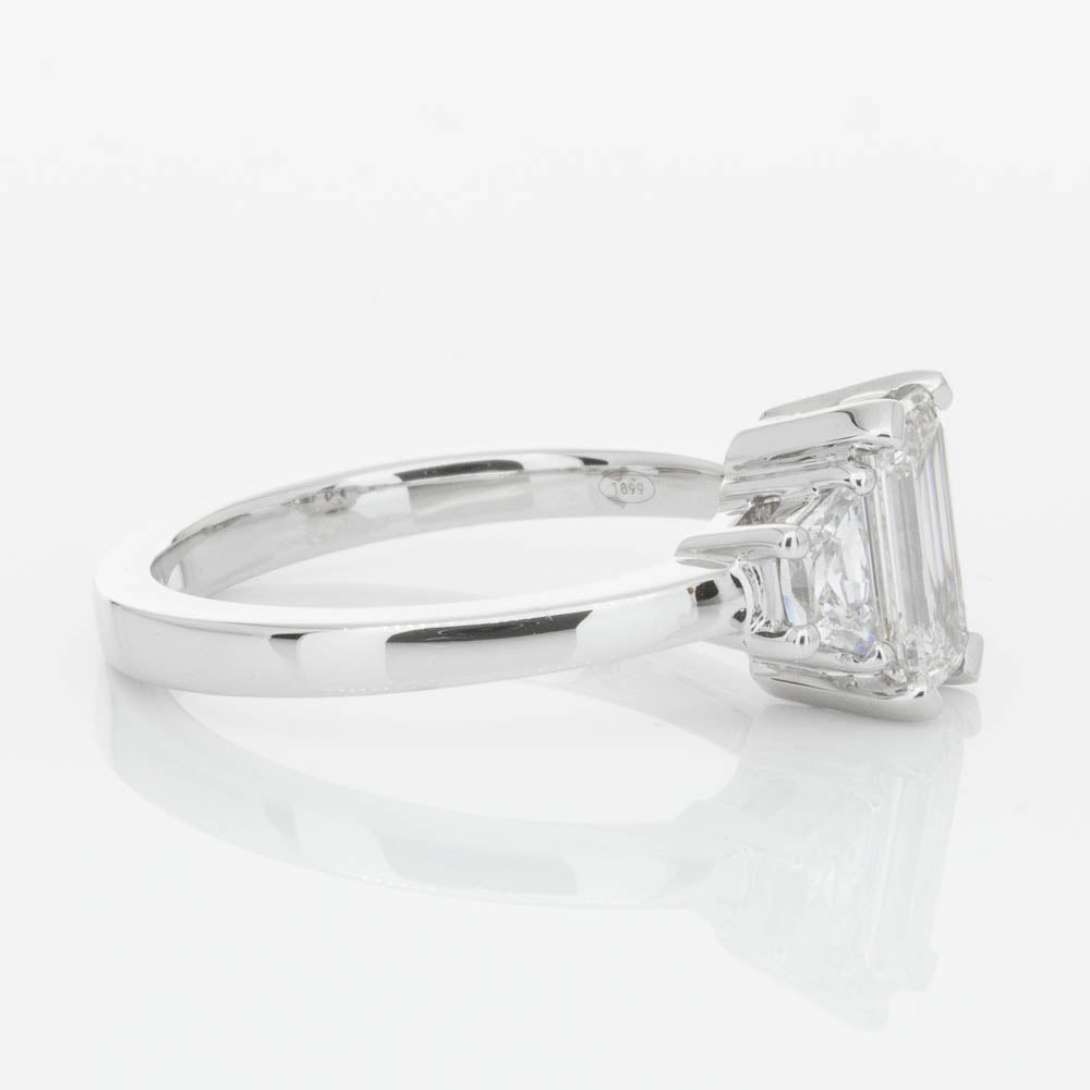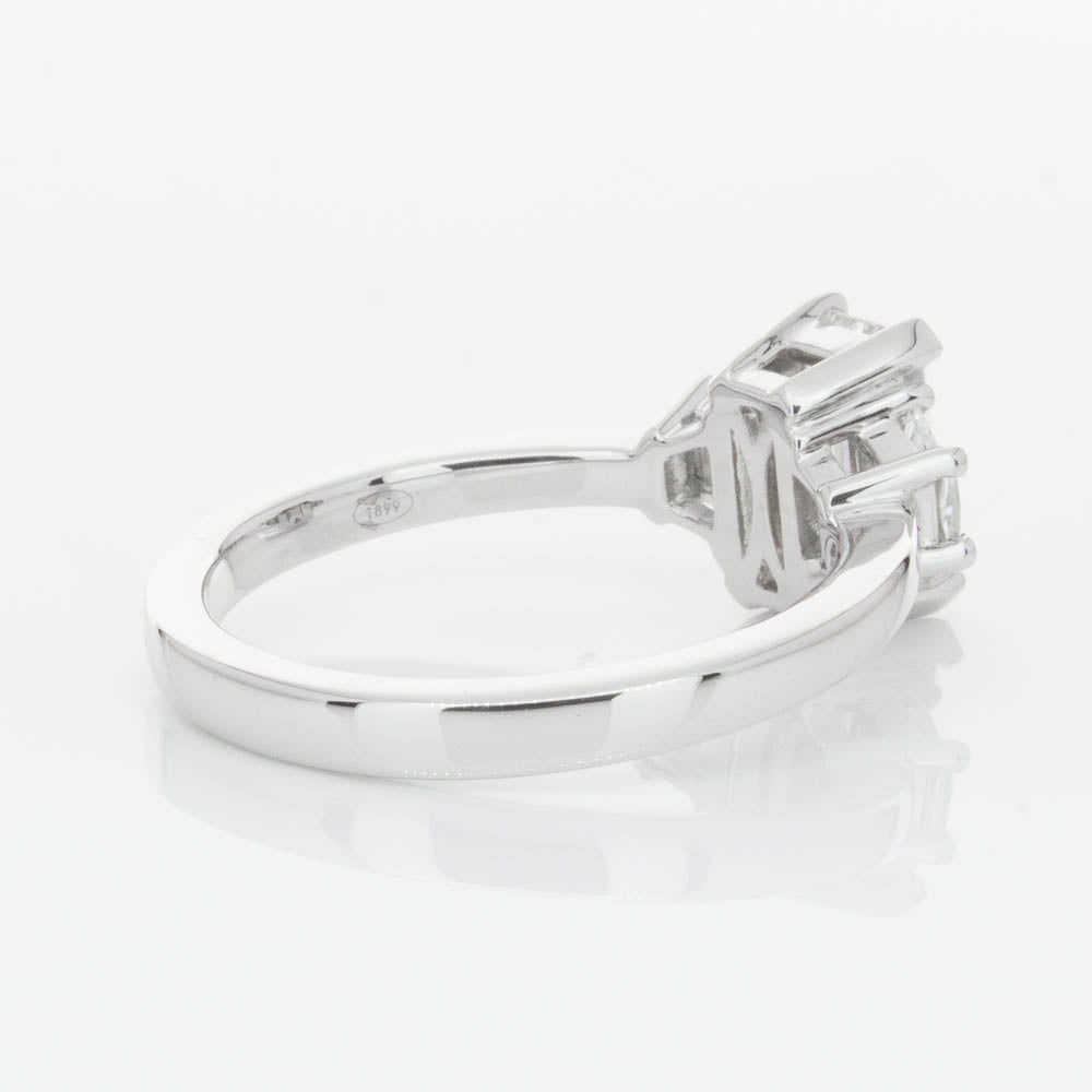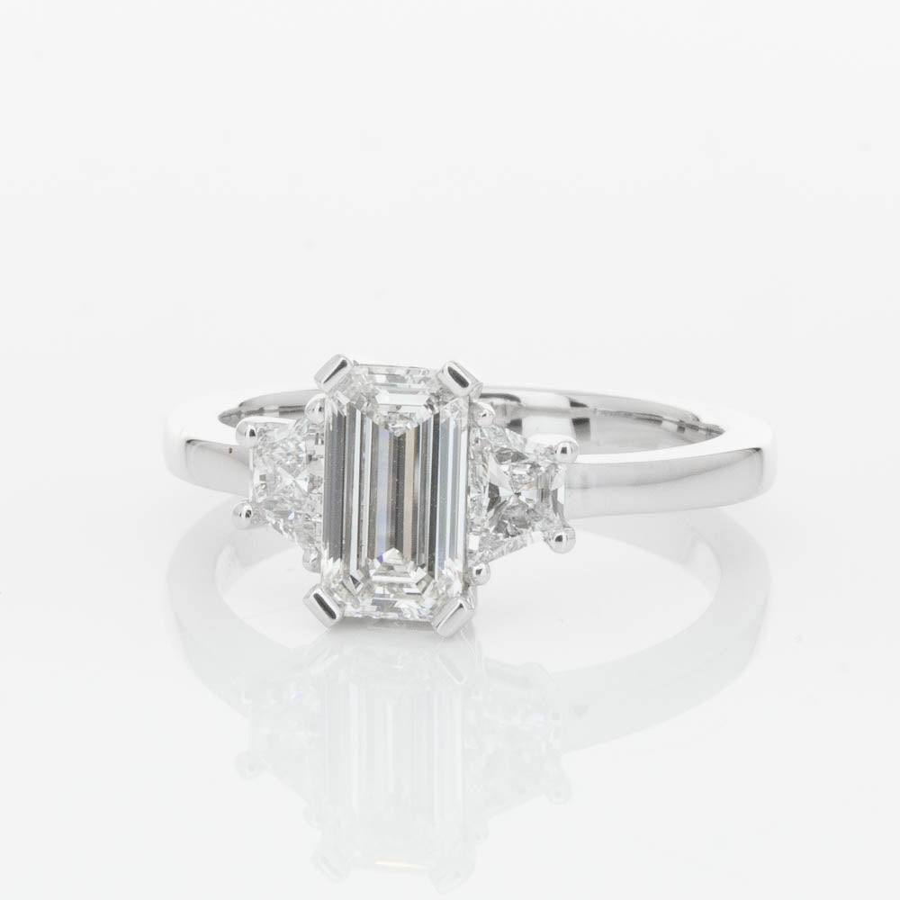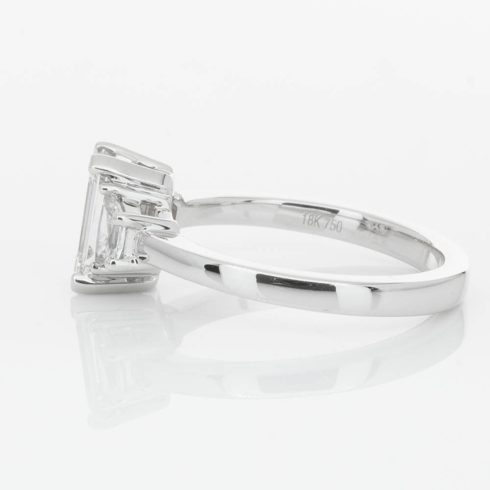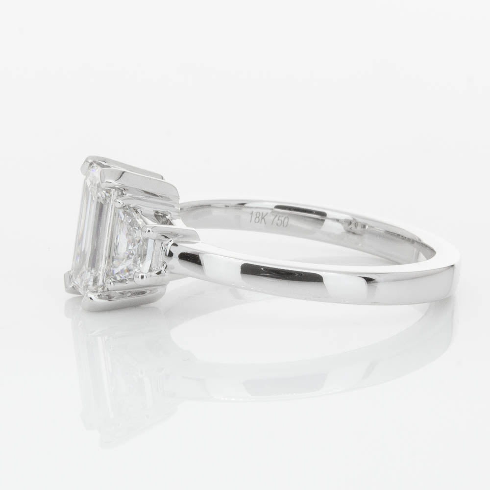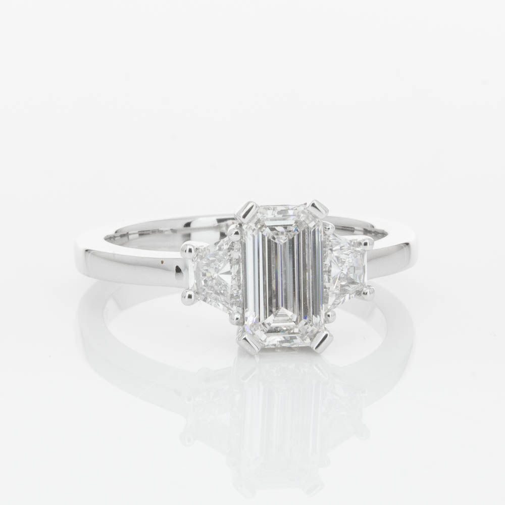 Beautifully crafted in 18ct white gold from our signature 1899 collection, this dazzling Odyssey ring boasts one sparkling emerald cut centre diamond and flanked by two striking taper cut diamonds. A ring you will treasure for years to come.