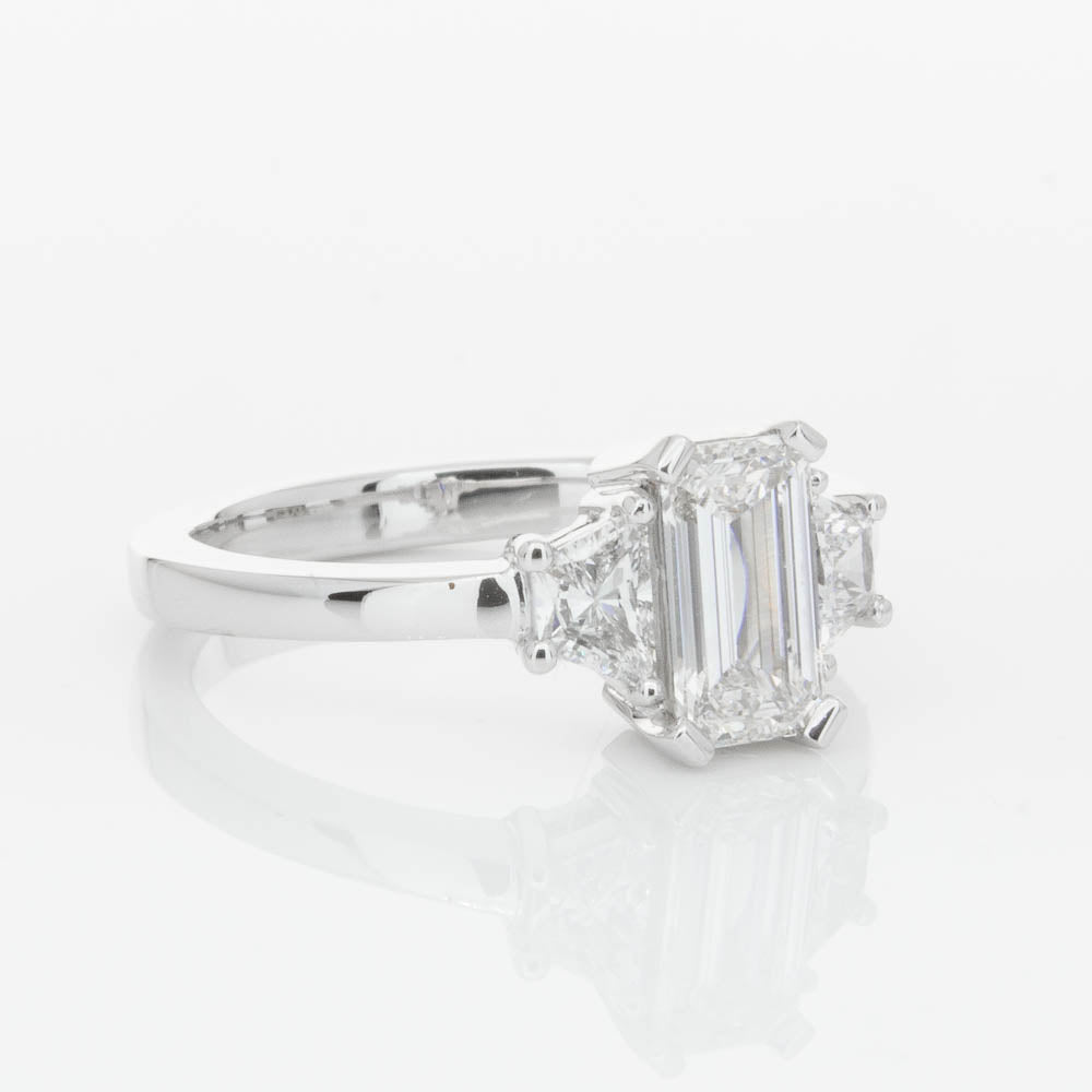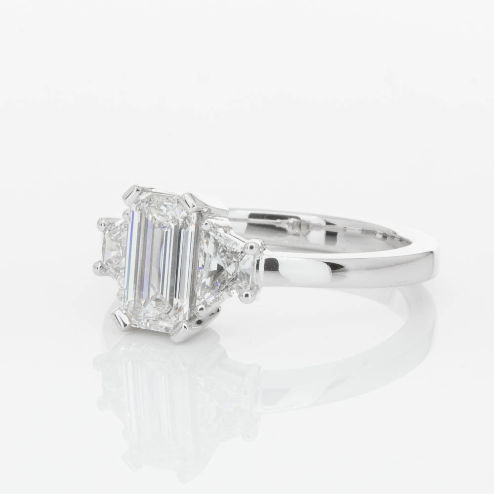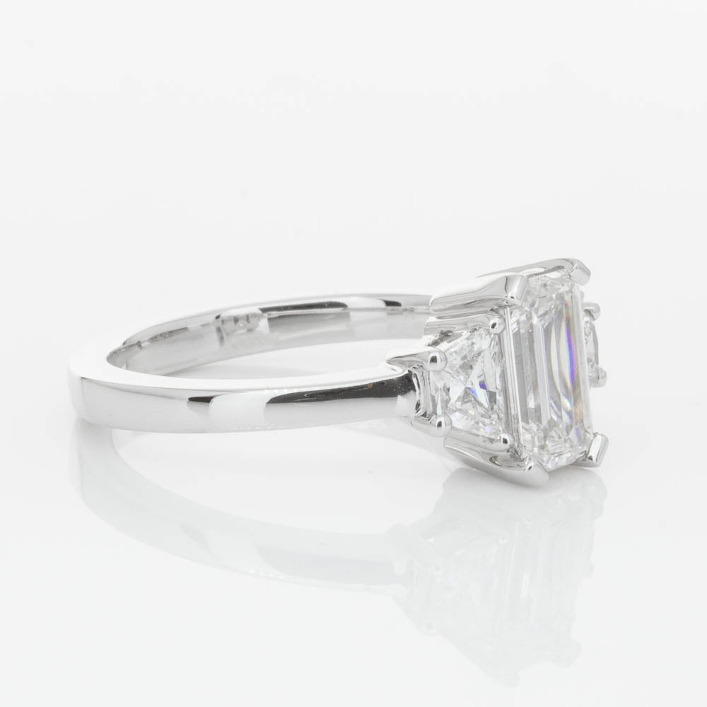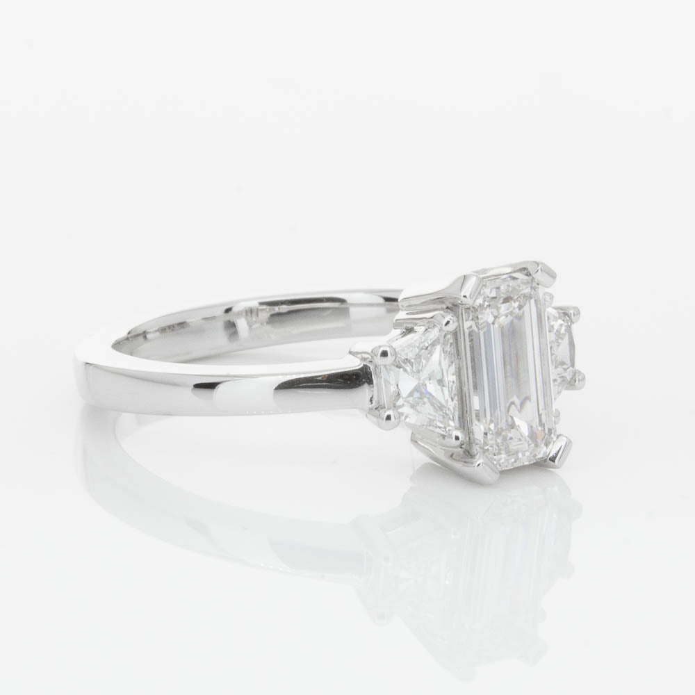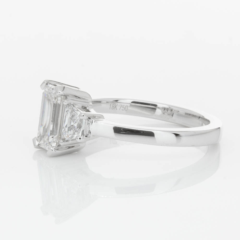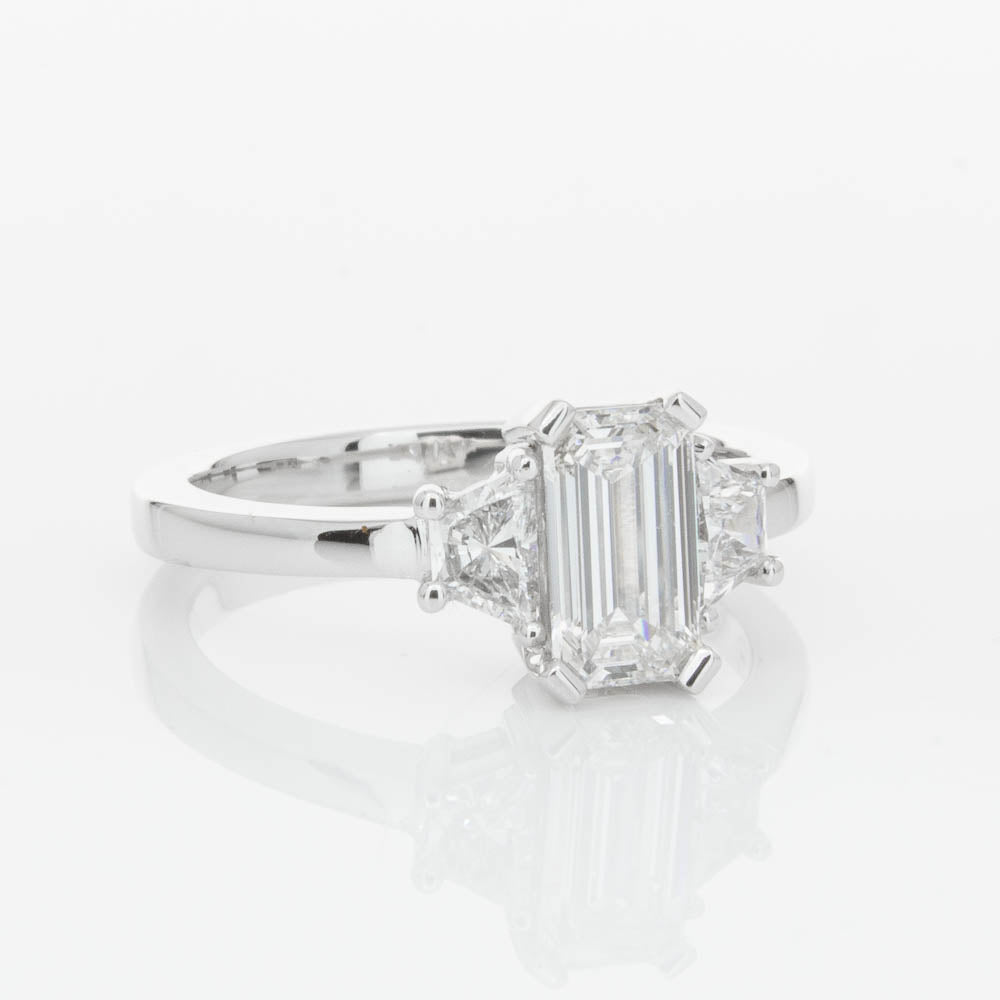Beautifully crafted in 18ct white gold from our signature 1899 collection, this dazzling Odyssey ring boasts one sparkling emerald cut centre diamond and flanked by two striking taper cut diamonds. A ring you will treasure for years to come.