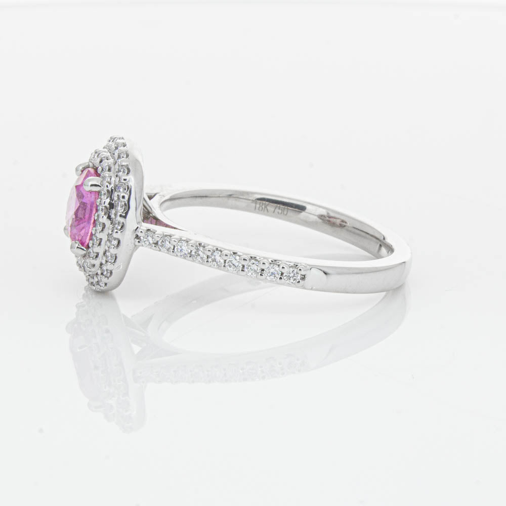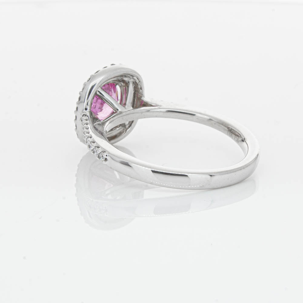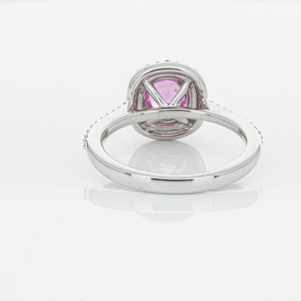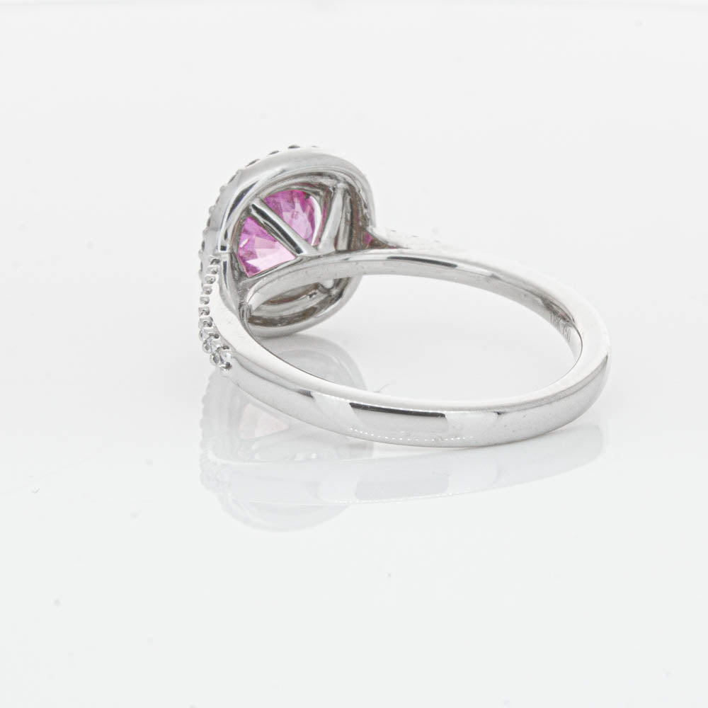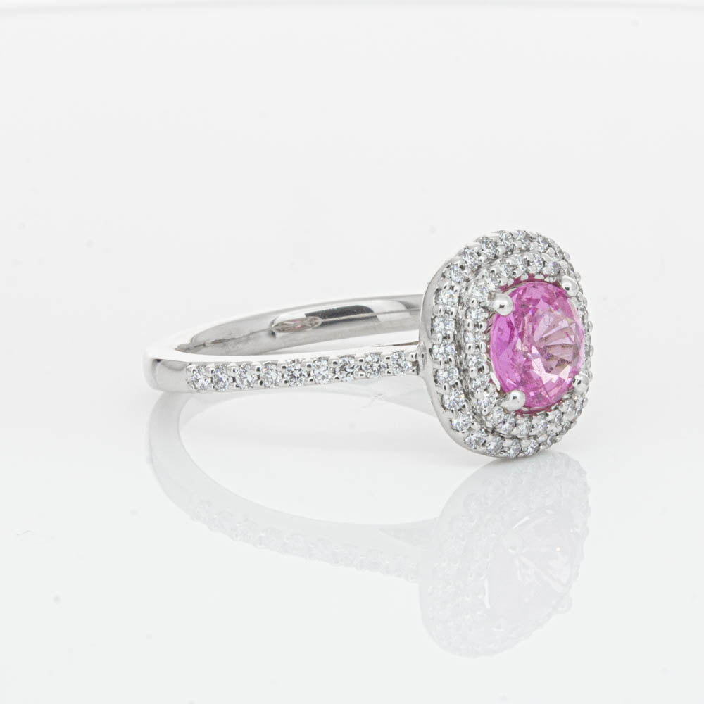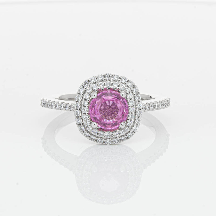 For the moment when only a grand gesture will do, there's the Rosa pink sapphire and diamond ring from our signature 1899 collection. Exceptionally crafted in our high palladium 18ct white gold, this Rosa ring features a purplish pink sapphire inside a double diamond halo creating a breathtaking display of brilliance beyond comparison.