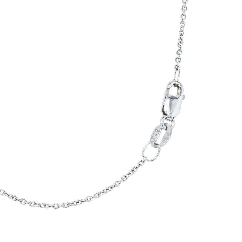 Pendant rests on a 9ct white gold 45cm cable link chain.