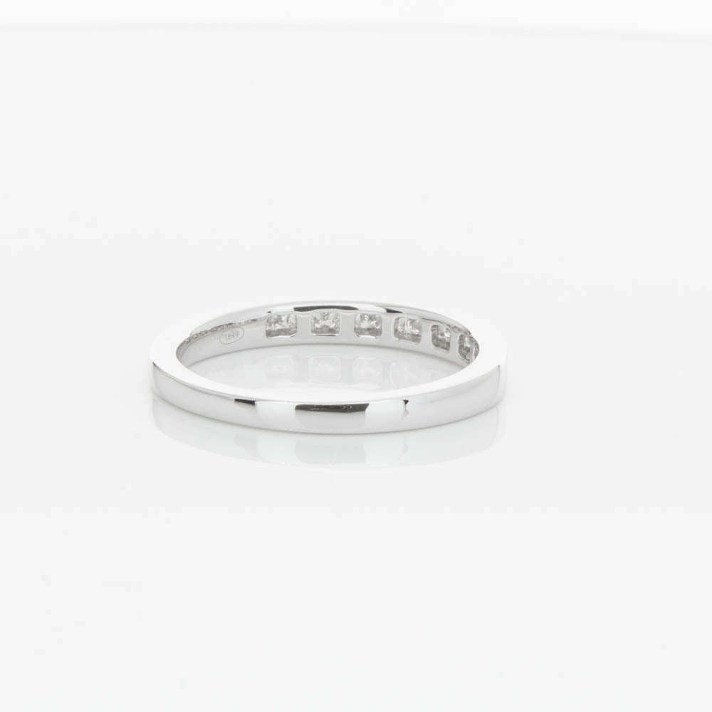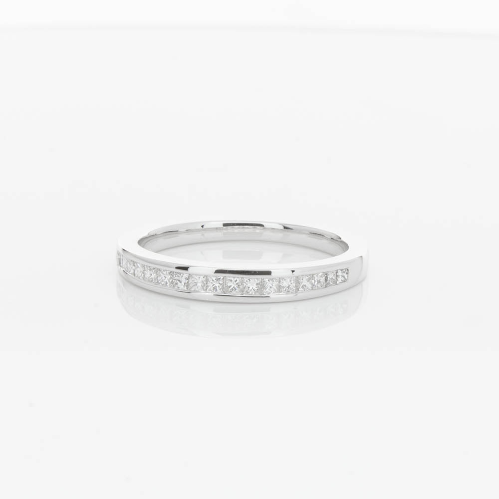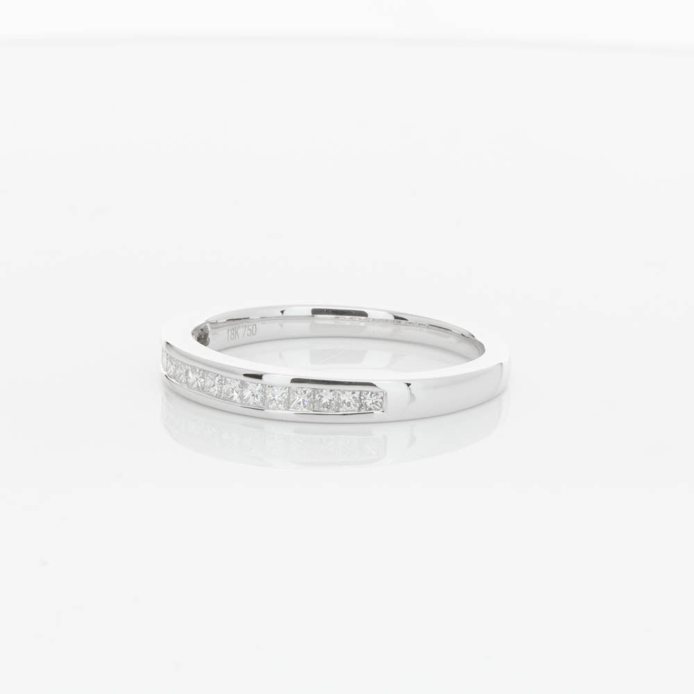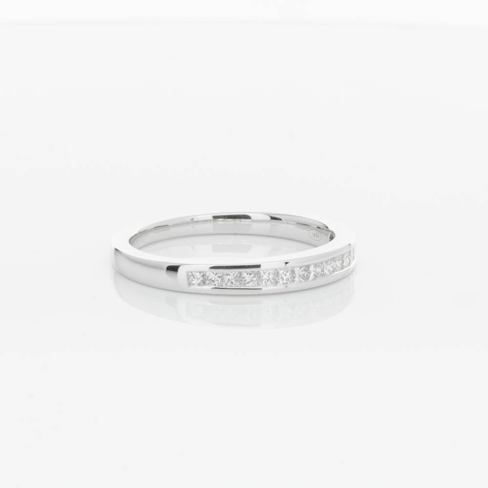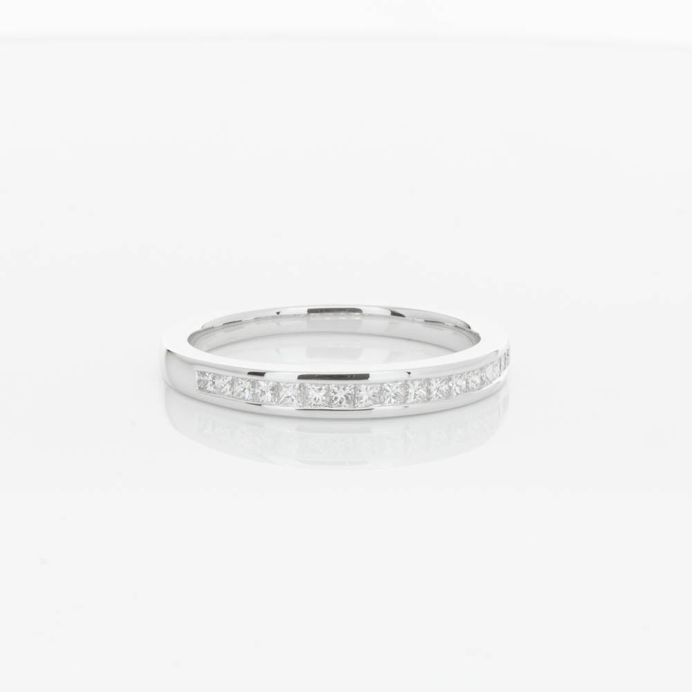 Carefully crafted in 18ct white gold from our signature 1899 collection this tapering band is 1.8-2.7mm wide and features 17 princess cut diamonds in a channel setting.