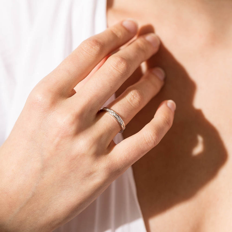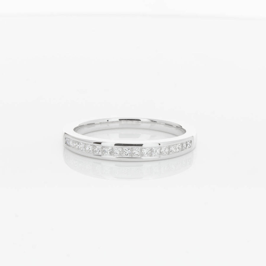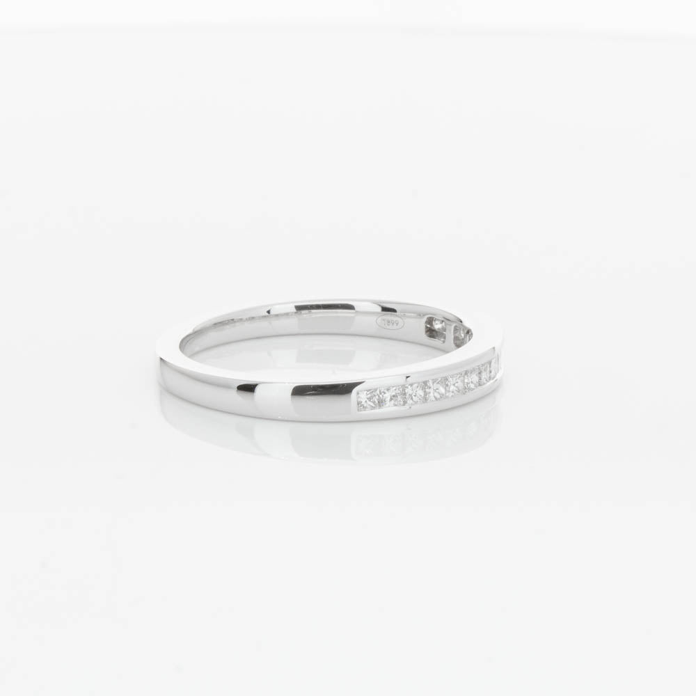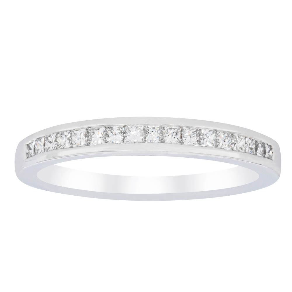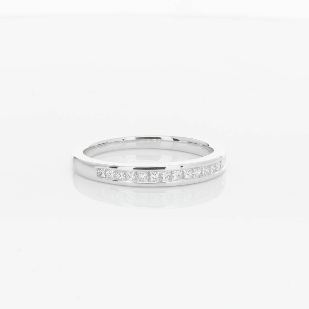 Carefully crafted in 18ct white gold from our signature 1899 collection this tapering band is 1.8-2.7mm wide and features 17 princess cut diamonds in a channel setting.