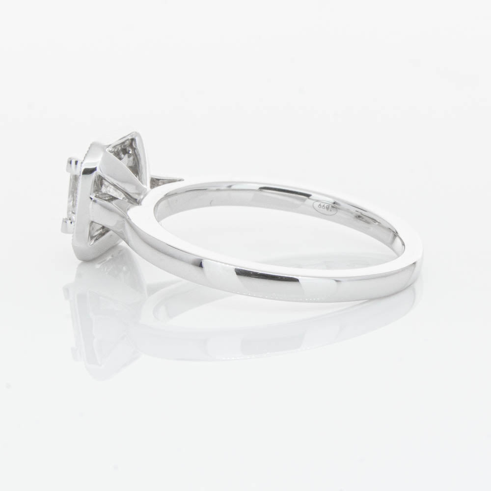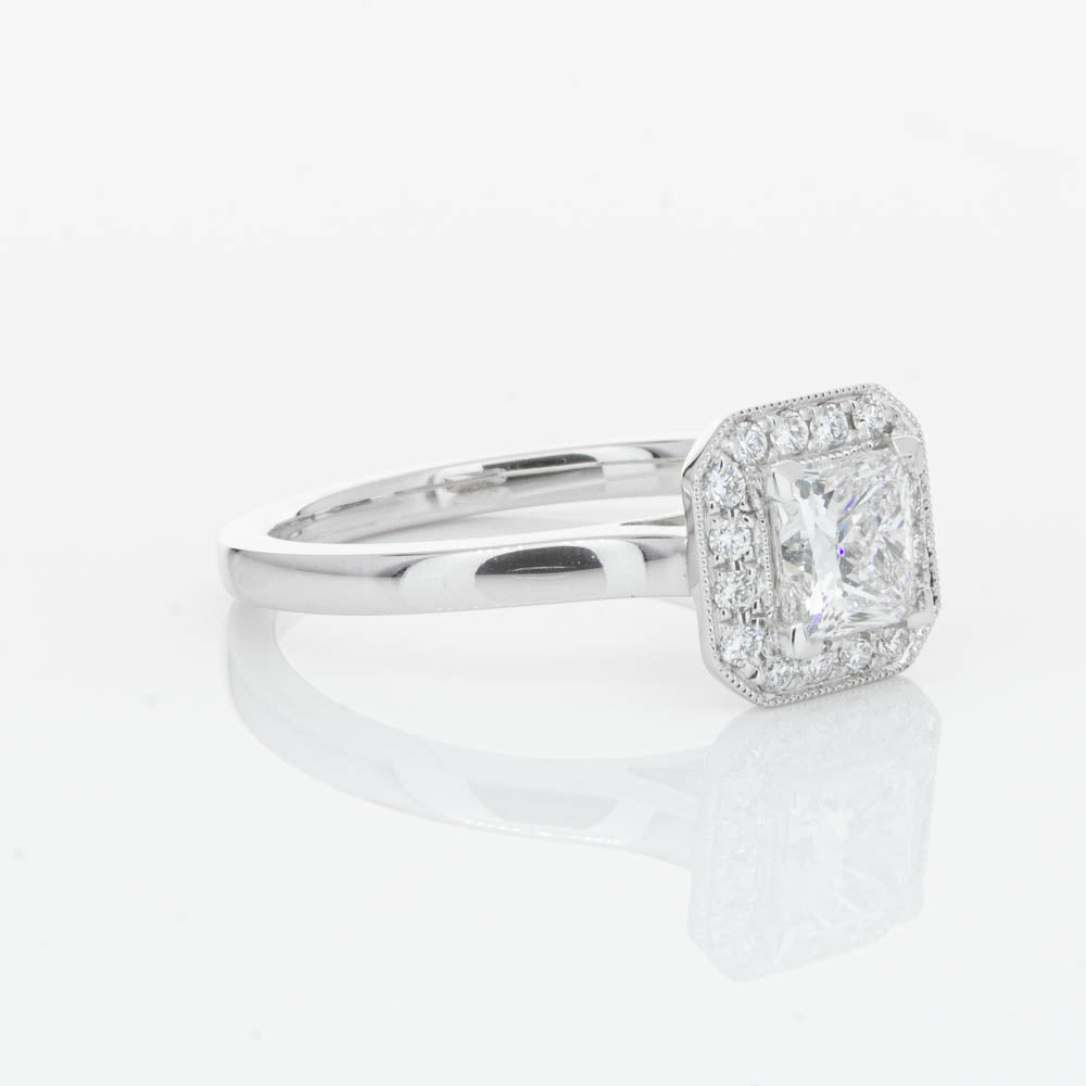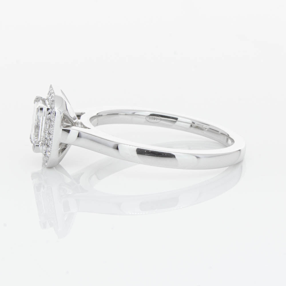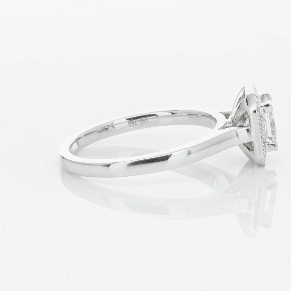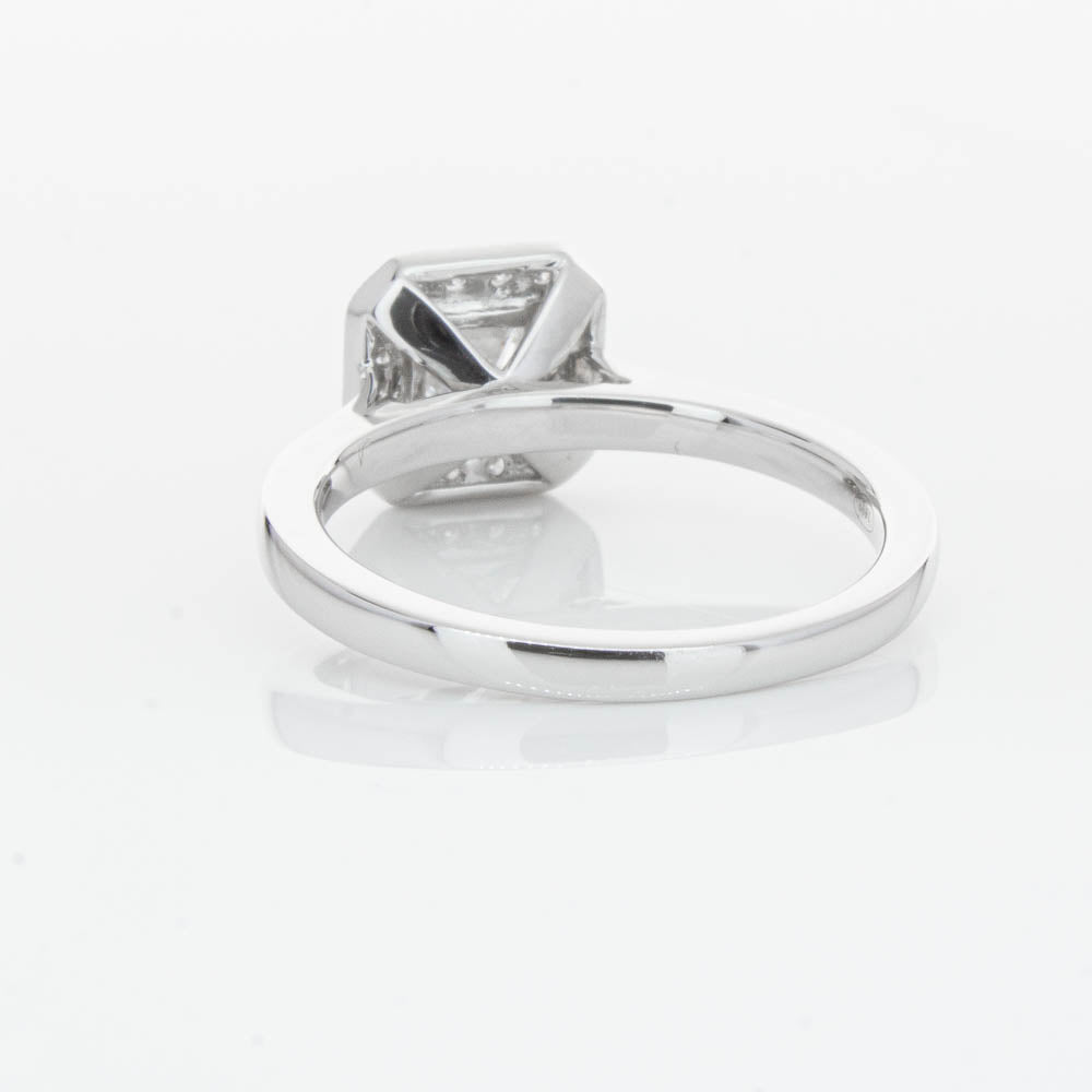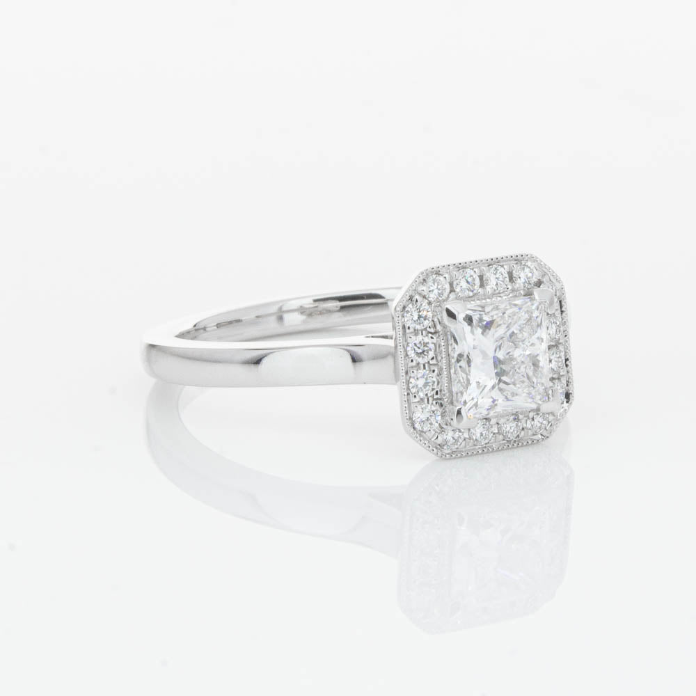 This elegant ring has been crafted in 18ct white gold from our signature 1899 collection, boasting a shining princess cut centre diamond framed by a glittering diamond halo.
