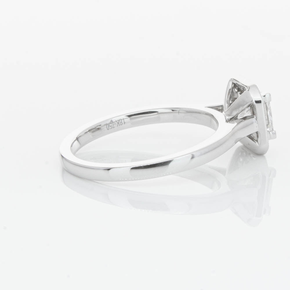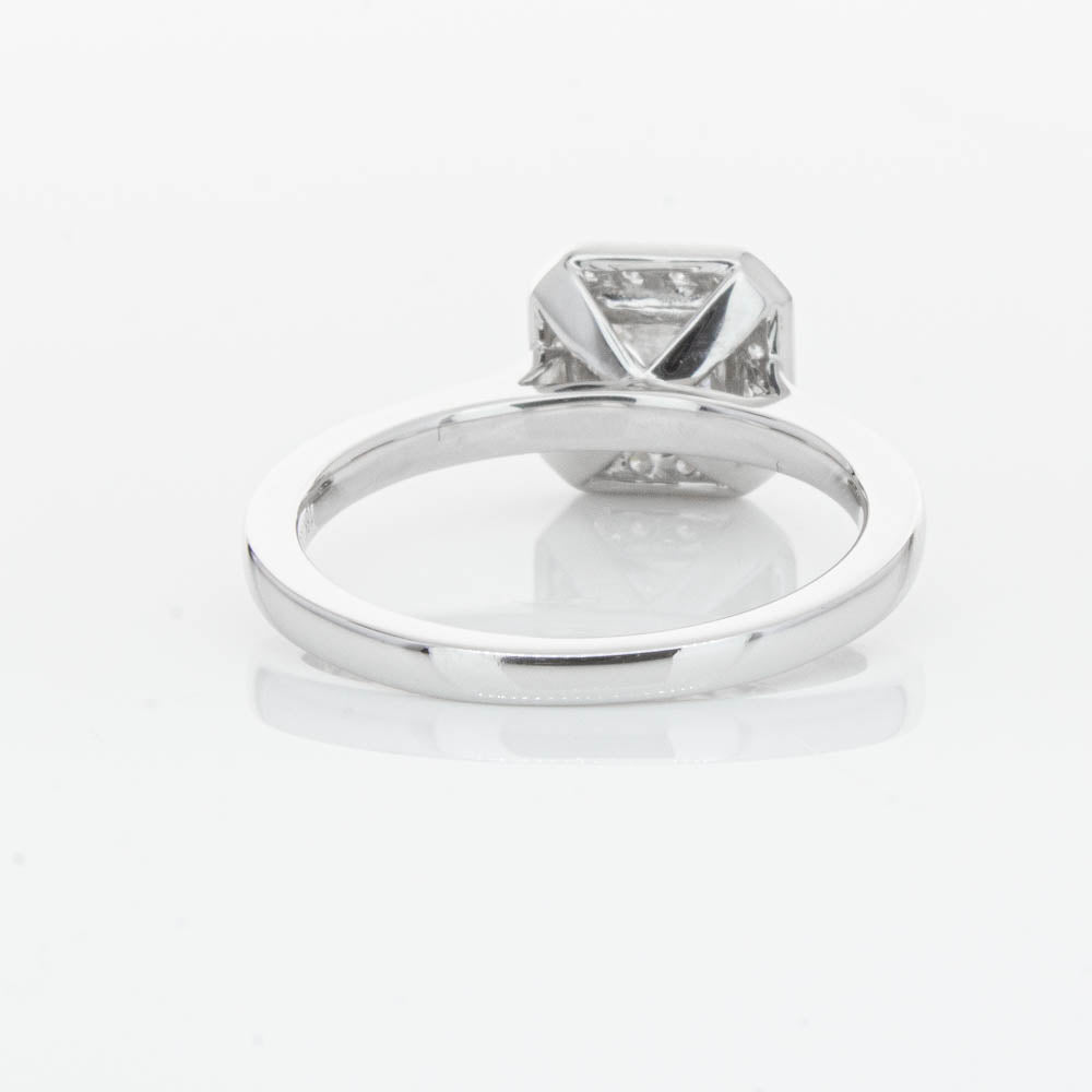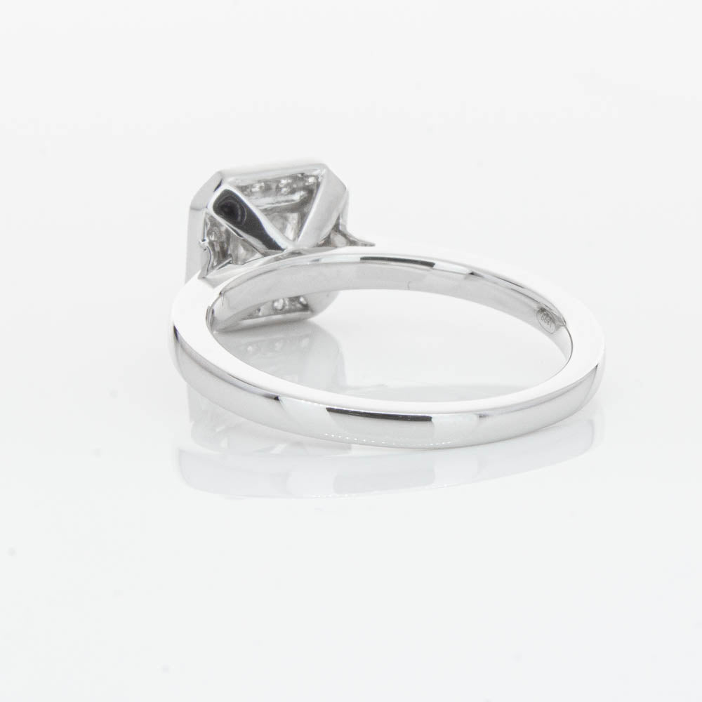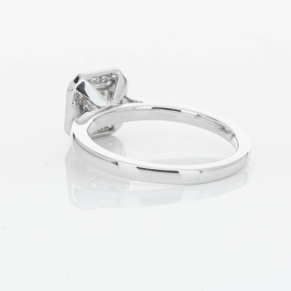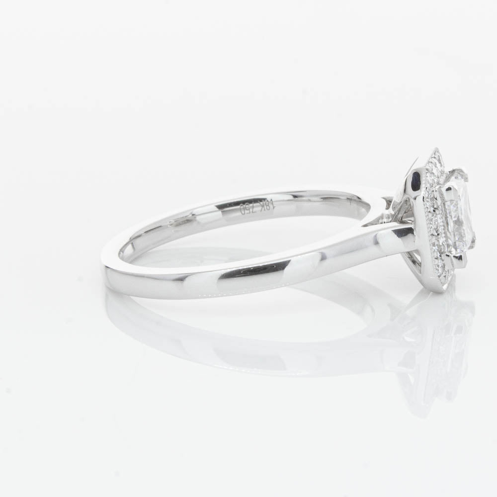 This elegant ring has been crafted in 18ct white gold from our signature 1899 collection, boasting a shining princess cut centre diamond framed by a glittering diamond halo.