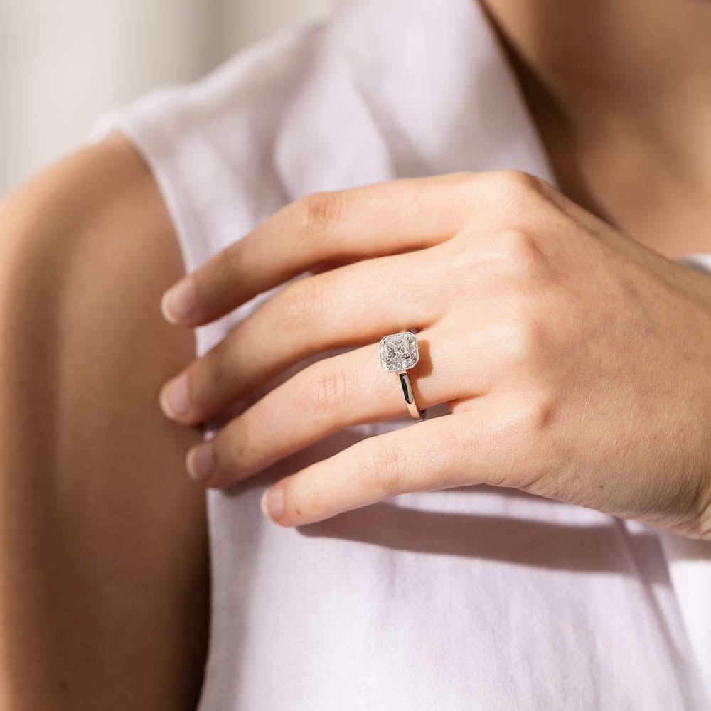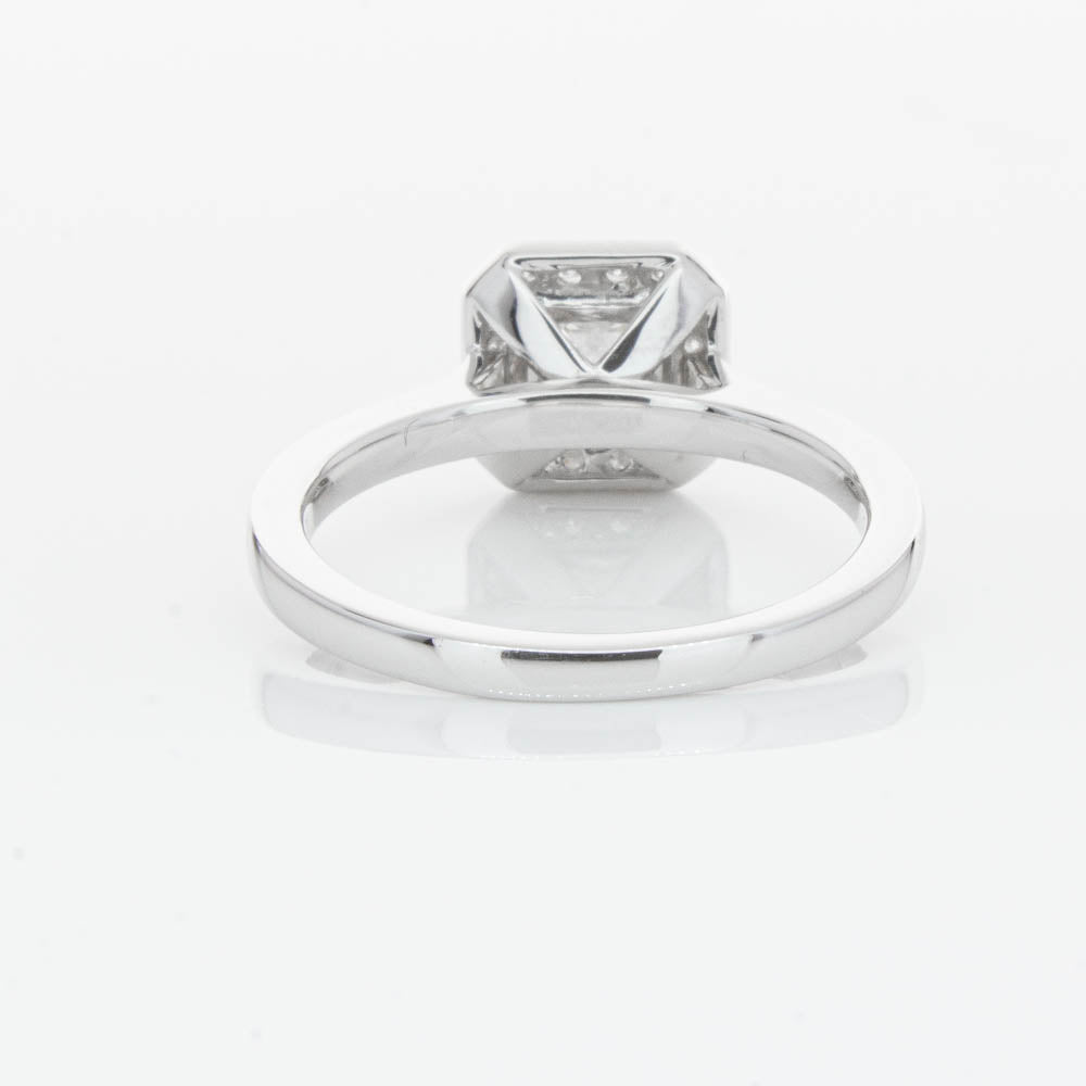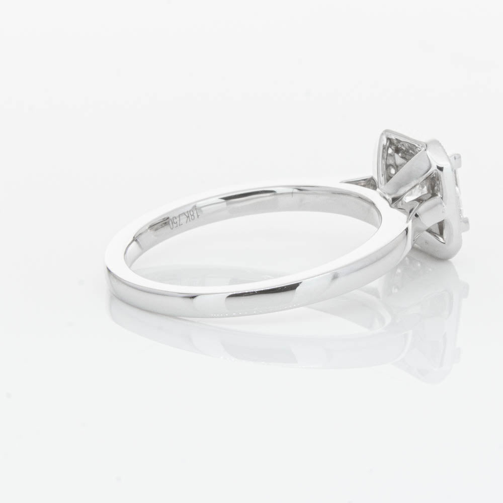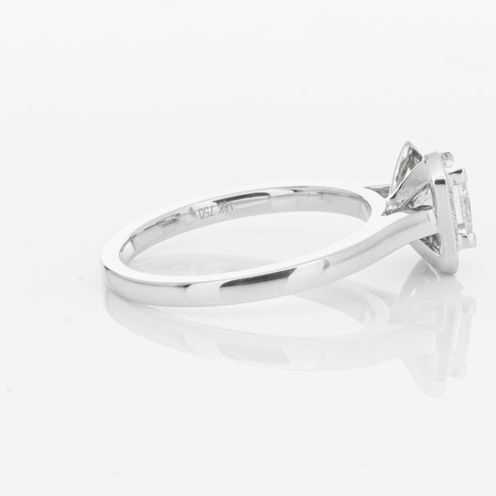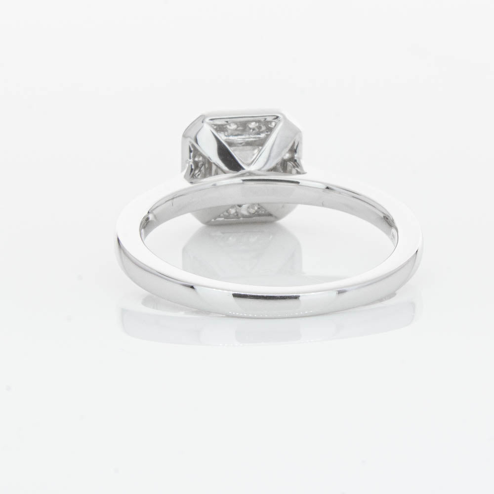 This elegant ring has been crafted in 18ct white gold from our signature 1899 collection, boasting a shining princess cut centre diamond framed by a glittering diamond halo.