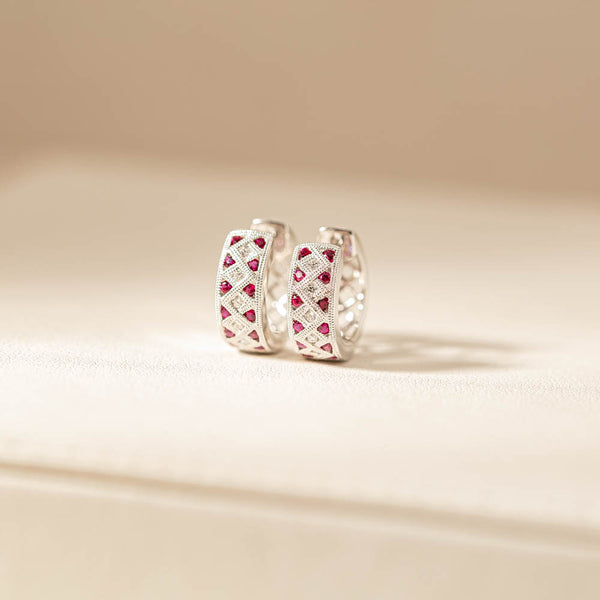 18ct White Gold Ruby & Diamond Honour Hoop Earrings
