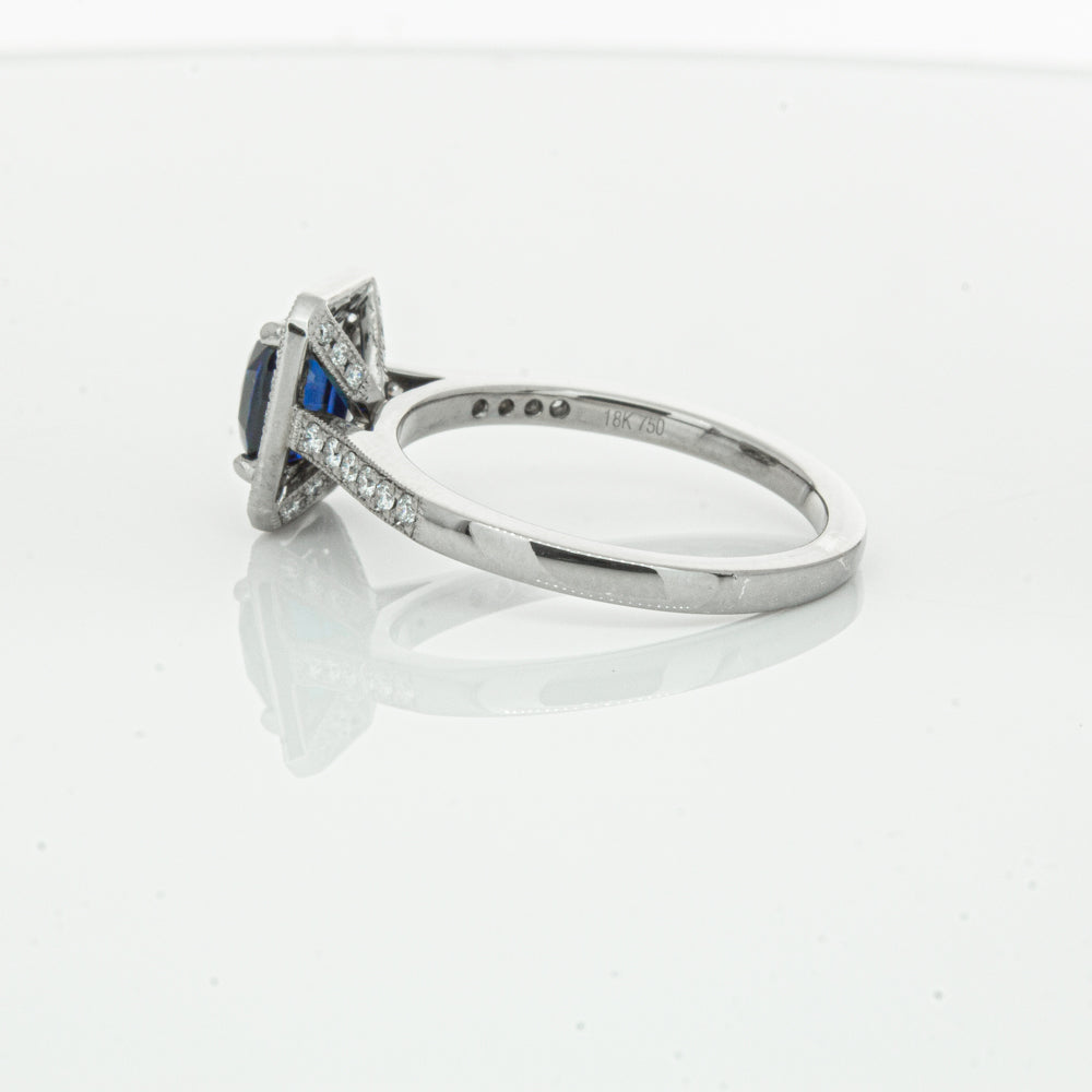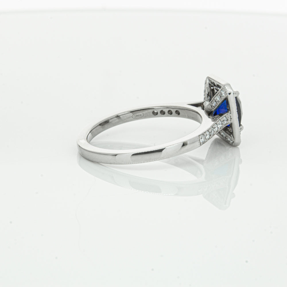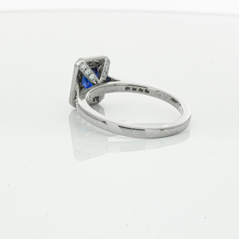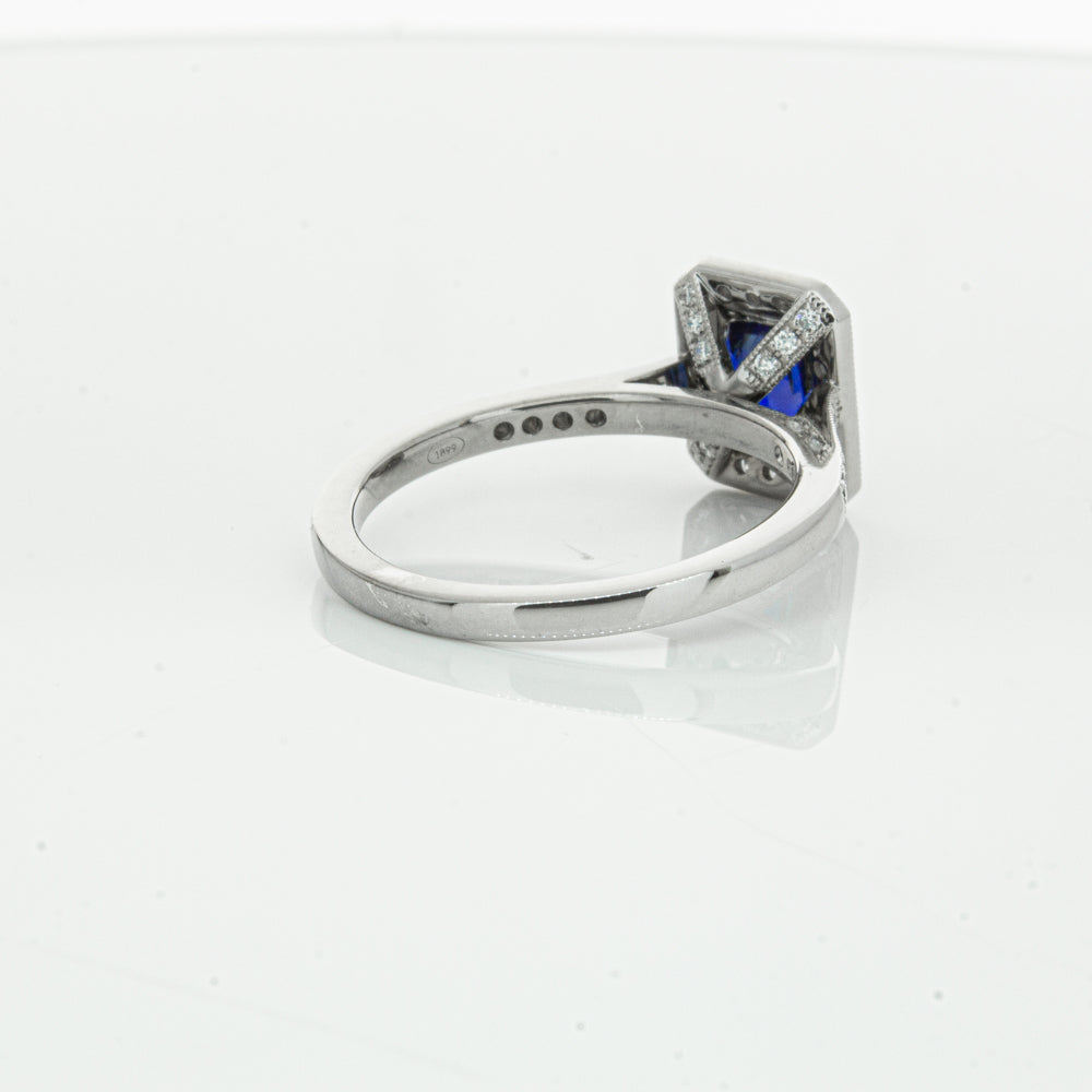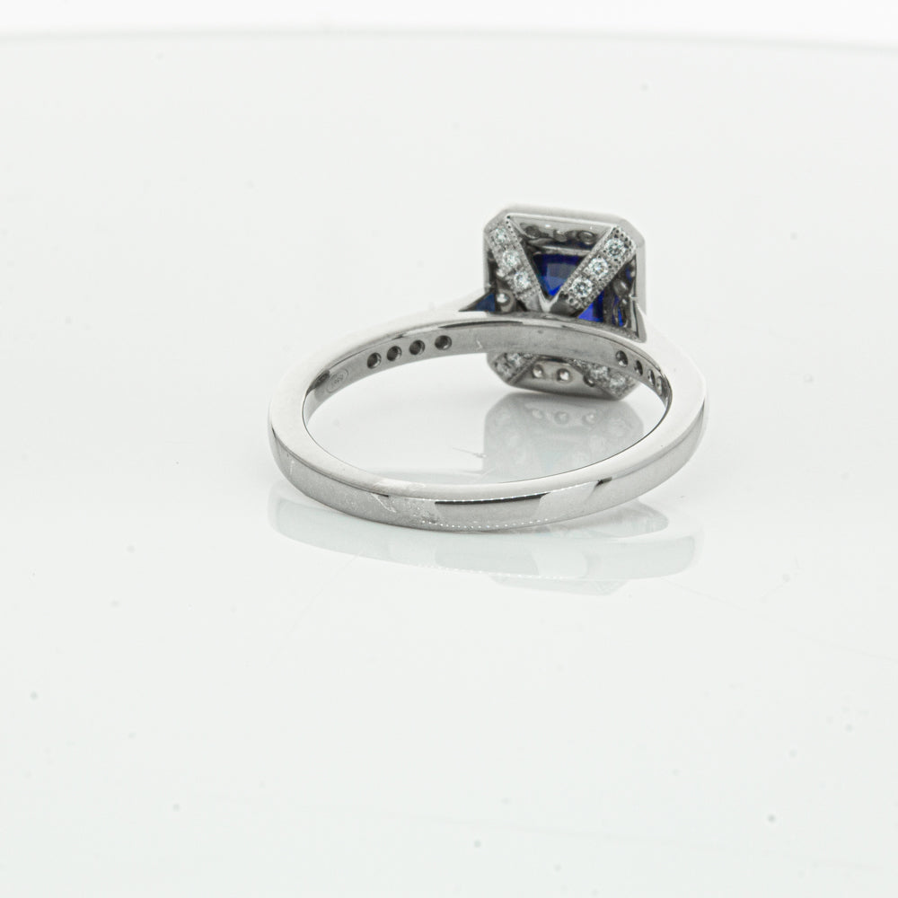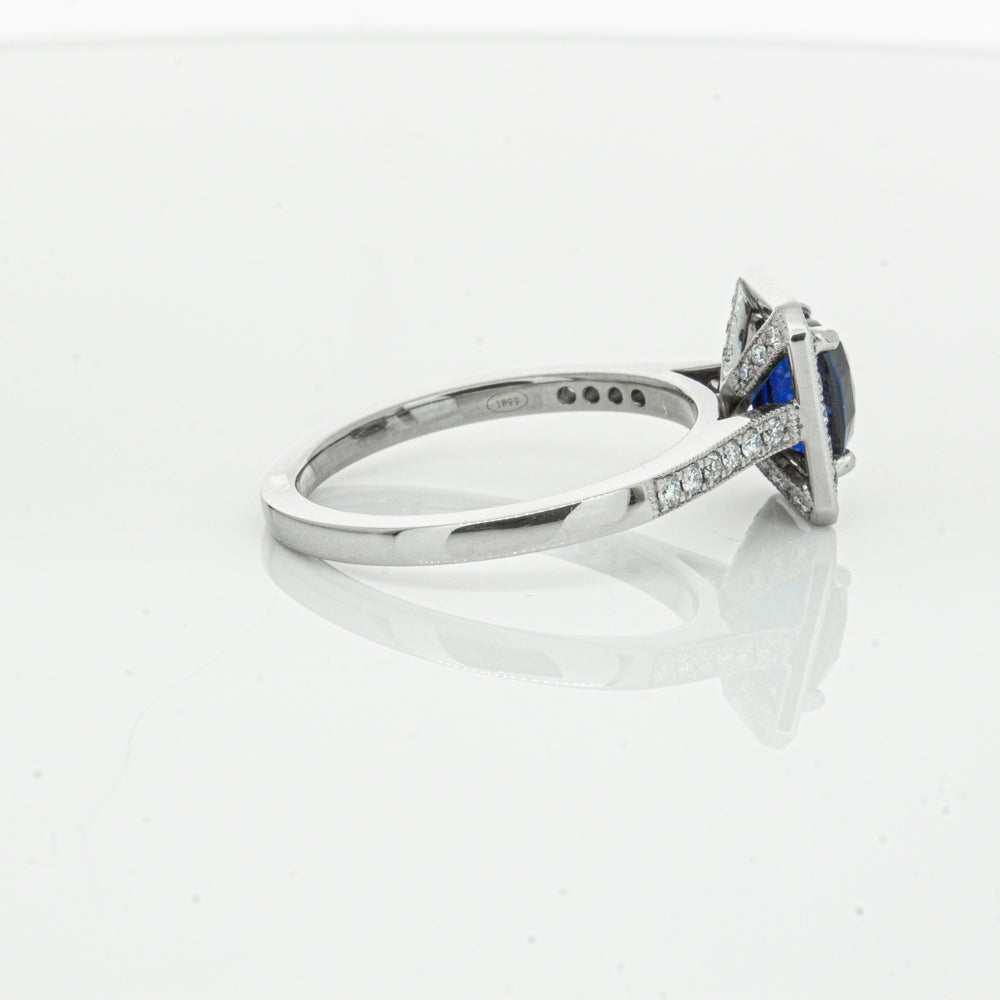 A classic but stylish choice, this elegant sapphire and diamond Aria ring has a cushion cut sapphire and is surrounded by a halo of bead set diamonds framed in 18ct white gold from our signature 1899 collection. You will treasure this magical ring always.