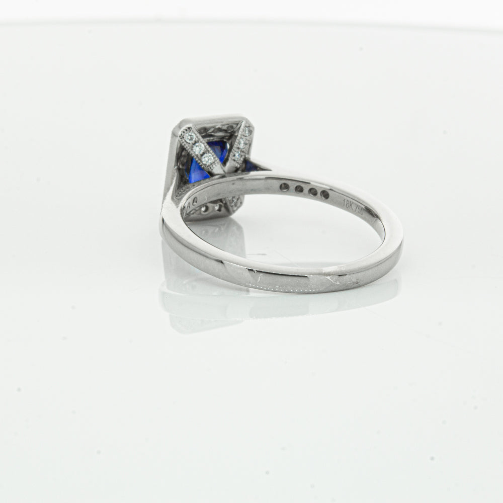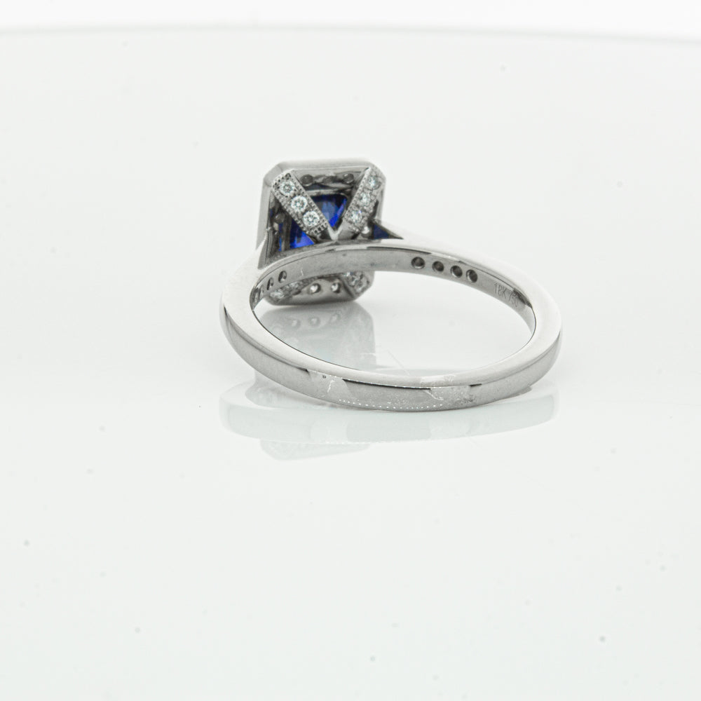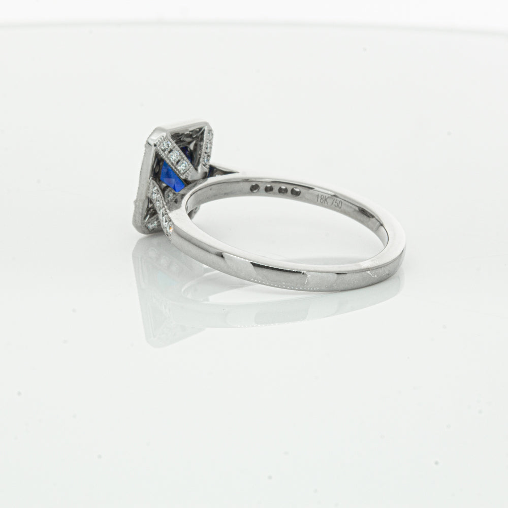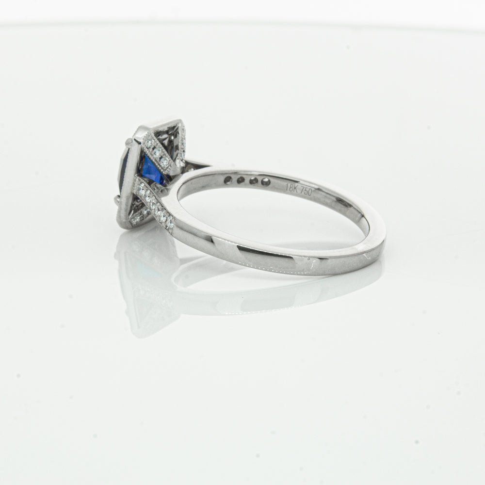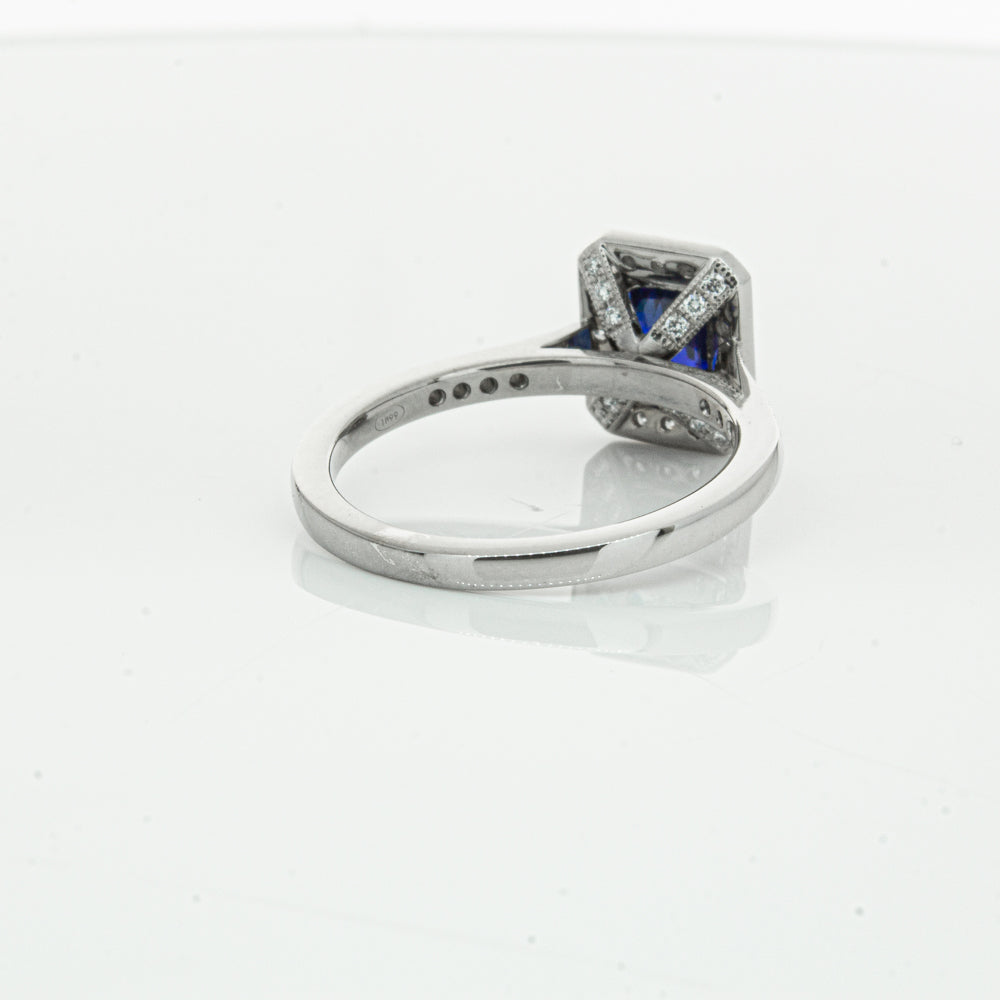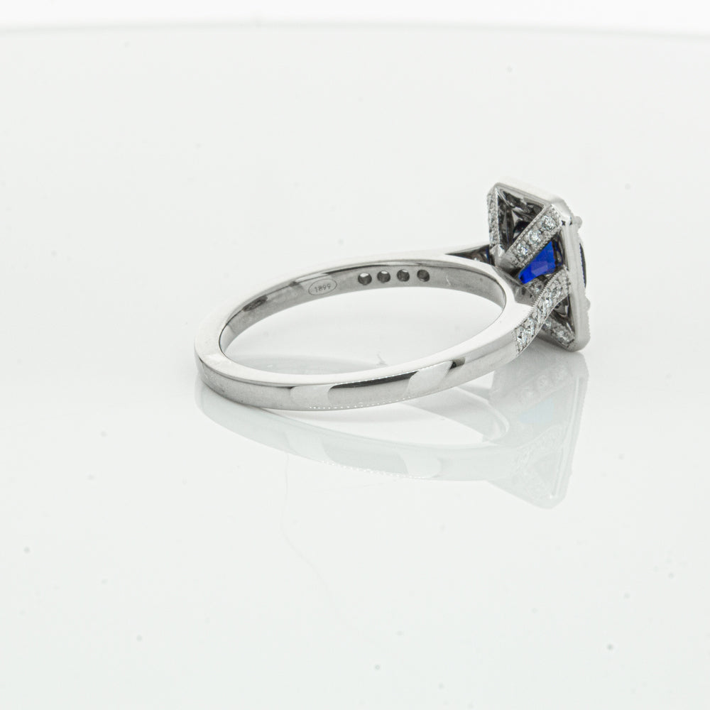 A classic but stylish choice, this elegant sapphire and diamond Aria ring has a cushion cut sapphire and is surrounded by a halo of bead set diamonds framed in 18ct white gold from our signature 1899 collection. You will treasure this magical ring always.