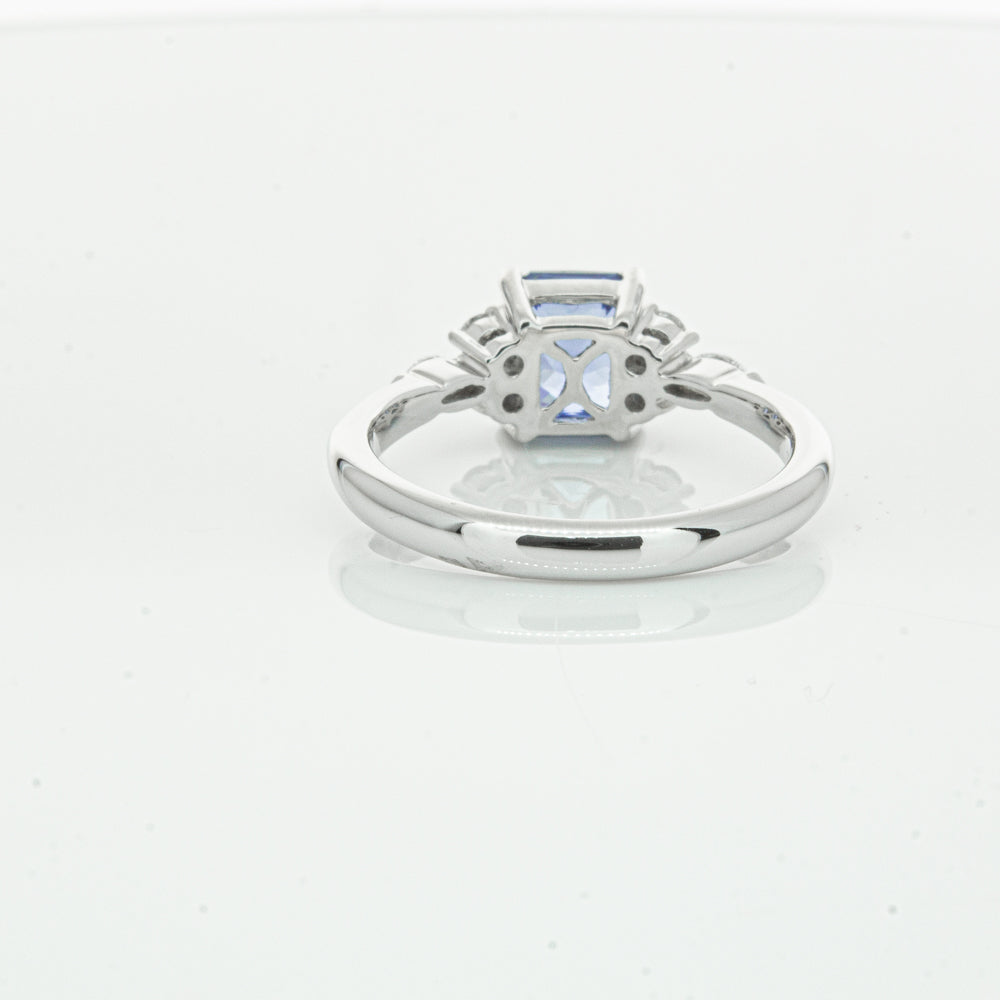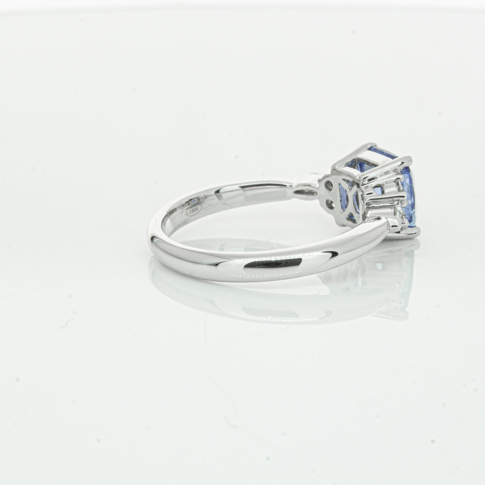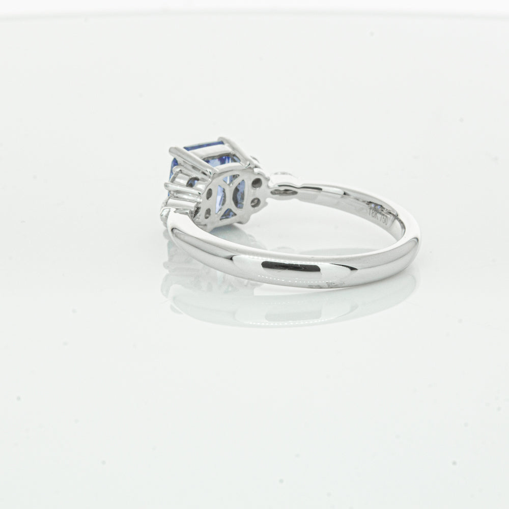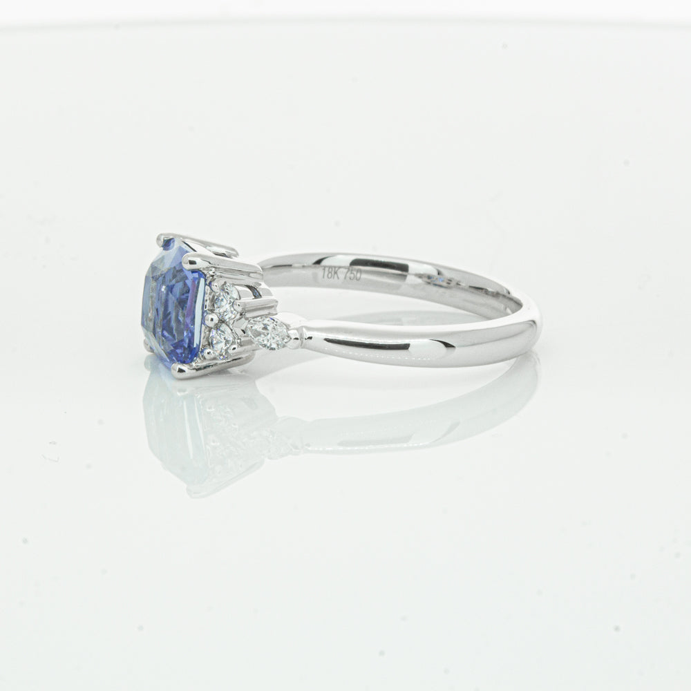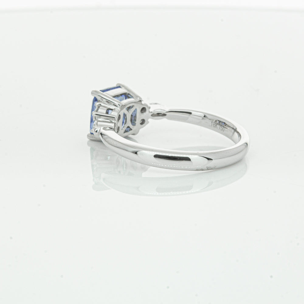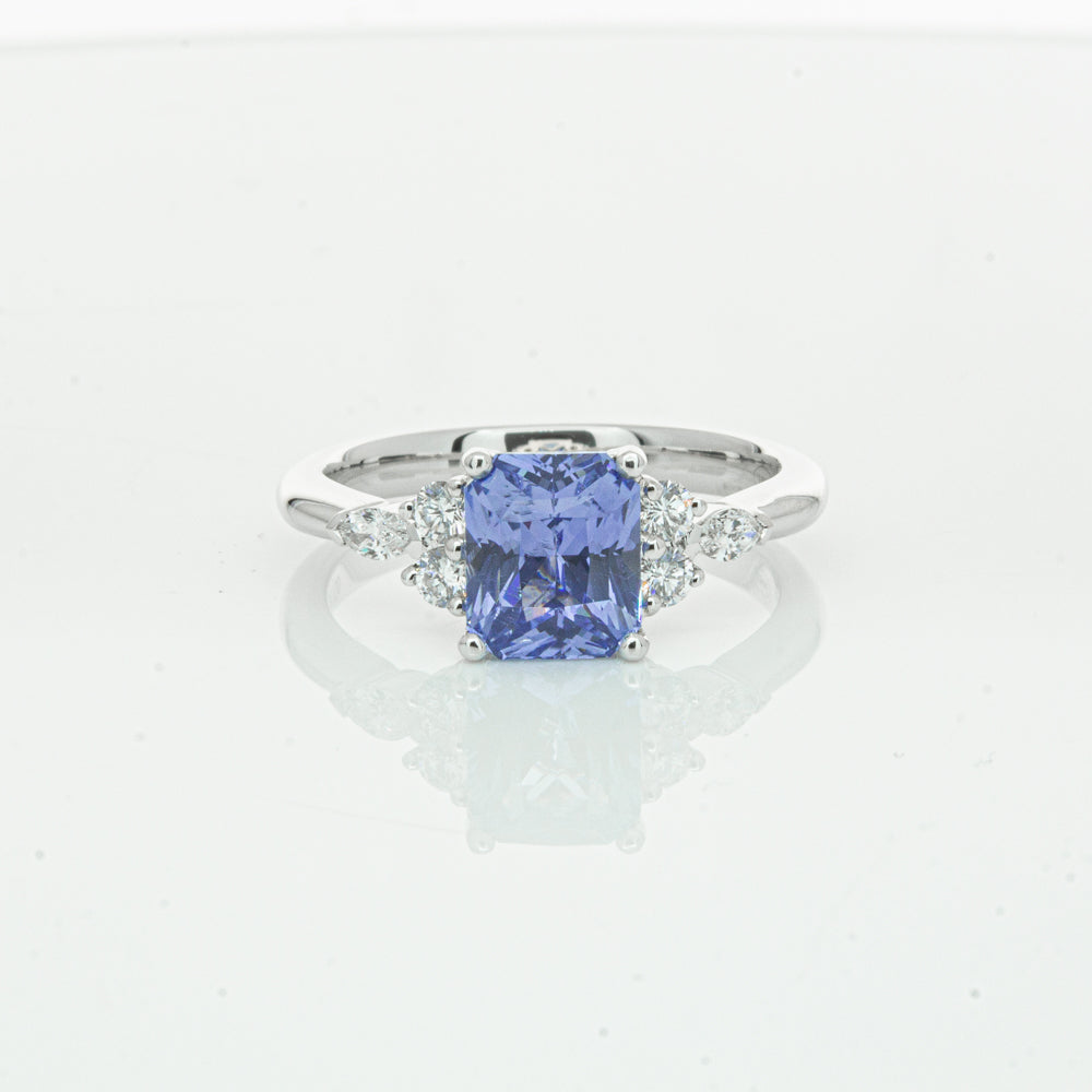 Exuding light and crafted perfectly in 18ct white gold from our signature 1899 collection, this beautiful Oriana ring boasts an impressive rectangular faceted sapphire with marquise and round brilliant cut diamond set shoulders.