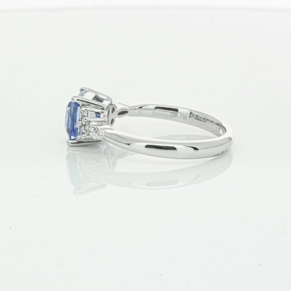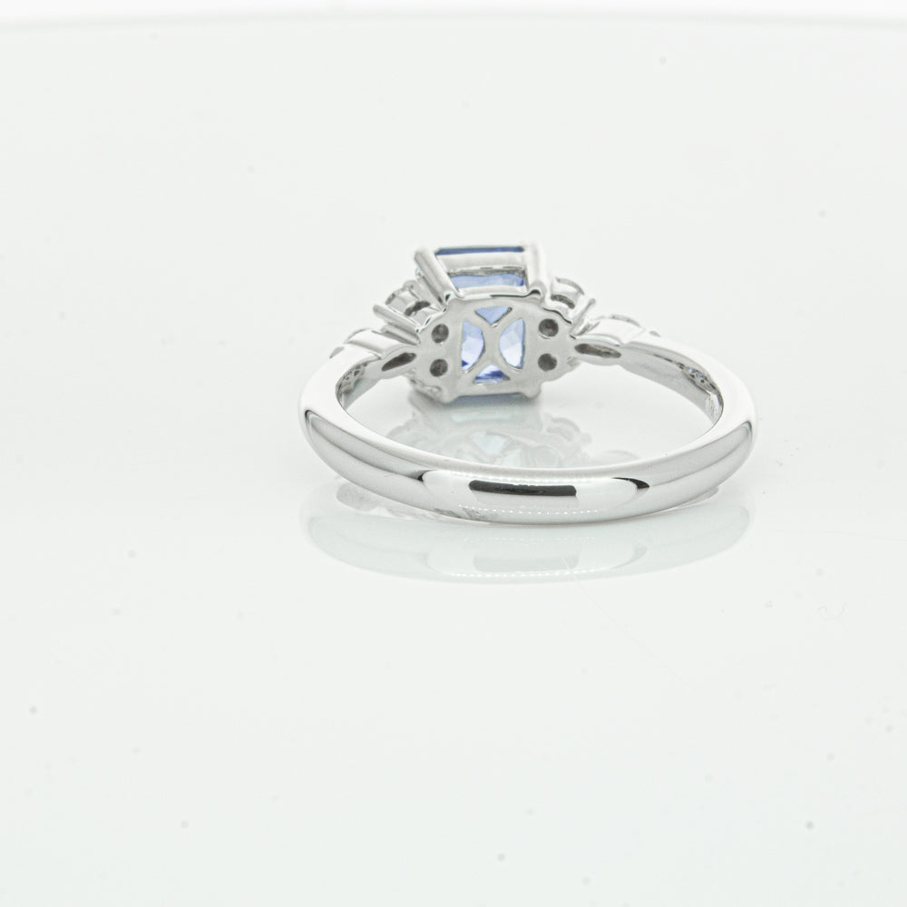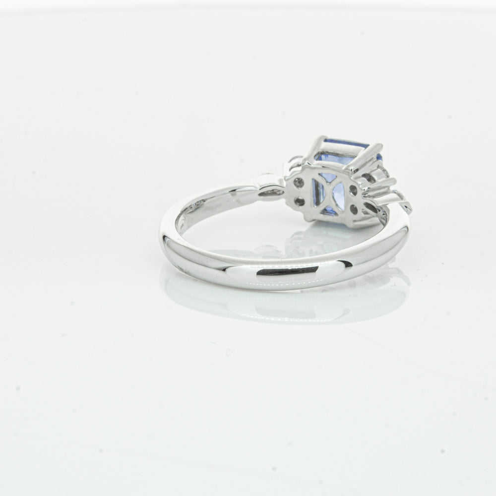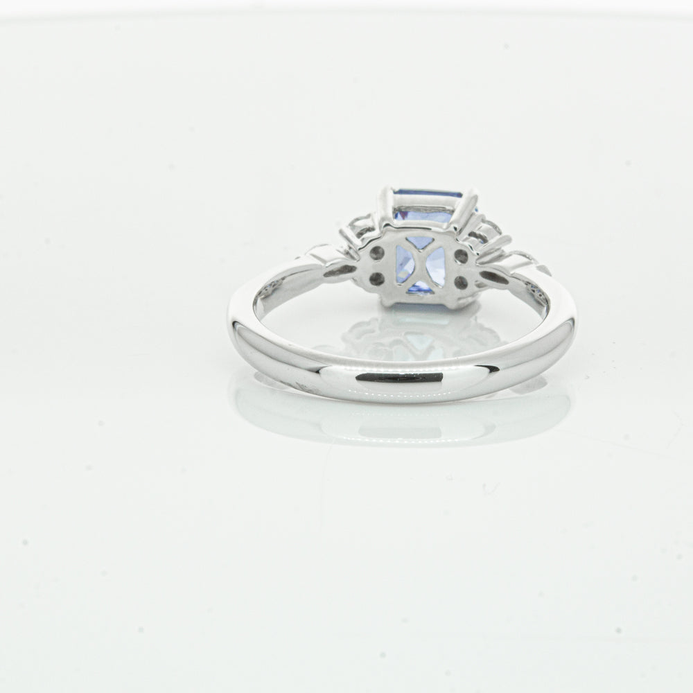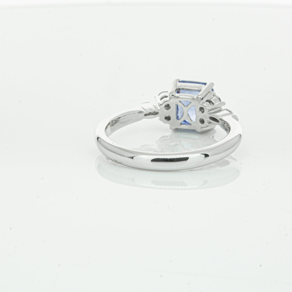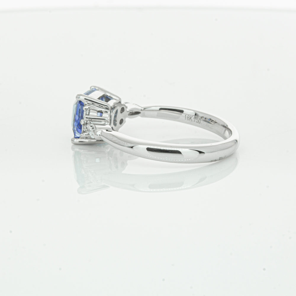 Exuding light and crafted perfectly in 18ct white gold from our signature 1899 collection, this beautiful Oriana ring boasts an impressive rectangular faceted sapphire with marquise and round brilliant cut diamond set shoulders.
