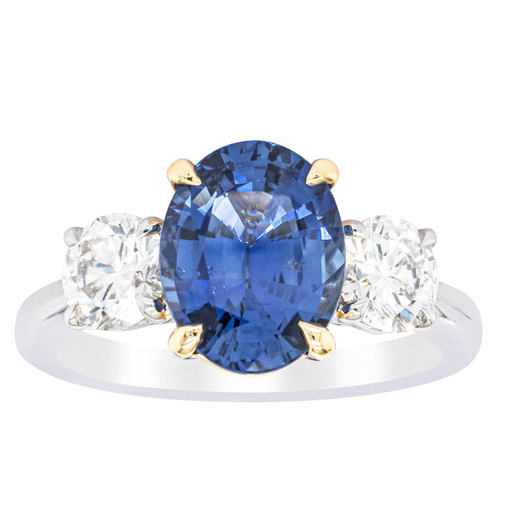 "Elegance is the only beauty that never fades!"  Boasting an oval faceted sapphire and two round brilliant cut diamonds you will be the definition of beauty and elegance in this ring from our signature 1899 collection, beautifully set in 18ct white gold with yellow gold claws.