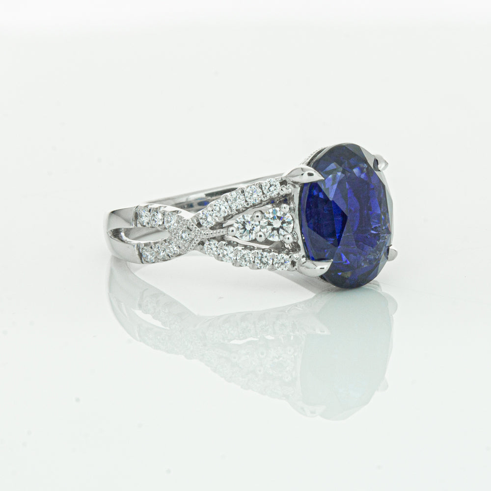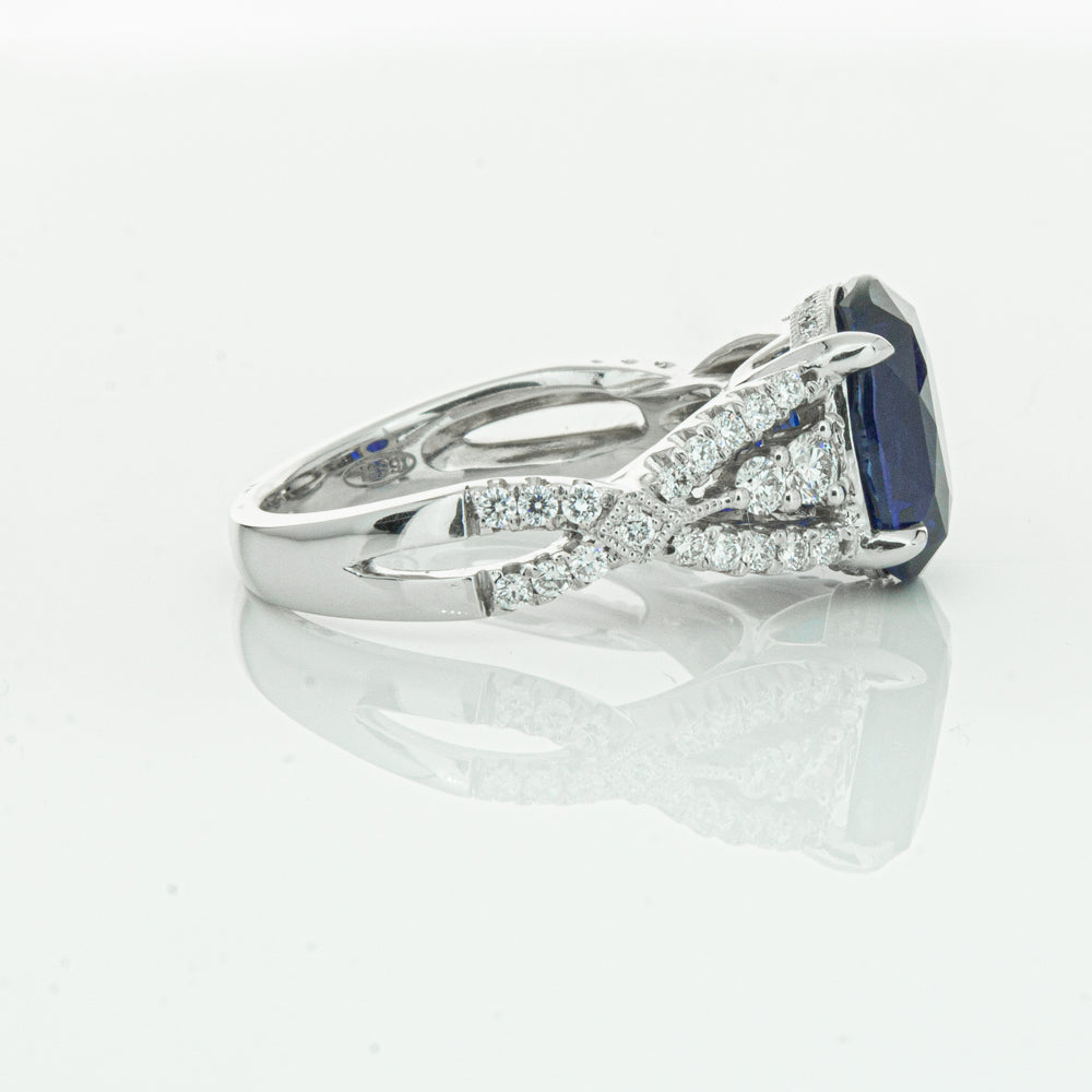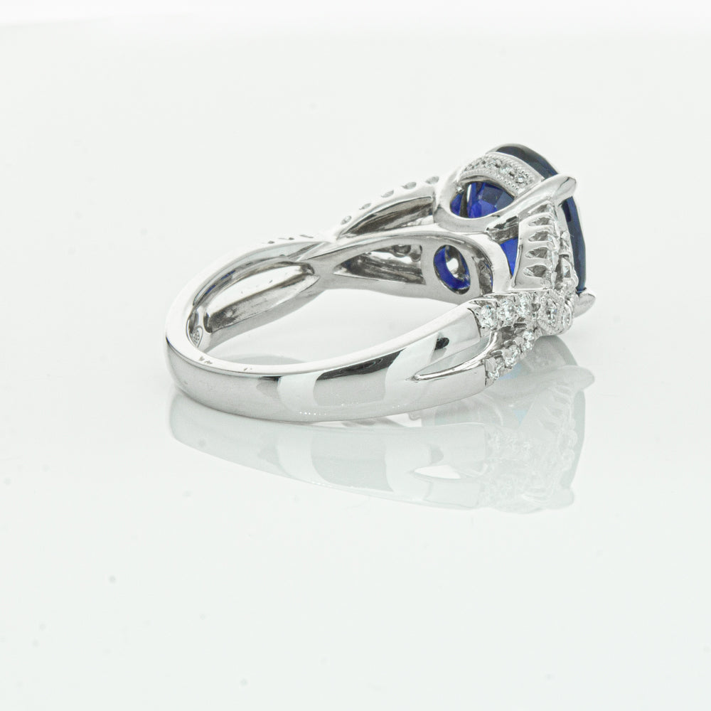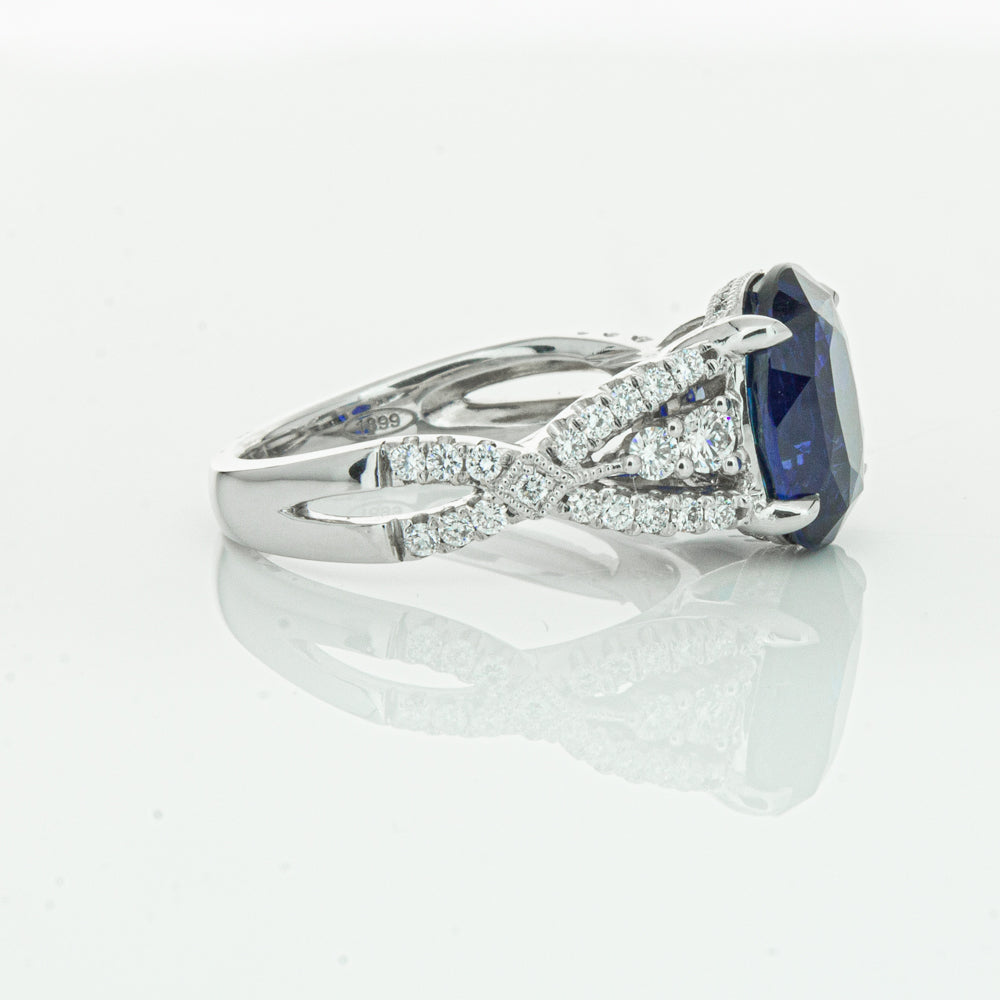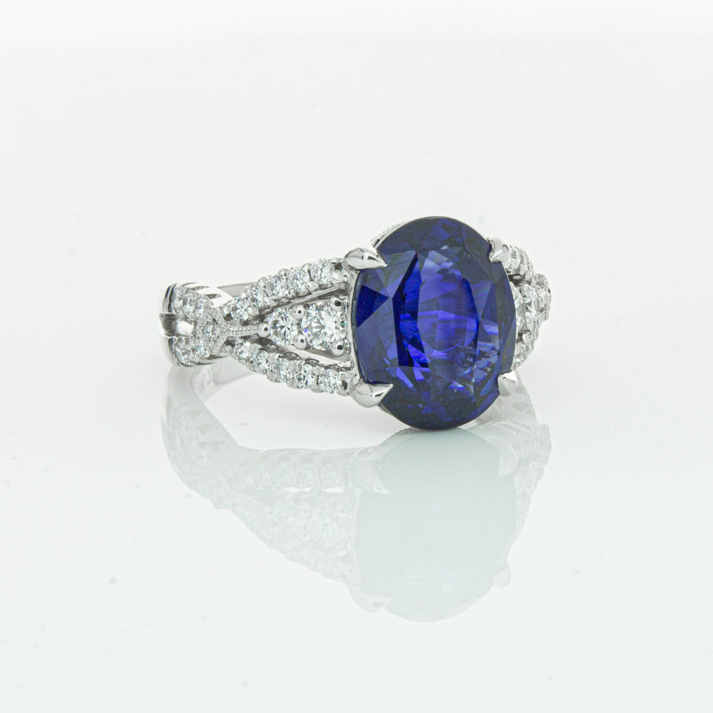 A timeless classic, you will cherish this elegant sapphire and diamond ring. This piece boasts a strong blue sapphire with diamond accents on openwork shoulders and is carefully set in 18ct white gold from our signature 1899 collection.