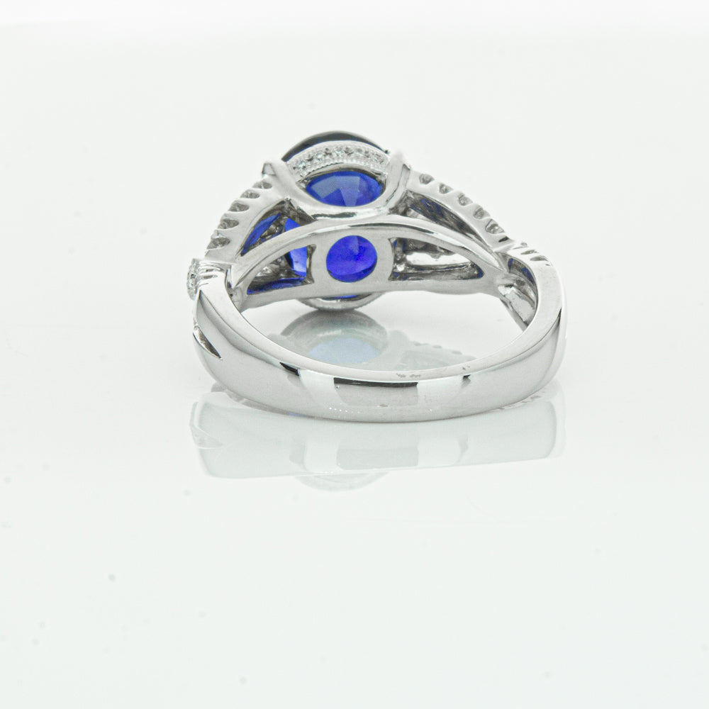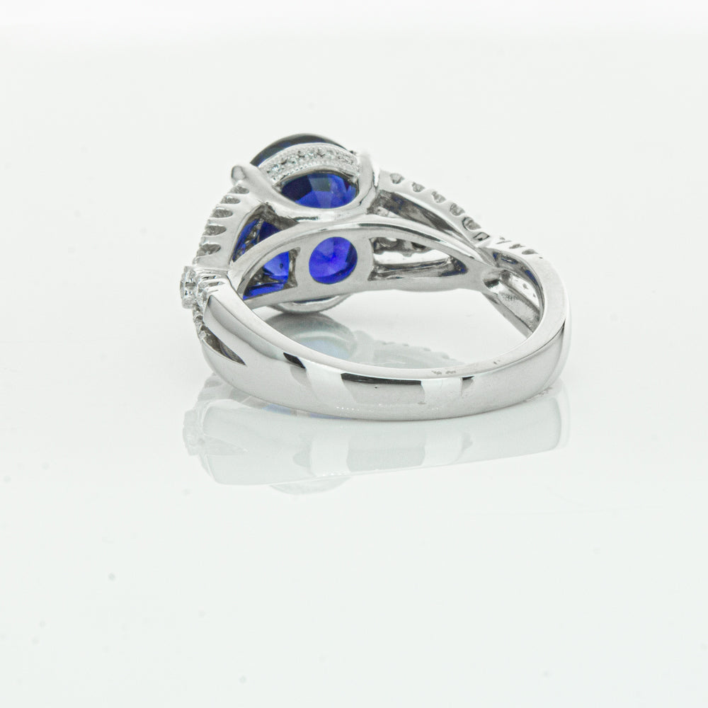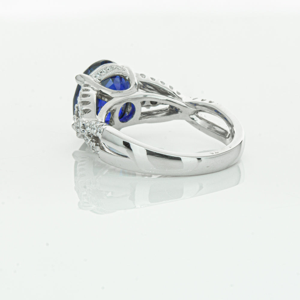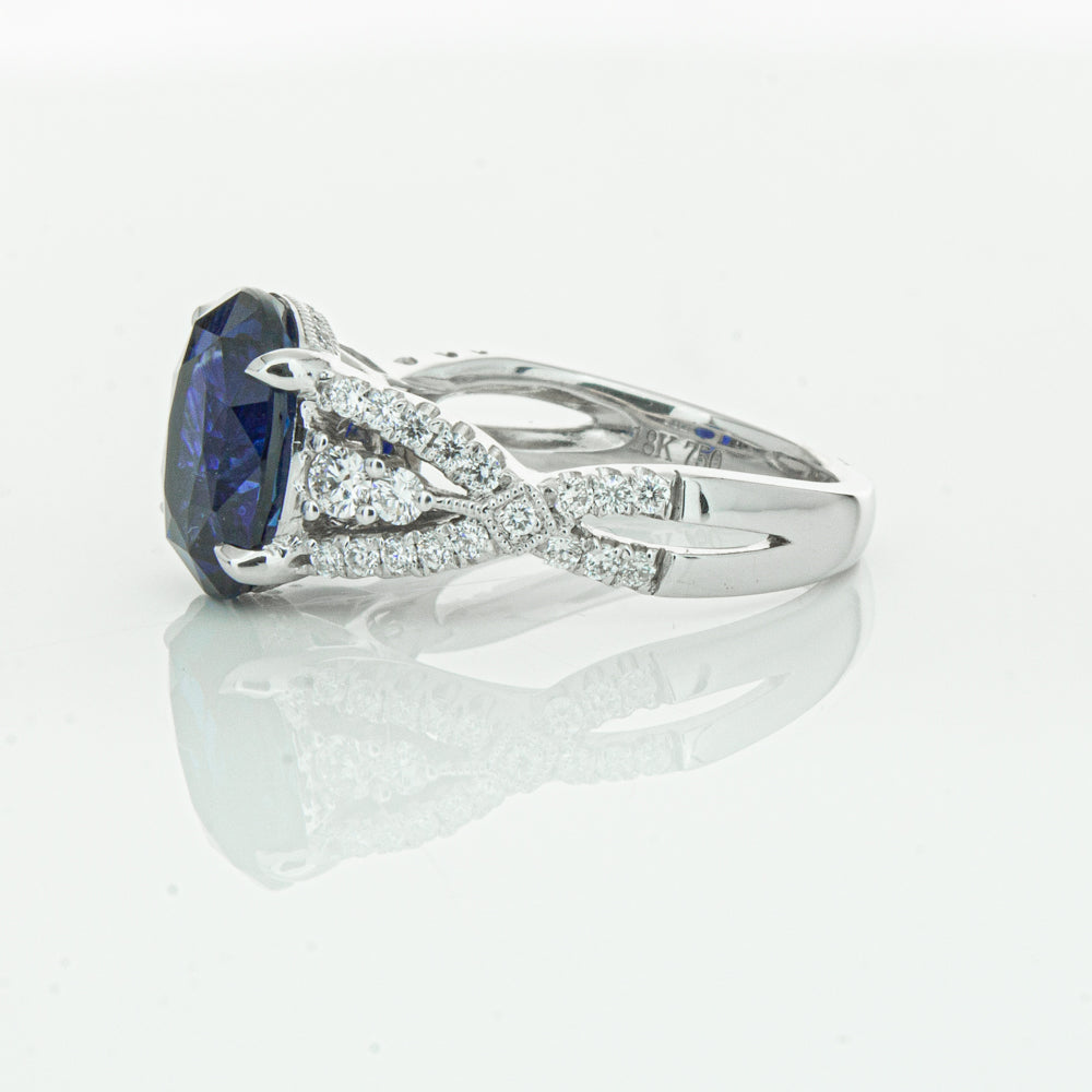 A timeless classic, you will cherish this elegant sapphire and diamond ring. This piece boasts a strong blue sapphire with diamond accents on openwork shoulders and is carefully set in 18ct white gold from our signature 1899 collection.