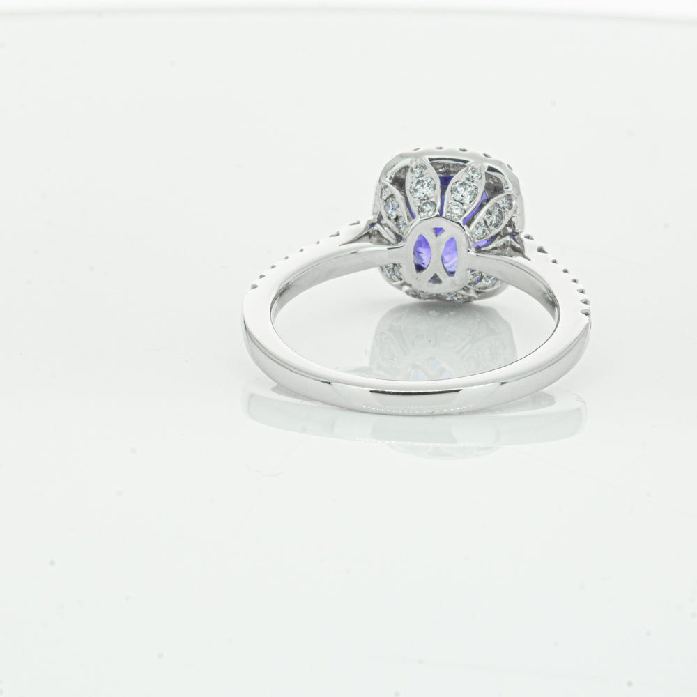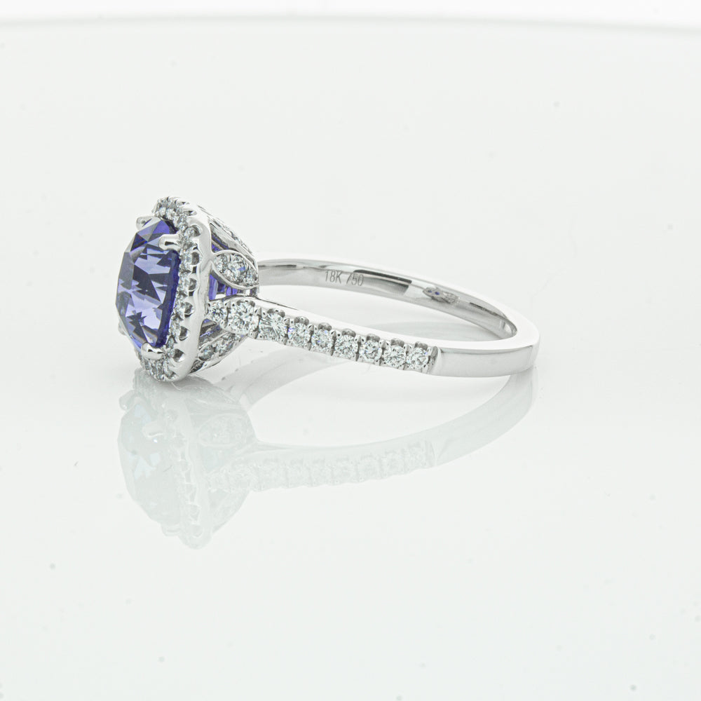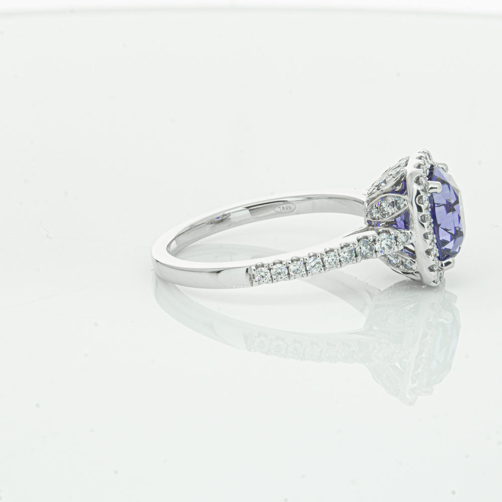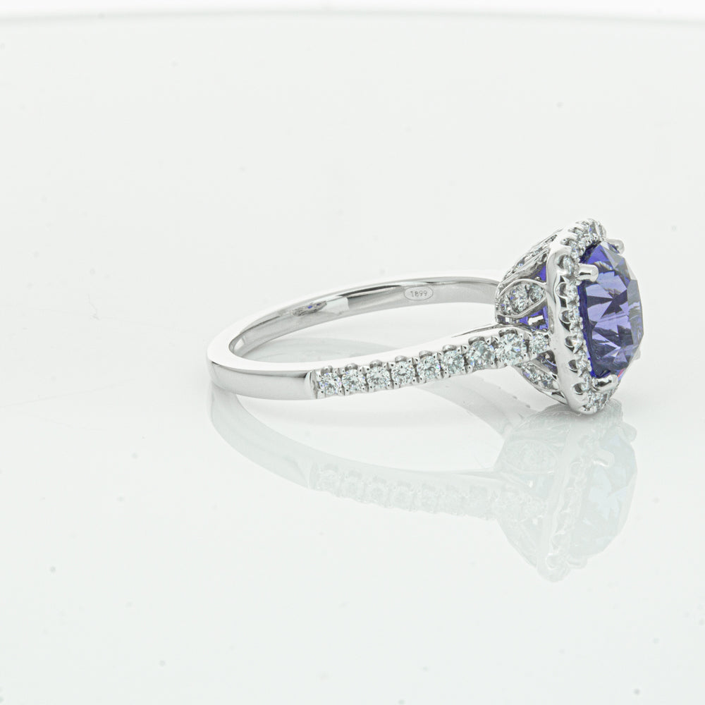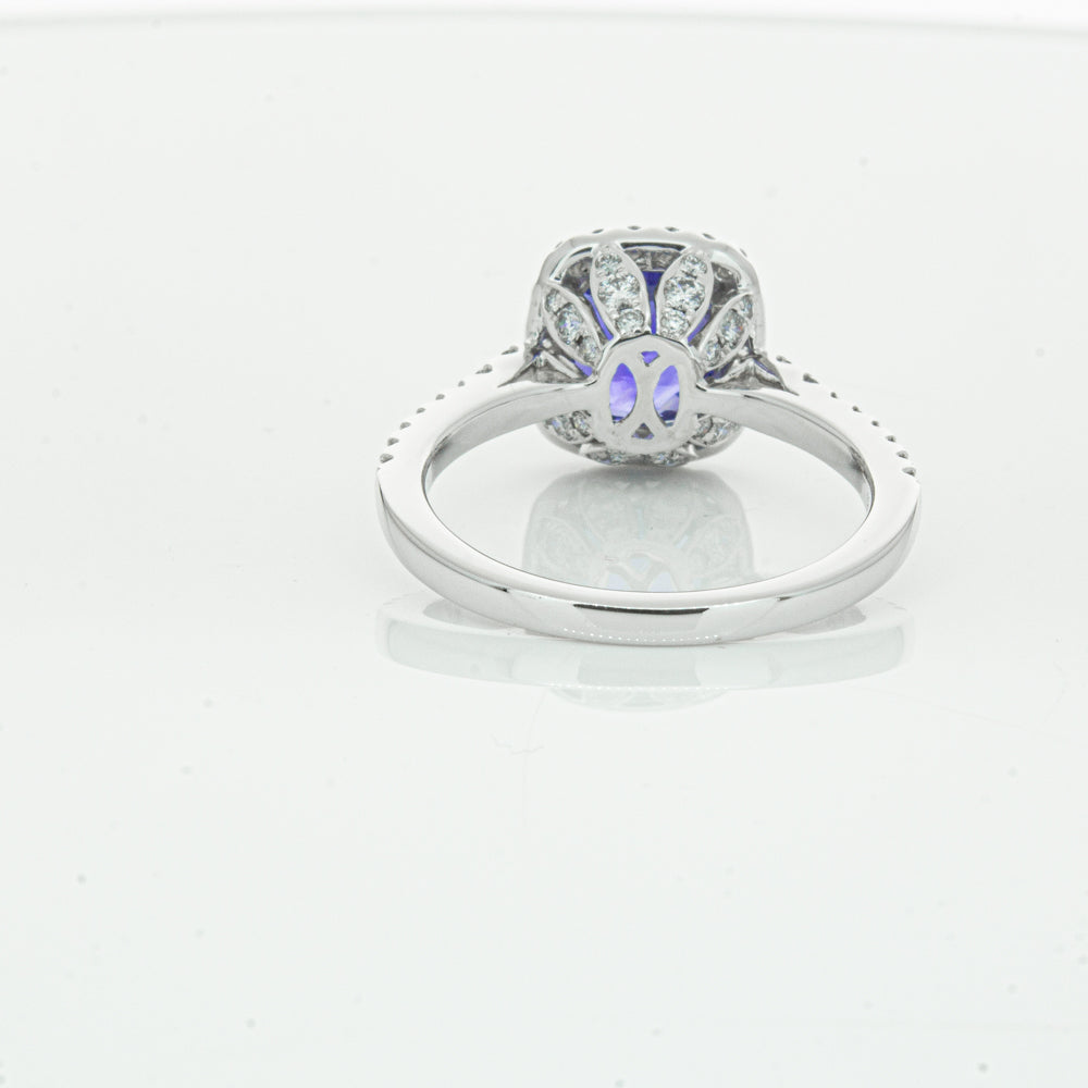 “Our proprietary Sierra design heroes a stunning fine blue cushion cut sapphire, your eyes drawn into the natural beauty and depth of colour in this enchanting gem. The sapphire is surrounded by a sparkling halo of diamonds, adding to the ring’s brilliance and allure. The combination of the fine blue sapphire and the sparkling bright white diamonds creates a dazzling display of light and colour that captures the eye and enchants the senses. Subtle features such as pinched shoulders and the diamond encrusted under bezel add to the unique allure. Made in high palladium white gold it is a special piece made to be treasured.” - Joseph Tattersfield