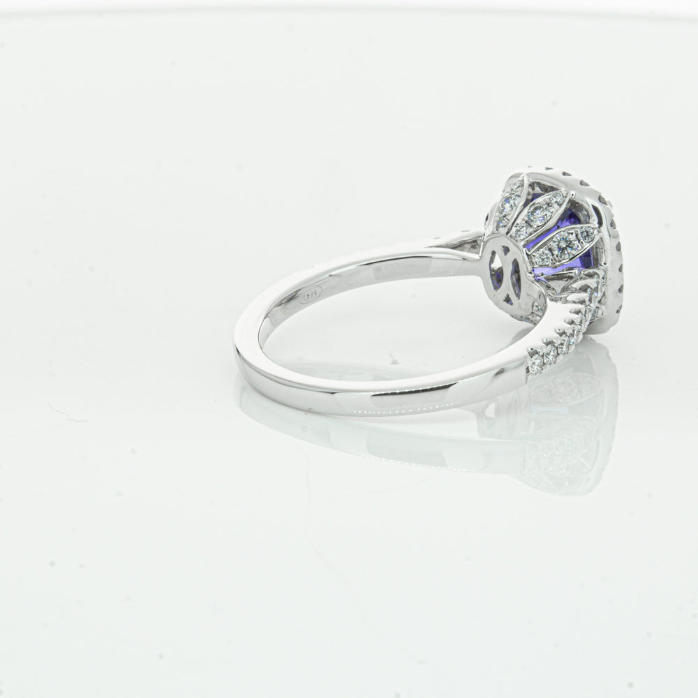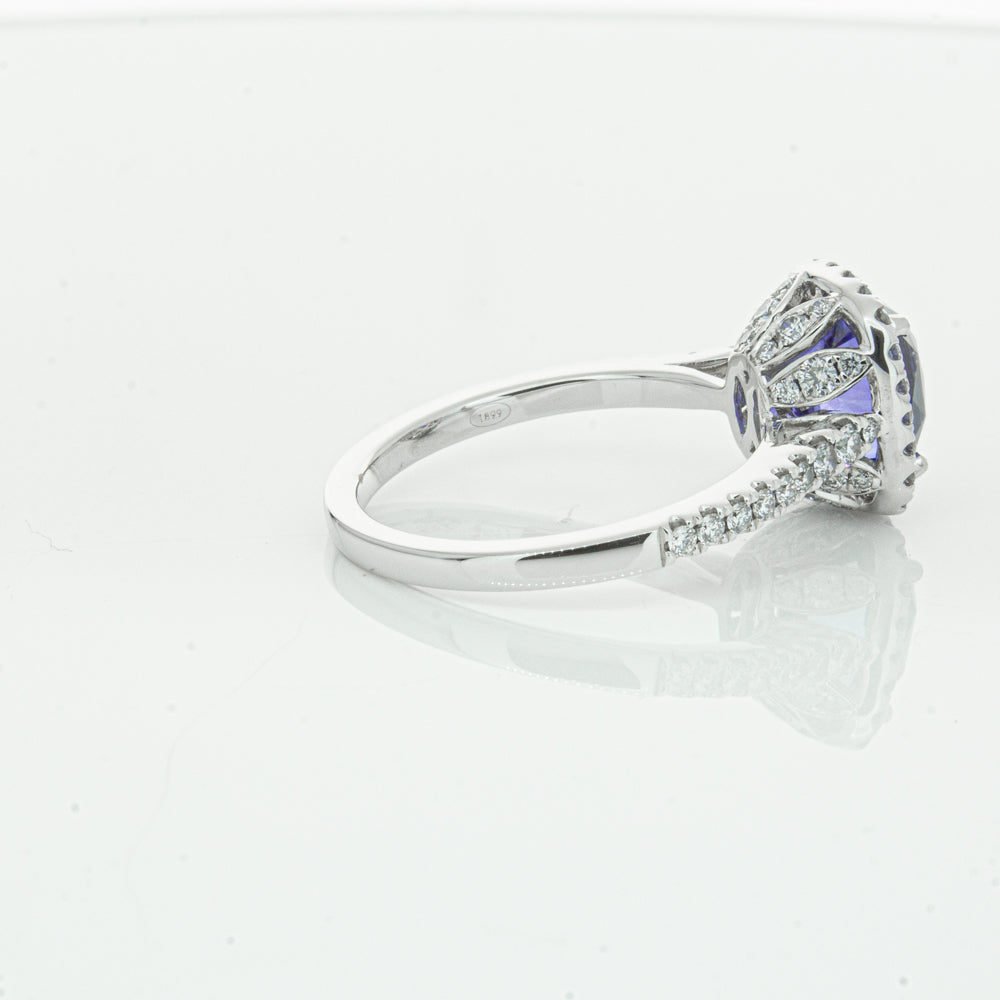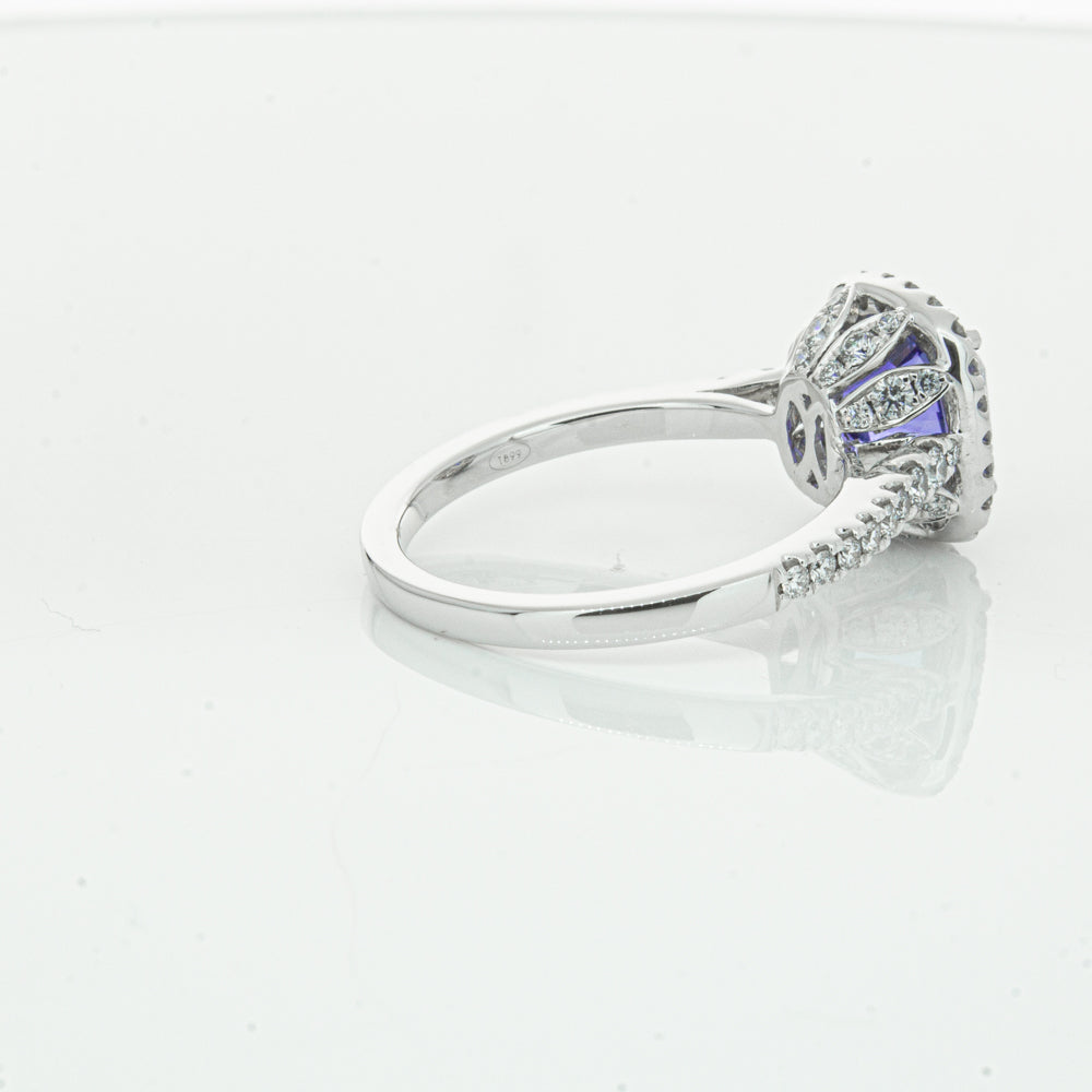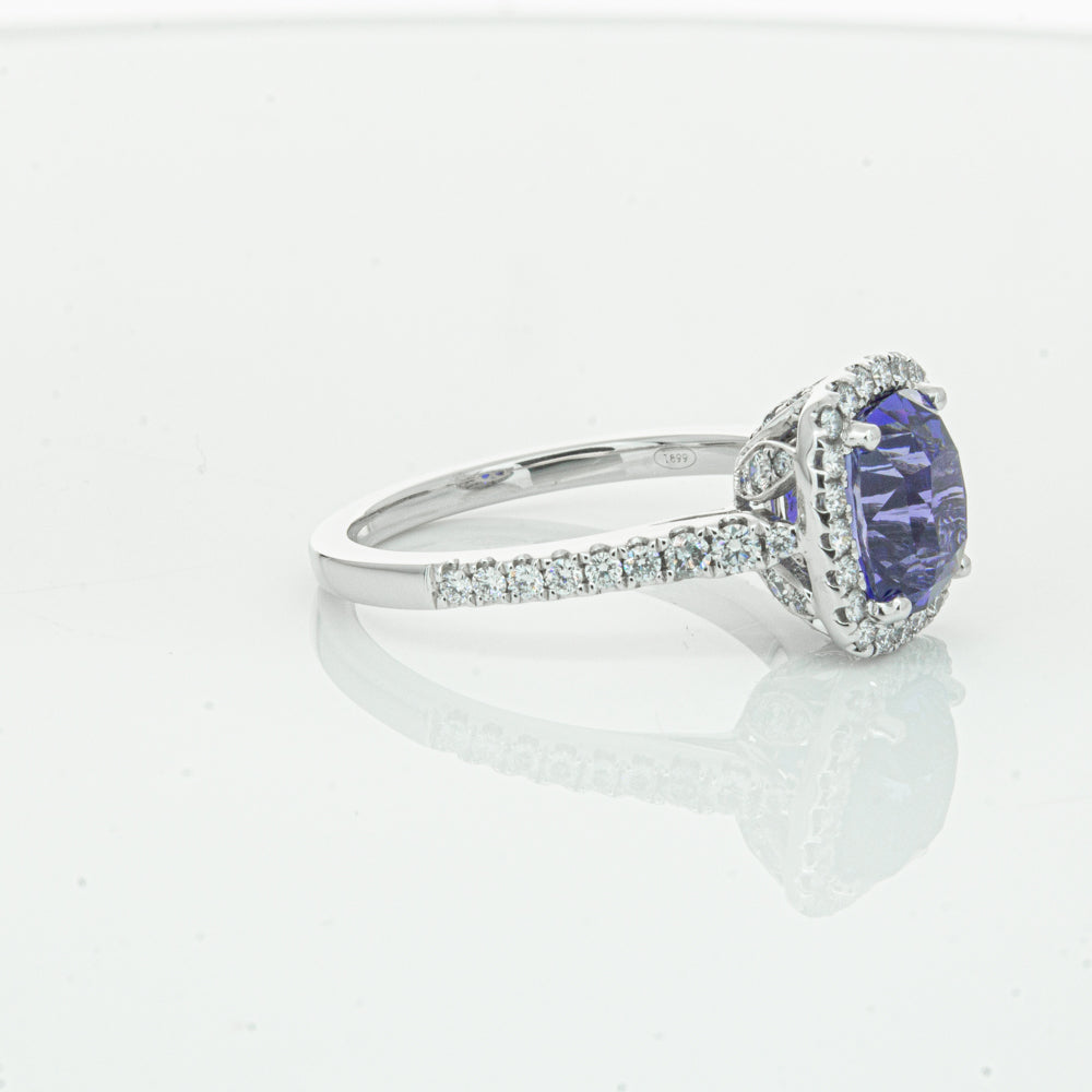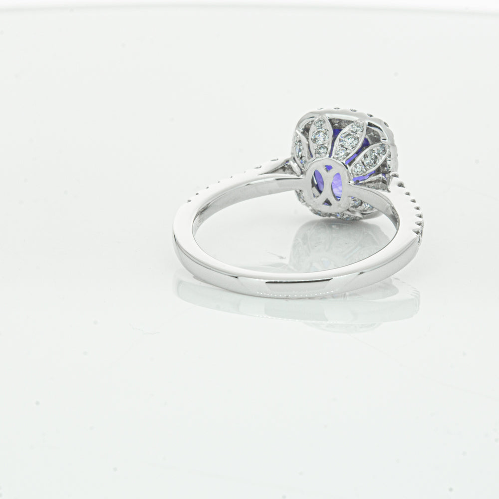 “Our proprietary Sierra design heroes a stunning fine blue cushion cut sapphire, your eyes drawn into the natural beauty and depth of colour in this enchanting gem. The sapphire is surrounded by a sparkling halo of diamonds, adding to the ring’s brilliance and allure. The combination of the fine blue sapphire and the sparkling bright white diamonds creates a dazzling display of light and colour that captures the eye and enchants the senses. Subtle features such as pinched shoulders and the diamond encrusted under bezel add to the unique allure. Made in high palladium white gold it is a special piece made to be treasured.” - Joseph Tattersfield