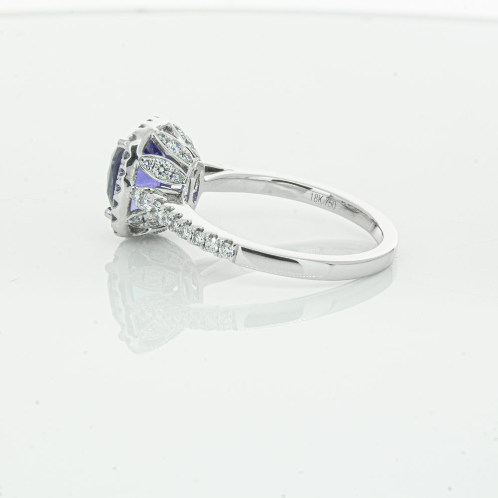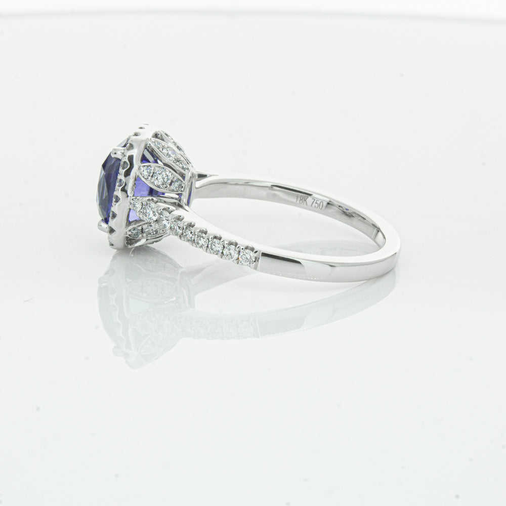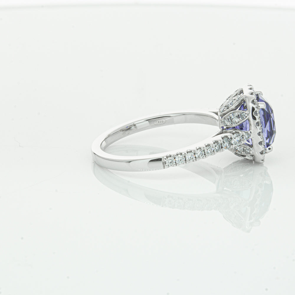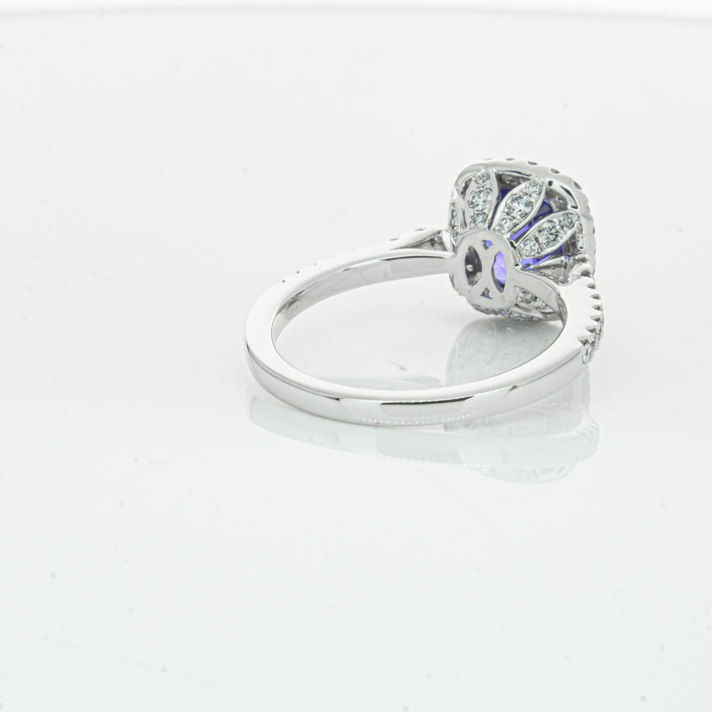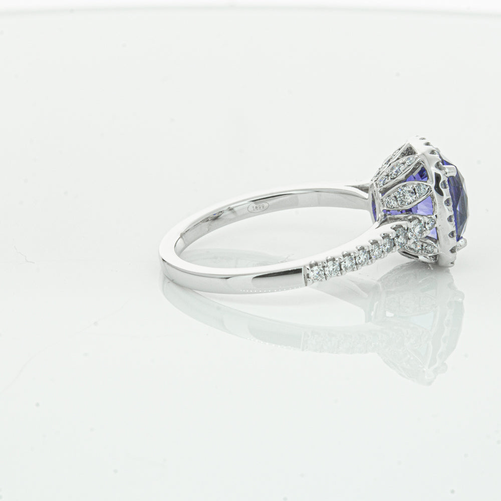 “Our proprietary Sierra design heroes a stunning fine blue cushion cut sapphire, your eyes drawn into the natural beauty and depth of colour in this enchanting gem. The sapphire is surrounded by a sparkling halo of diamonds, adding to the ring’s brilliance and allure. The combination of the fine blue sapphire and the sparkling bright white diamonds creates a dazzling display of light and colour that captures the eye and enchants the senses. Subtle features such as pinched shoulders and the diamond encrusted under bezel add to the unique allure. Made in high palladium white gold it is a special piece made to be treasured.” - Joseph Tattersfield