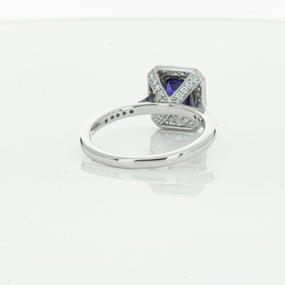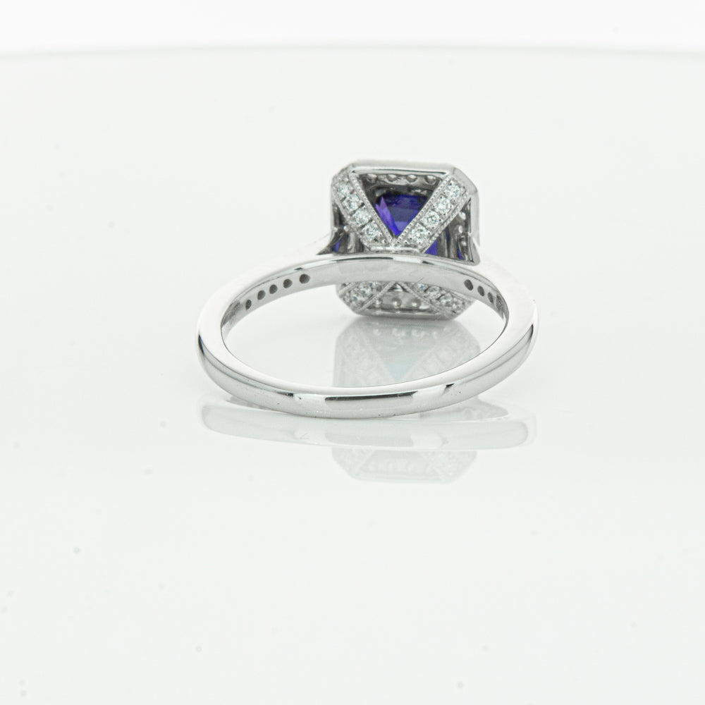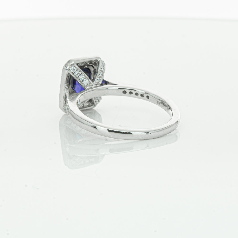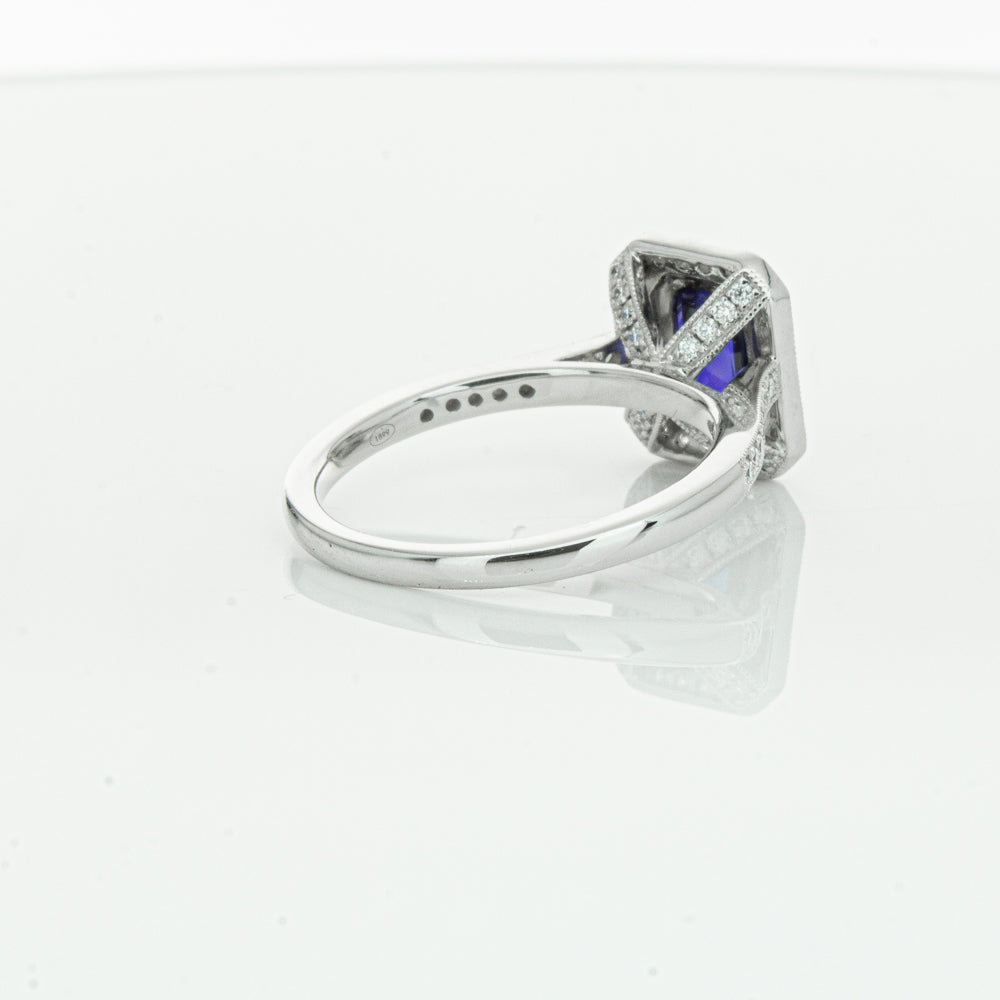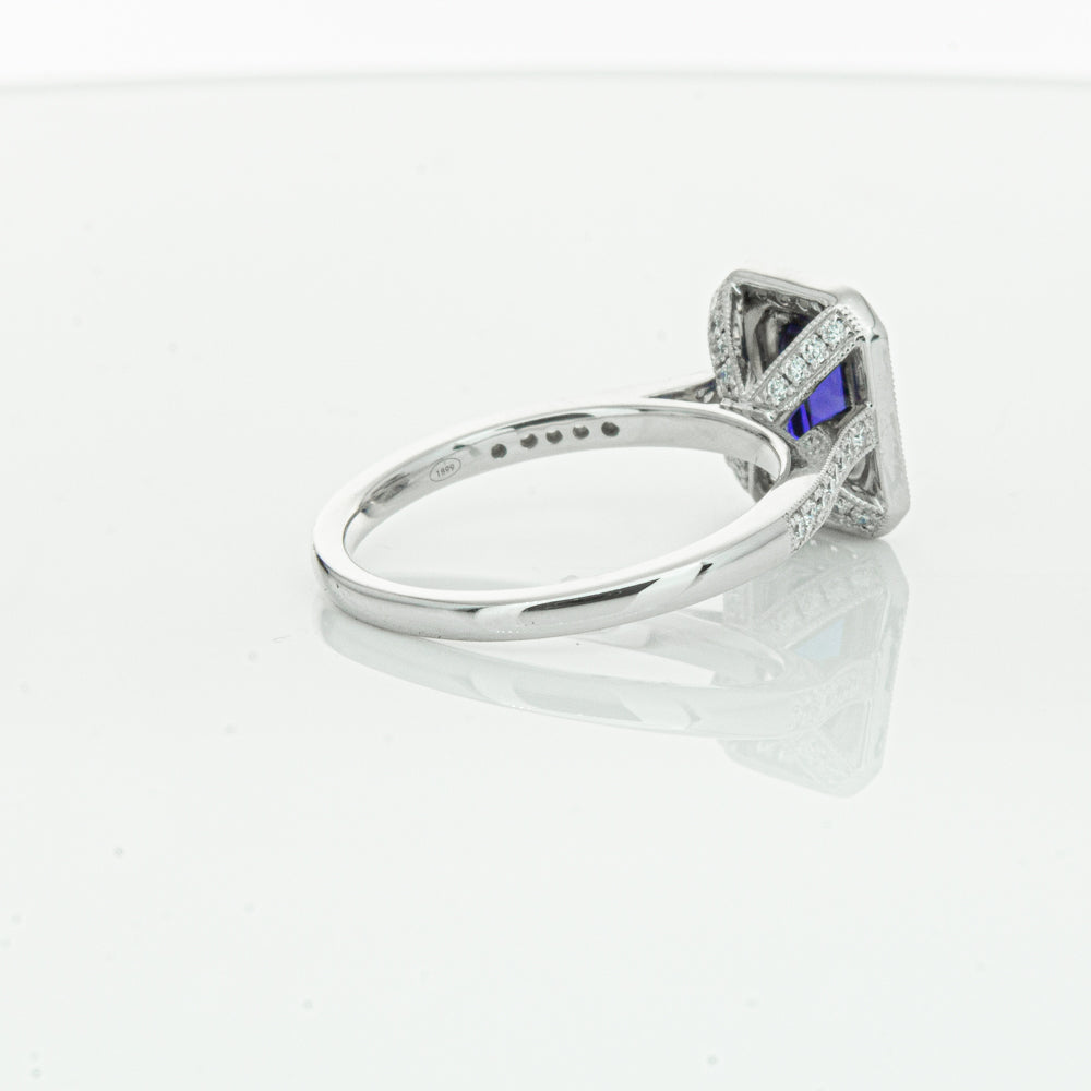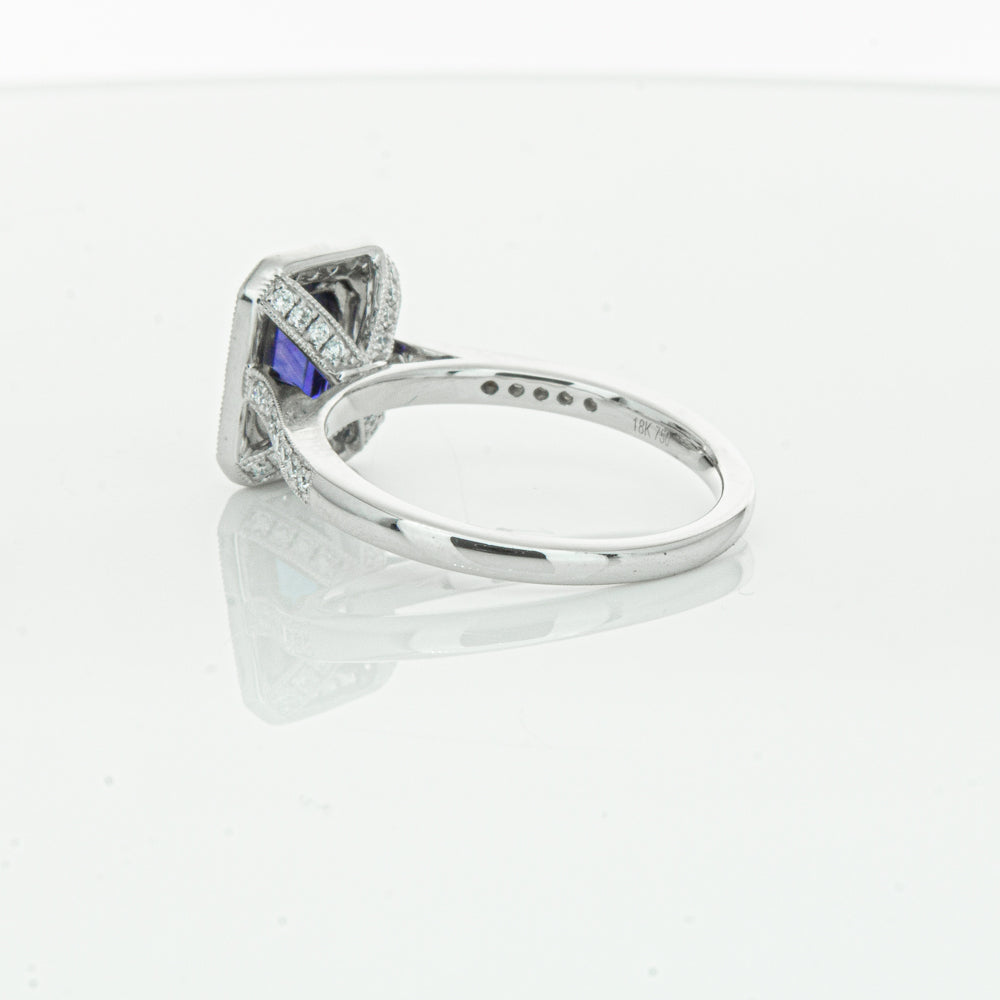 A timeless classic, you will cherish this elegant sapphire and diamond ring. This piece boasts a strong blue sapphire with a millgrain diamond halo and is carefully set in 18ct white gold from our signature 1899 collection.