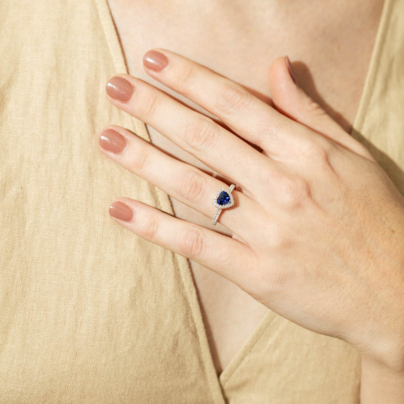 Stunning in colour, this heart shaped blue sapphire from Sri Lanka combines with exceptional sparkle to make a luminous statement in this gorgeous 18ct white gold Sierra ring from our signature 1899 collection.