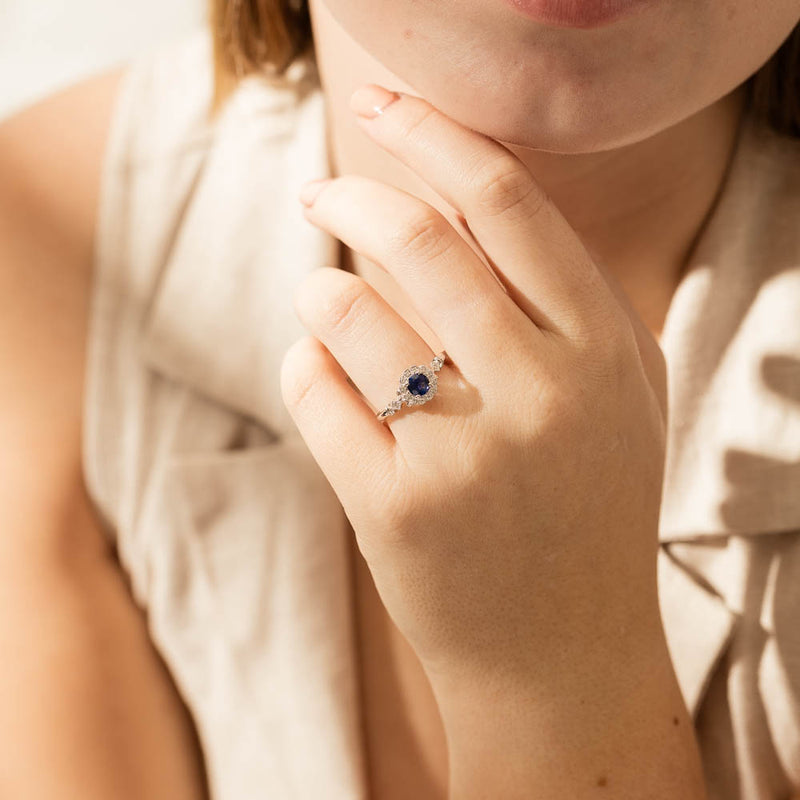 With scintillating sparkle, this radiant sapphire Versaille ring is sure to have you smiling. Crafted from 18ct white gold from our signature 1899 collection, this beautiful ring boasts a sapphire framed by a delicate diamond halo and band. You will fall in love.
