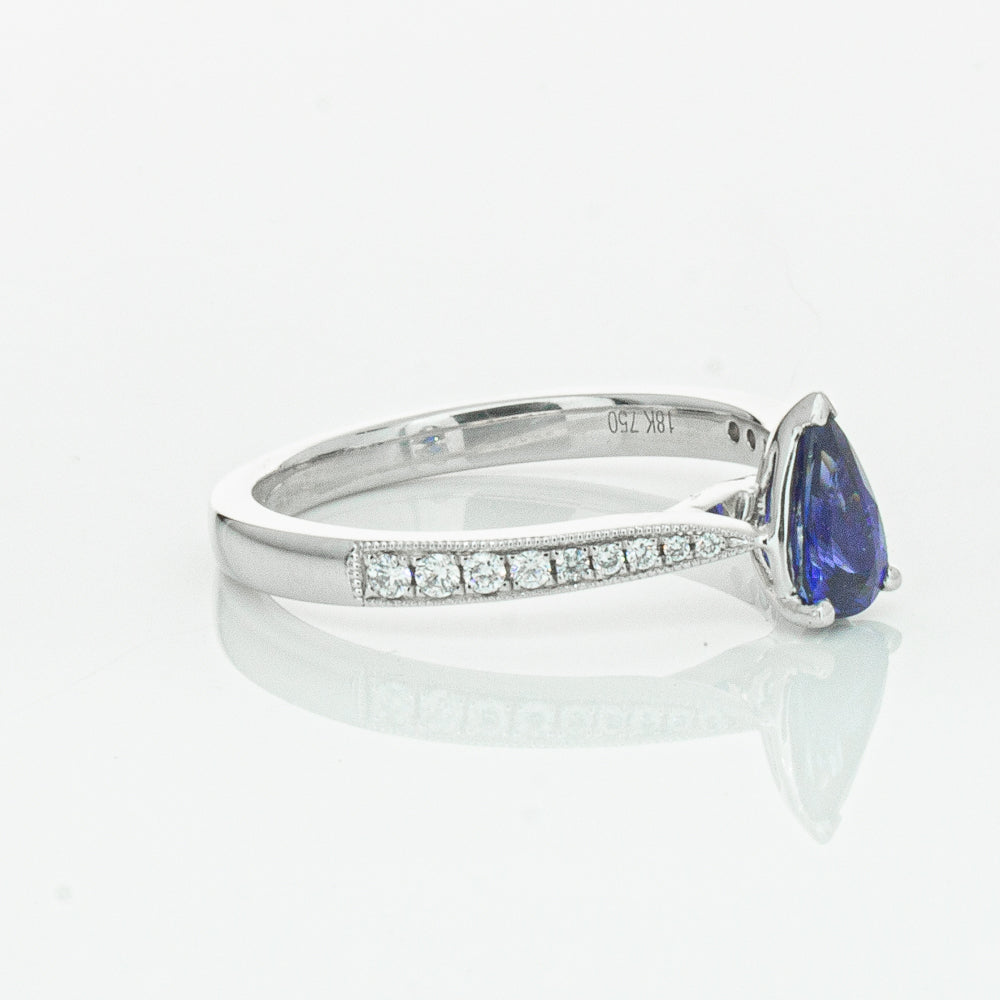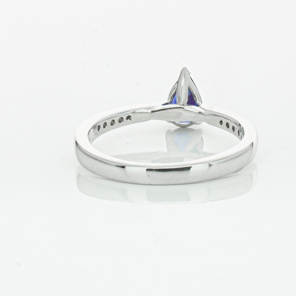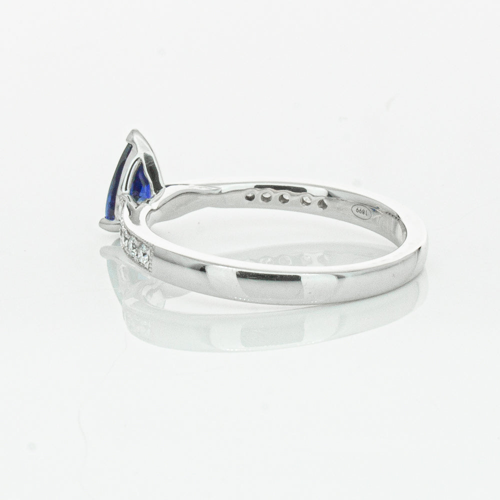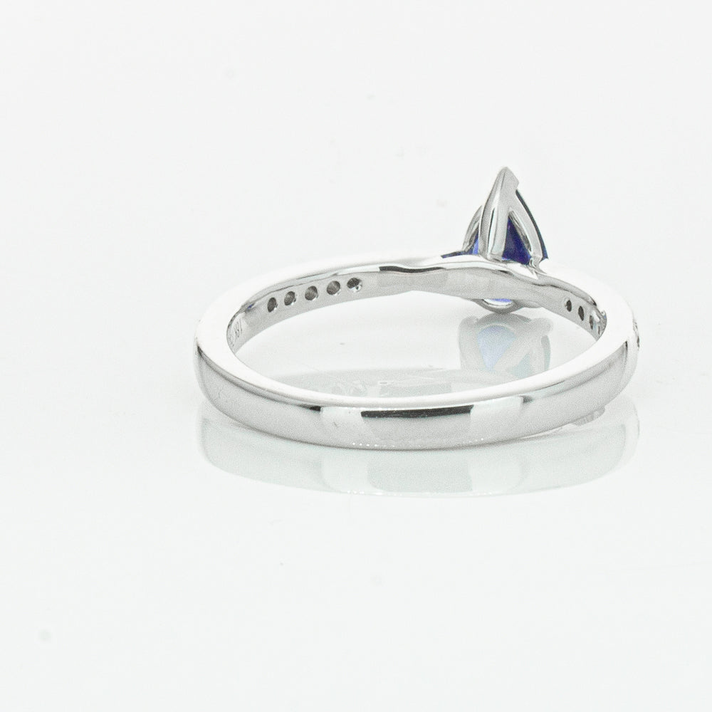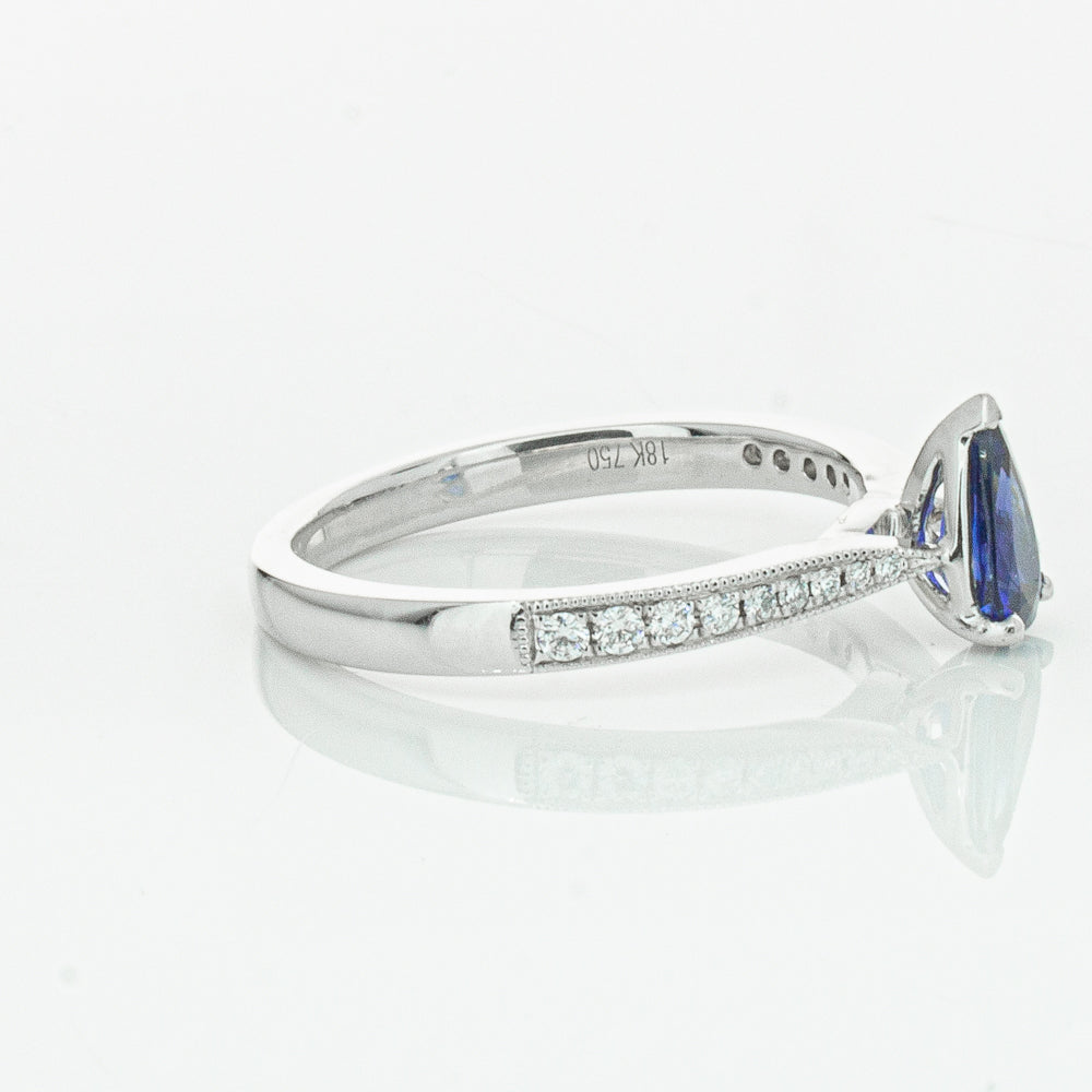 You will light up when you sees this mesmerising sapphire and diamond Zenith ring. Crafted to perfection in 18ct white gold this elegant ring boasts a six claw set pear faceted sapphire which rests on sleek diamond set shoulders.