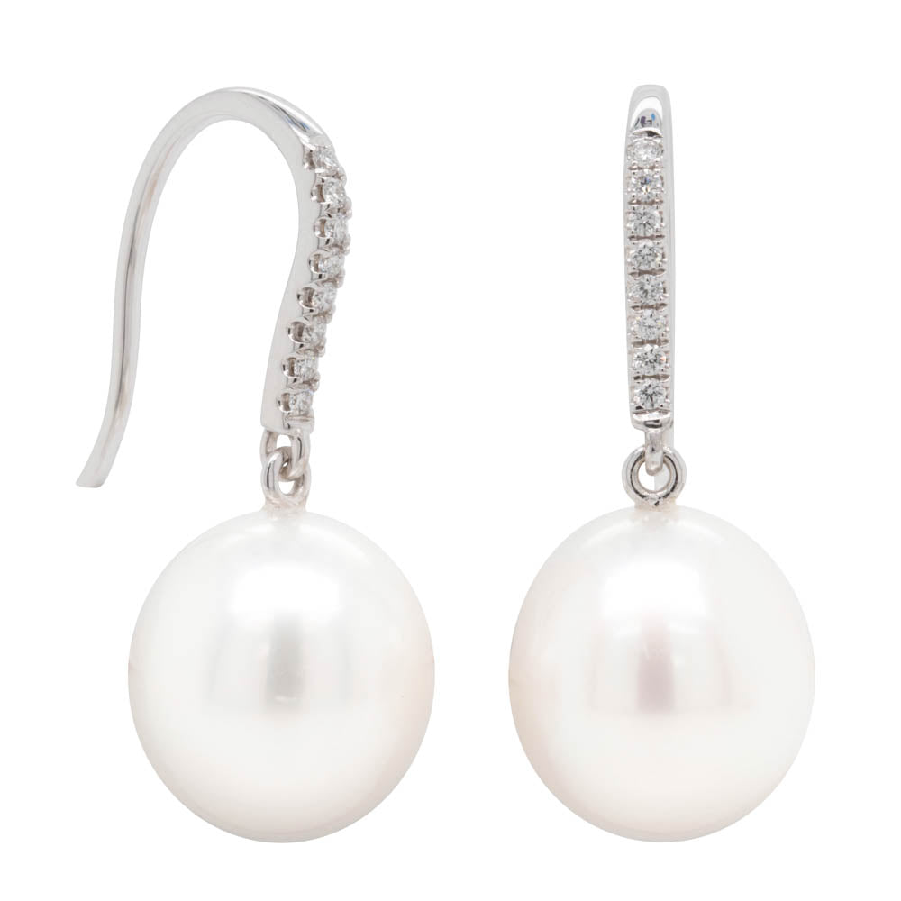 18ct White Gold South Sea Pearl & Diamond Earrings