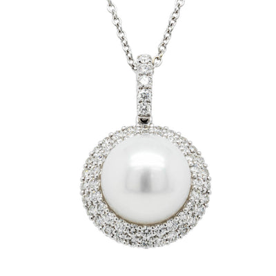 18ct White Gold South Sea Pearl & Diamond Halo Pendant