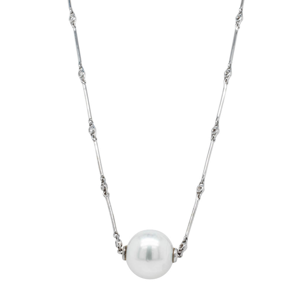 18ct White Gold South Sea Pearl Pendant With Diamond Set Chain