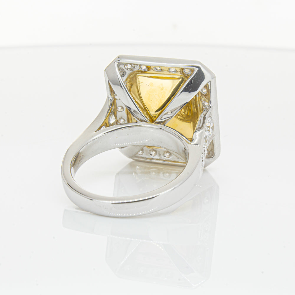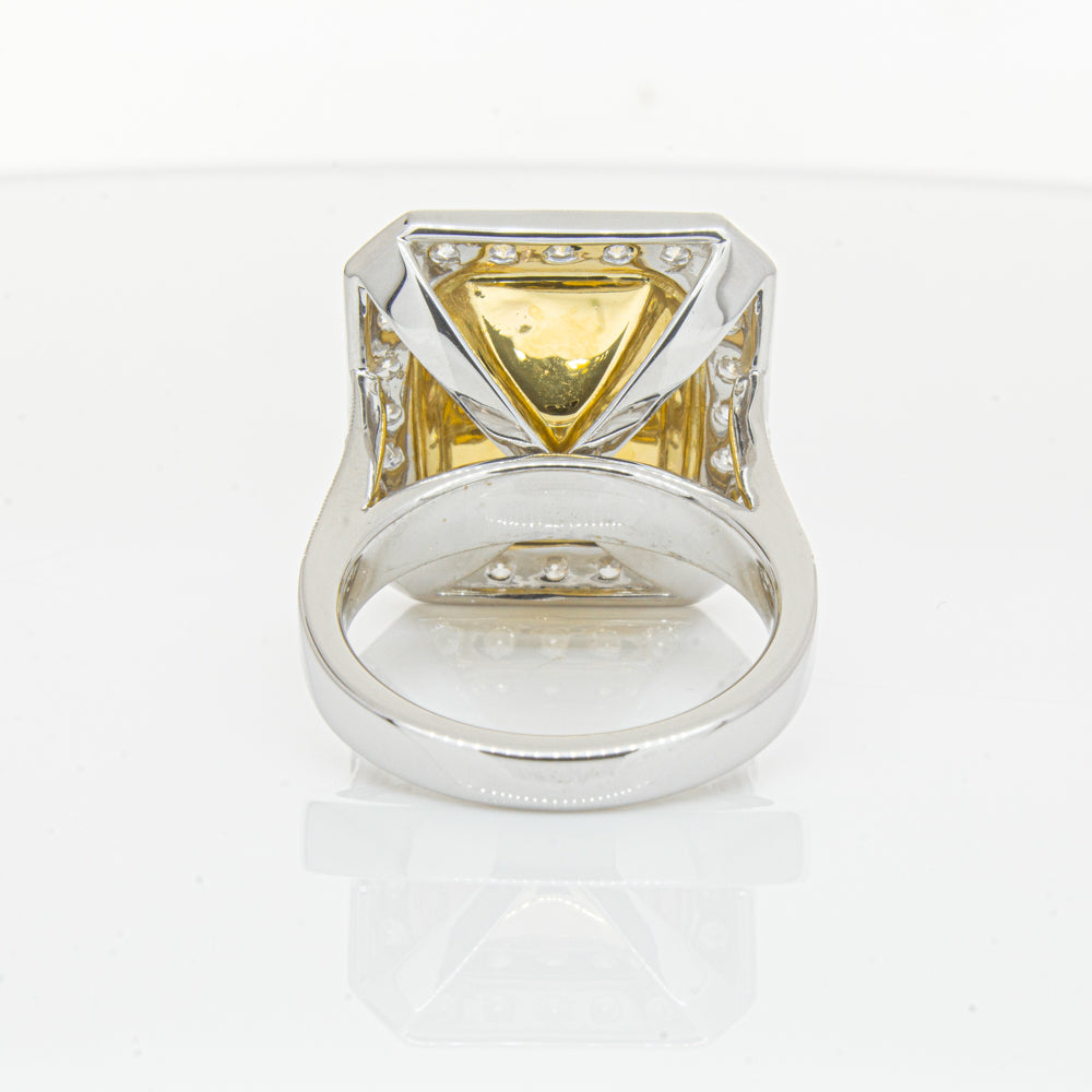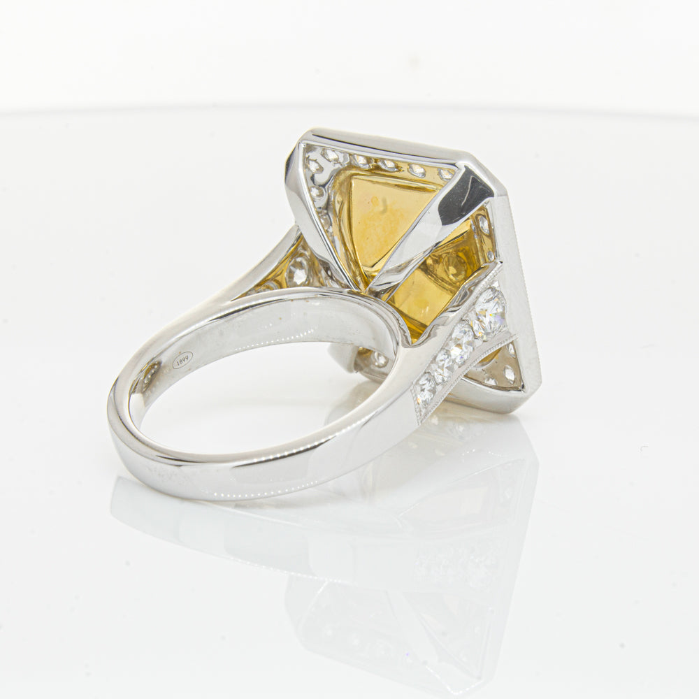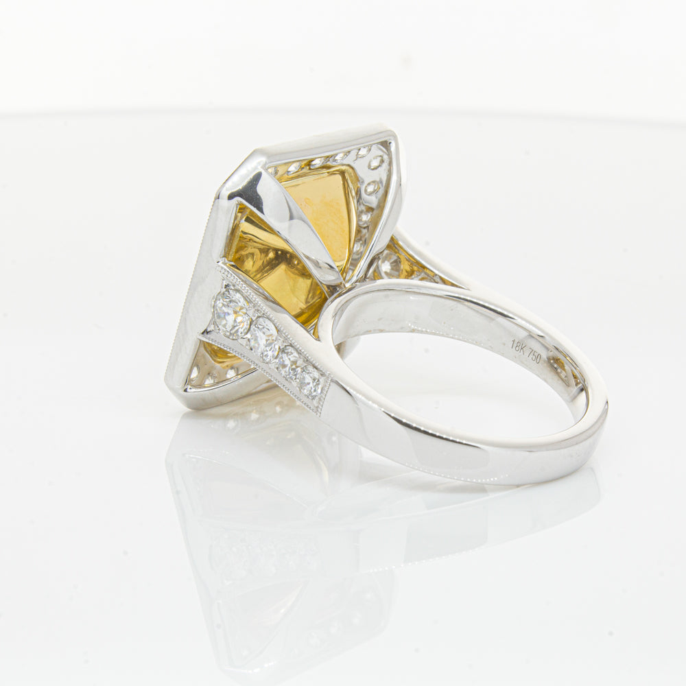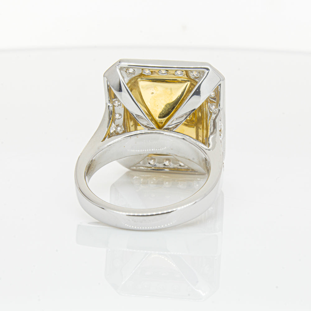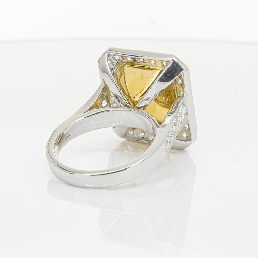 Designed to impress, this exquisite tanzanite and diamond ring will leave you speechless. This sophisticated ring boasts a shimmering deep violet-blue tanzanite set in 18ct white and yellow gold with a step cut shaped diamond halo.