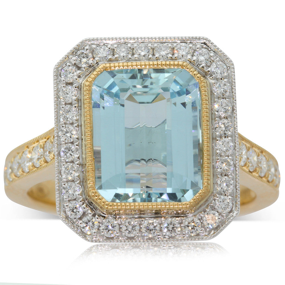 18ct Yellow & 18ct White Gold Aquamarine Ring