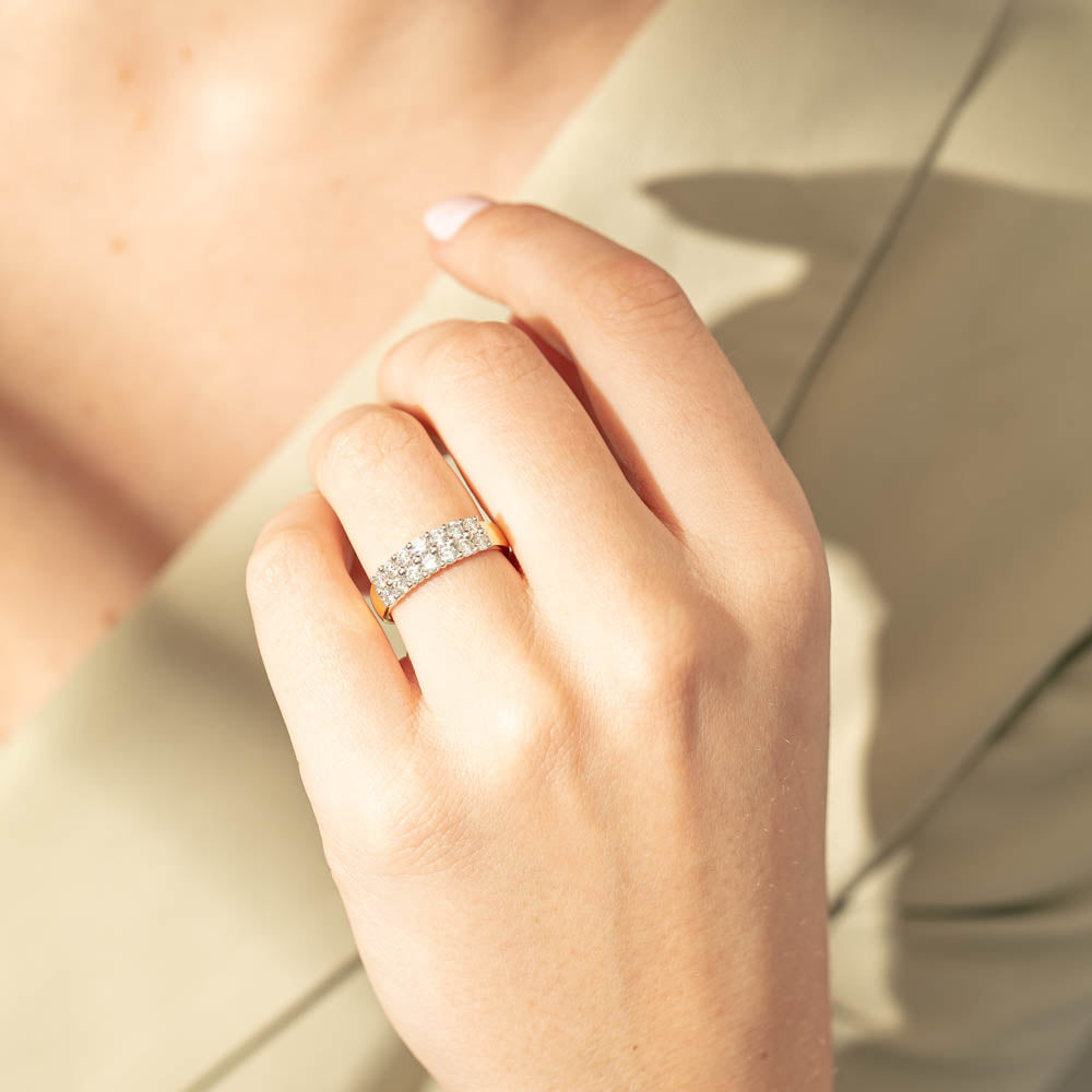 18ct yellow gold Apollo ring with 18ct white gold setting from our signature 1899 collection, featuring fourteen round brilliant cut diamonds with a total diamond weight of 1.00cts.