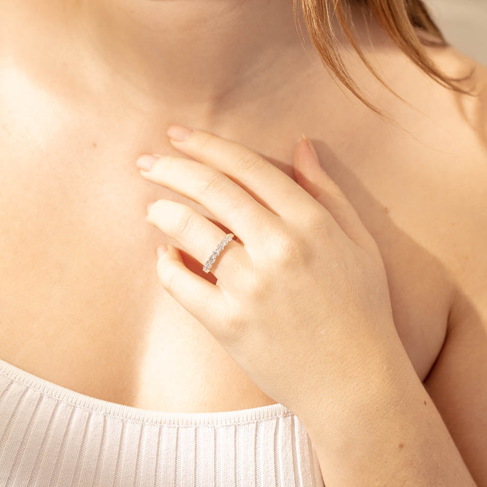 Panorama rings feature a classic prong setting which allows the gemstones to nestle close to another, a perfect reflection of the relationship it represents. Each diamond sits low to allow this style to be worn elegantly next to other rings – an ideal wedding band or stacking ring which is so stunning in its simplicity you will also look forward to letting it shine on its own.