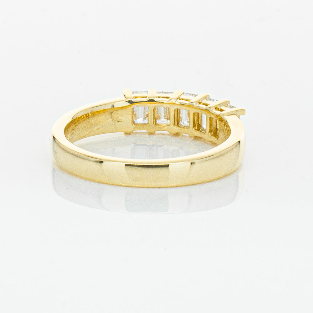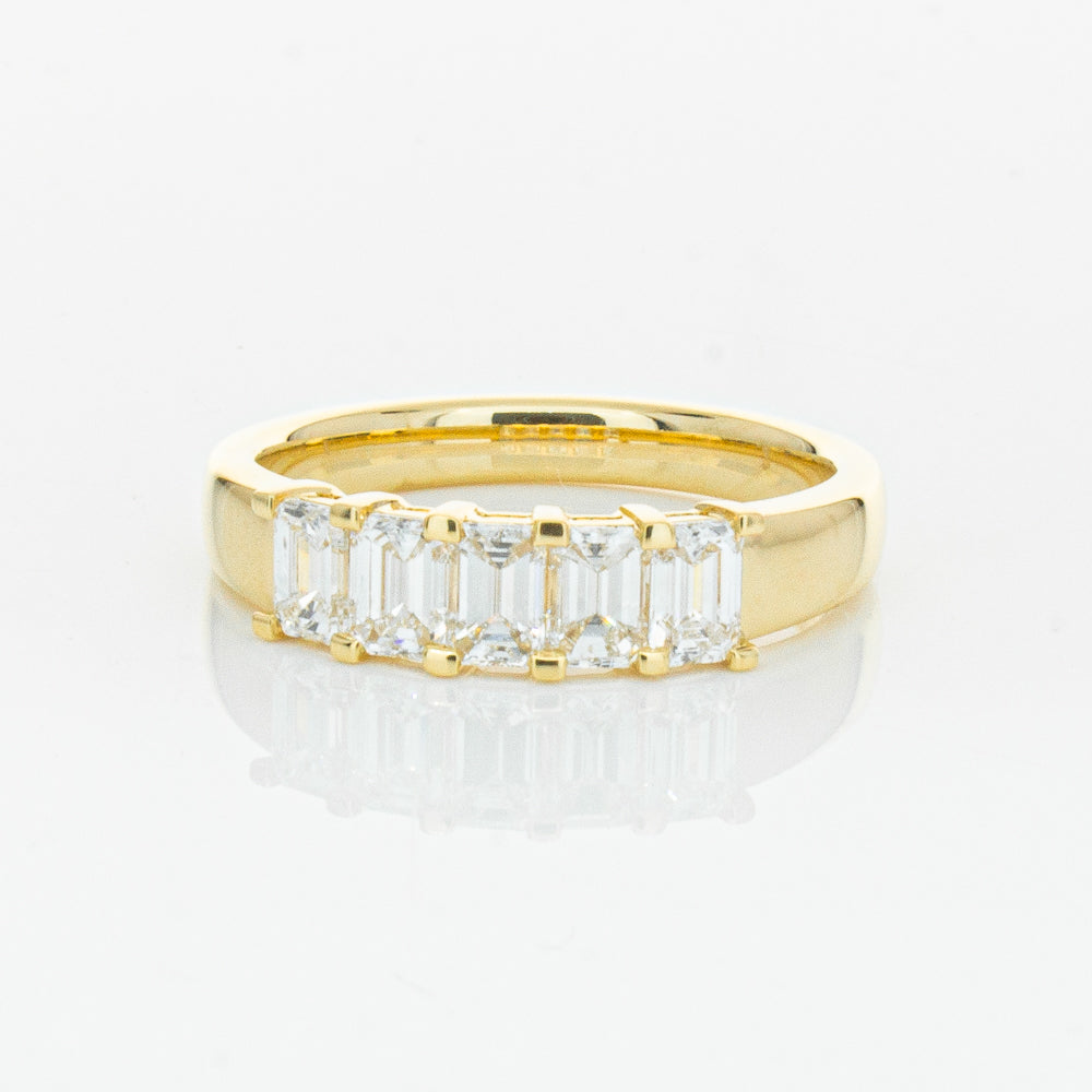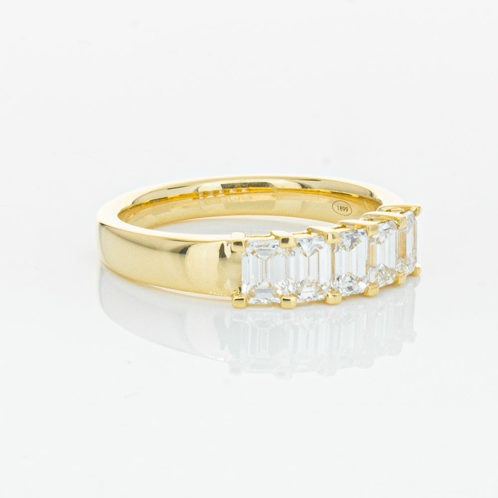 A luxurious display of emerald-cut diamonds punctuates its brilliance set for seamless sparkle giving it a spirit of timeless glamour.