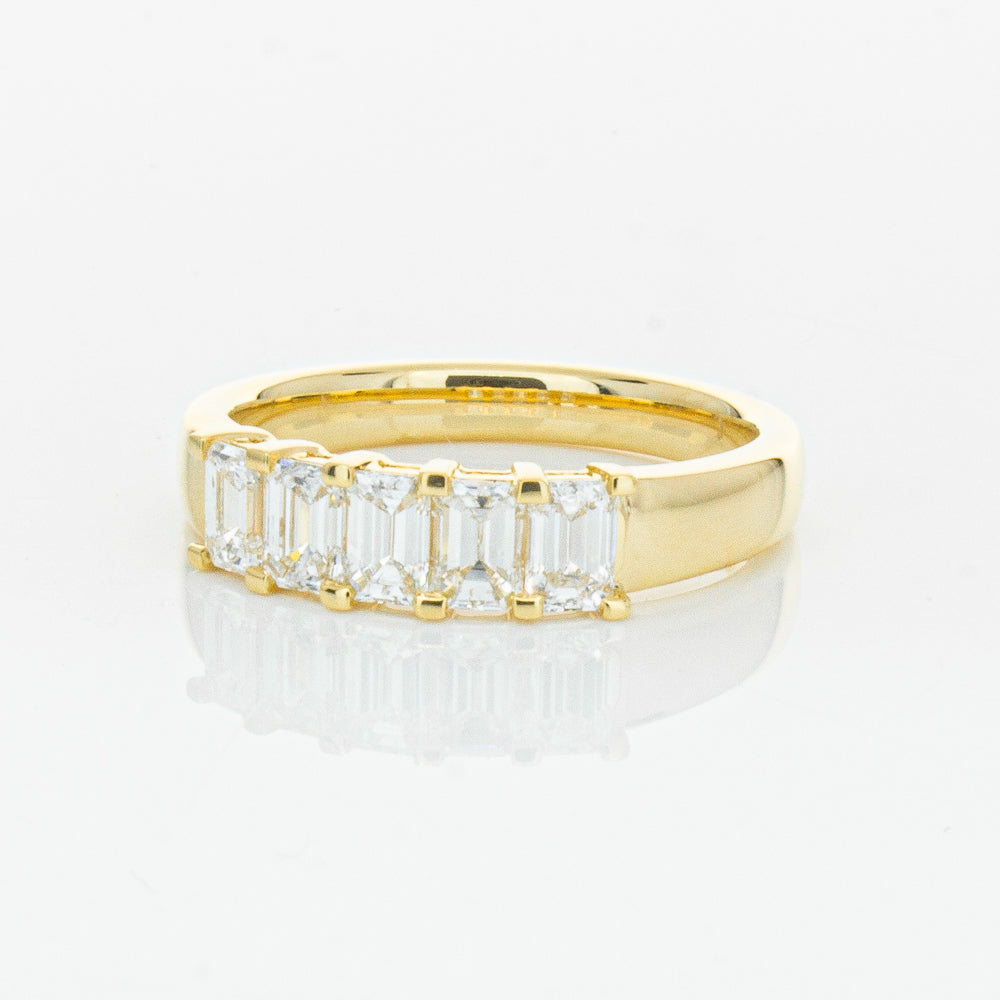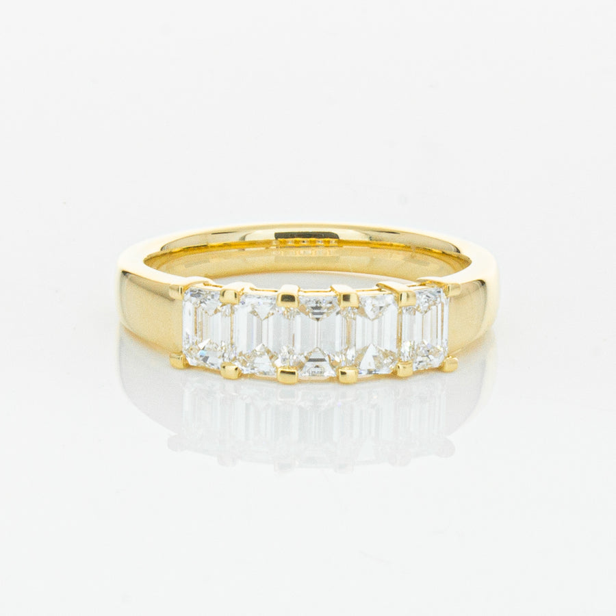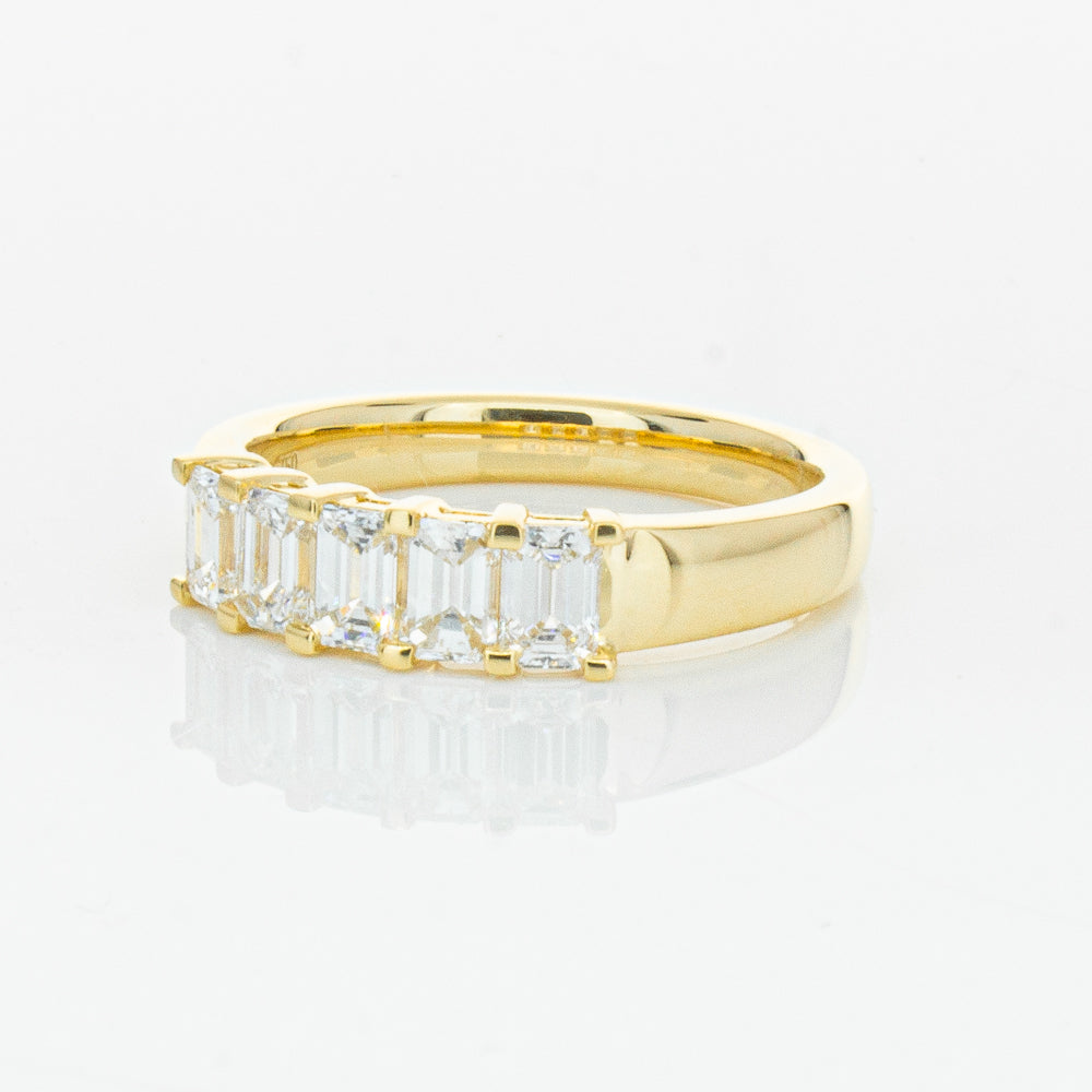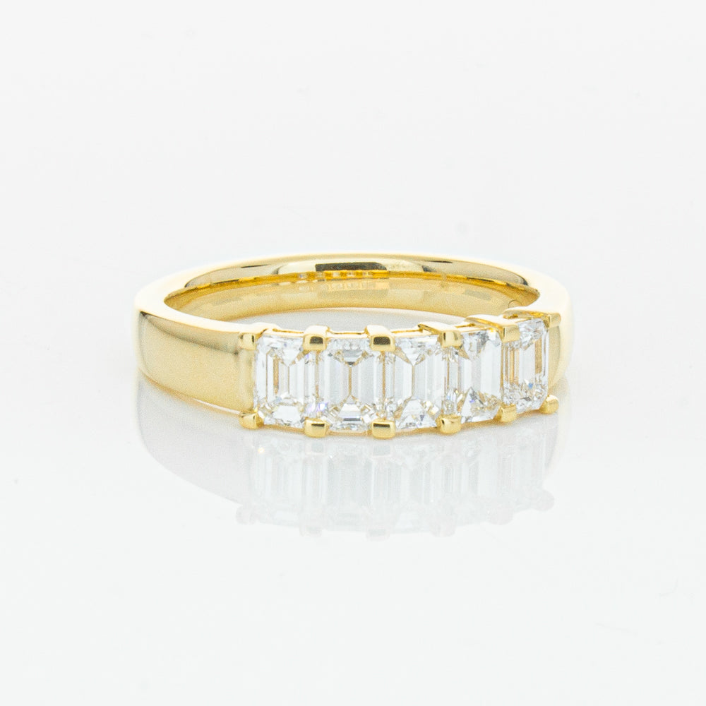 A luxurious display of emerald-cut diamonds punctuates its brilliance set for seamless sparkle giving it a spirit of timeless glamour.
