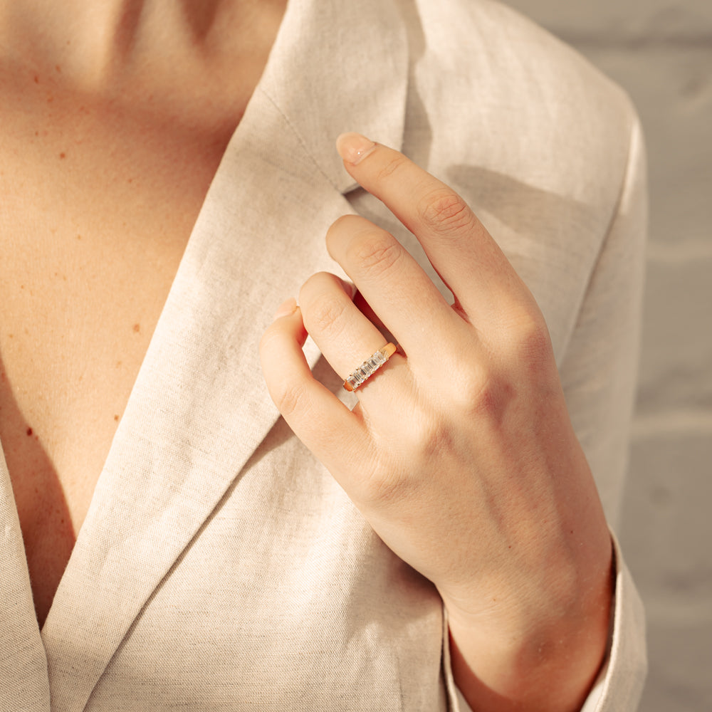 Presenting a ring symbolic of a never-ending river of paradise, the Asra pays tribute to the night time traveller. A luxurious display of emerald-cut diamonds punctuates its brilliance set for seamless sparkle giving it a spirit of timeless glamour.