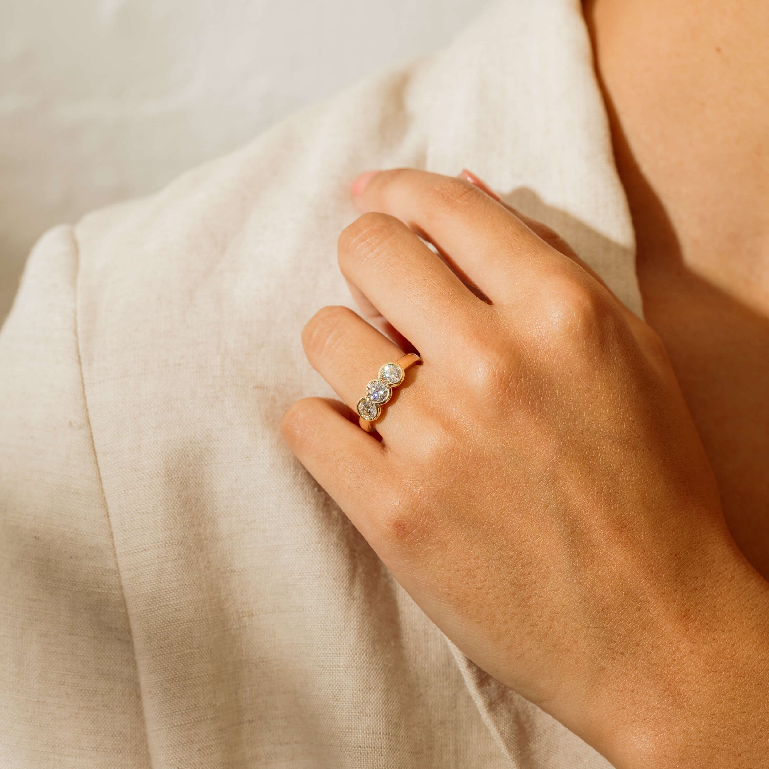 A refined, minimalist bezel frames and draws the eye to the sparkling gemstone at the centre.