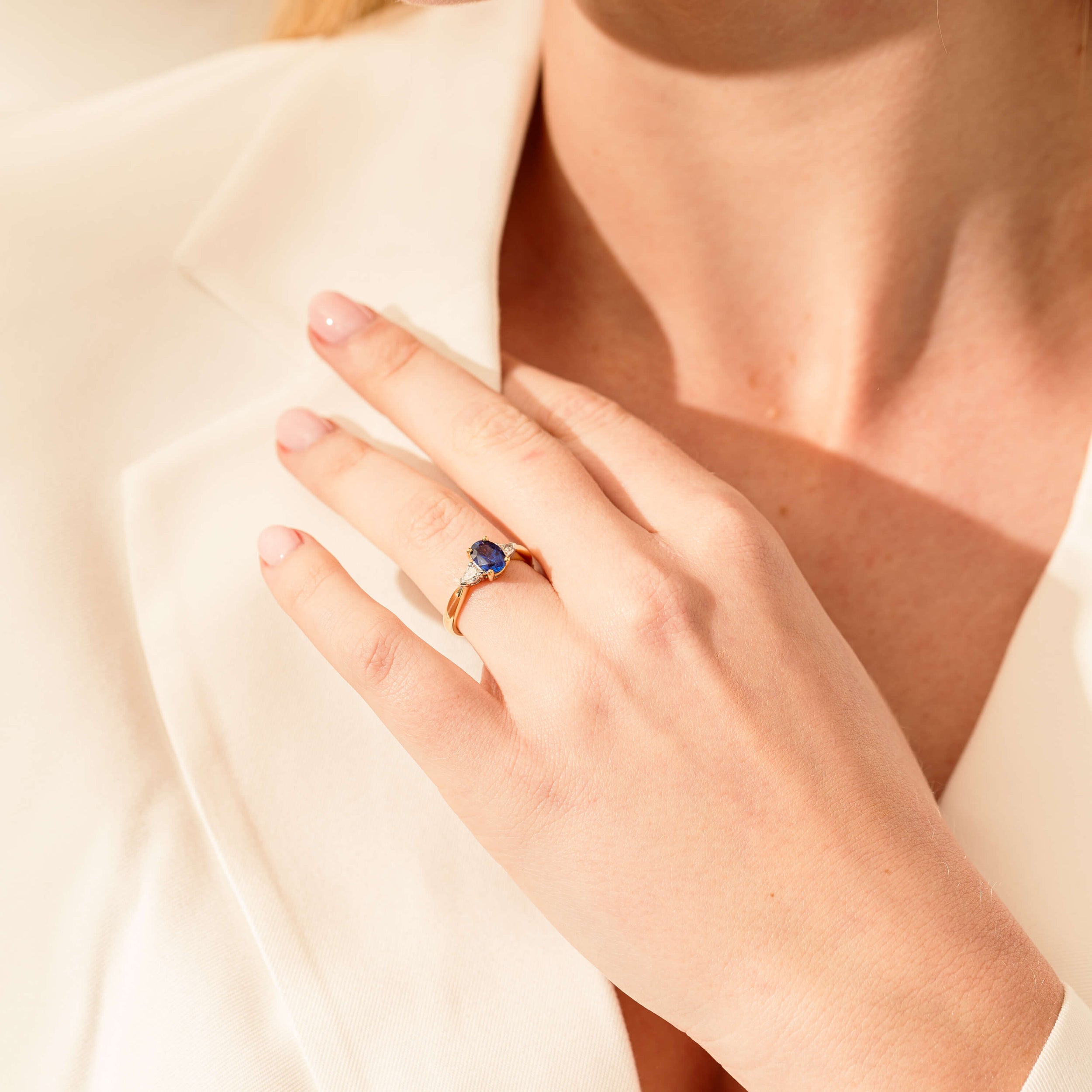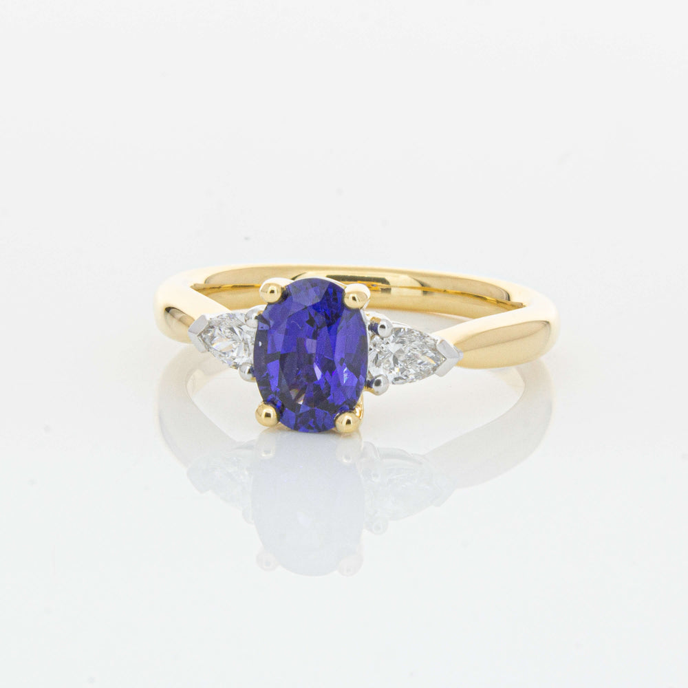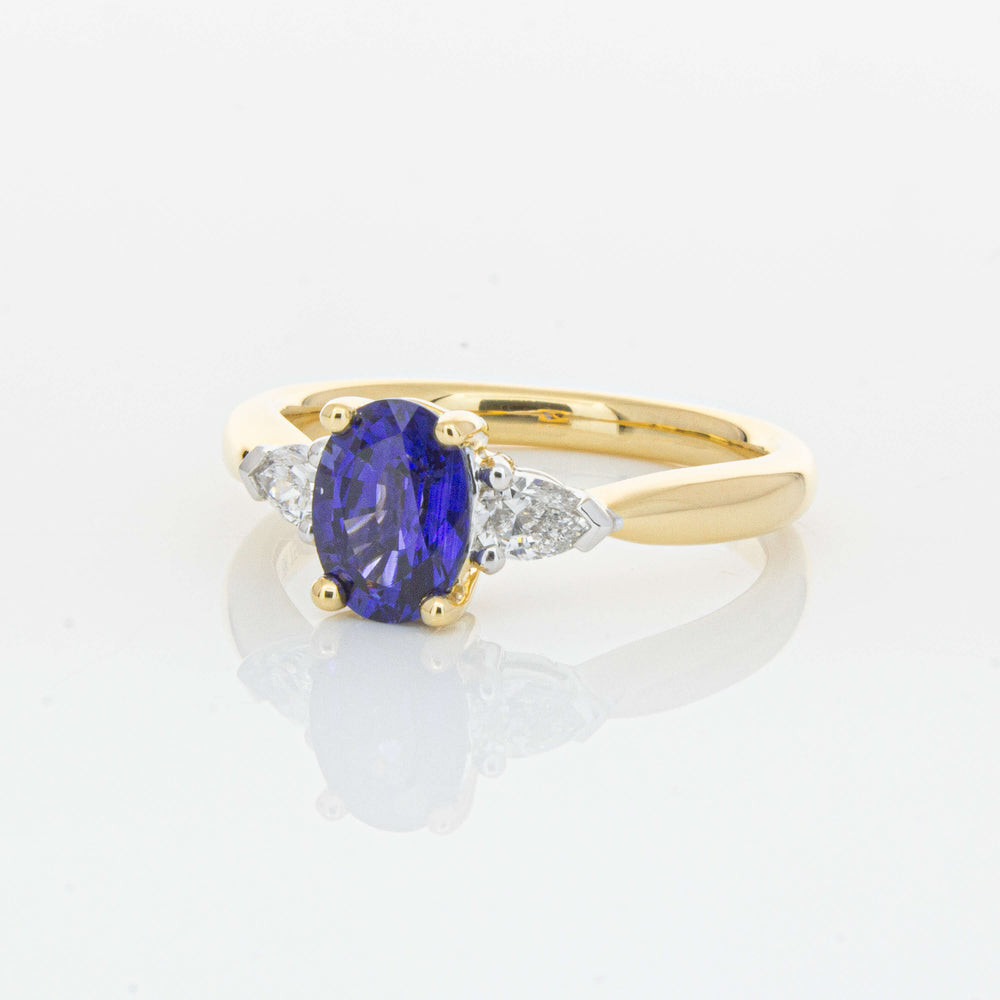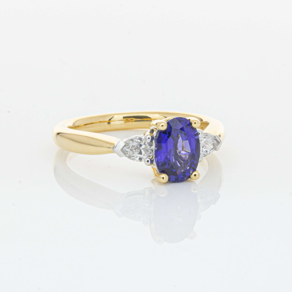 "Elegance is the only beauty that never fades!" Boasting a 1.33ct oval faceted sapphire from Sri Lanka and two pear brilliant cut diamonds, you will be the definition of beauty and elegance in this Ayla ring from our signature 1899 collection, beautifully set in 18ct yellow gold.