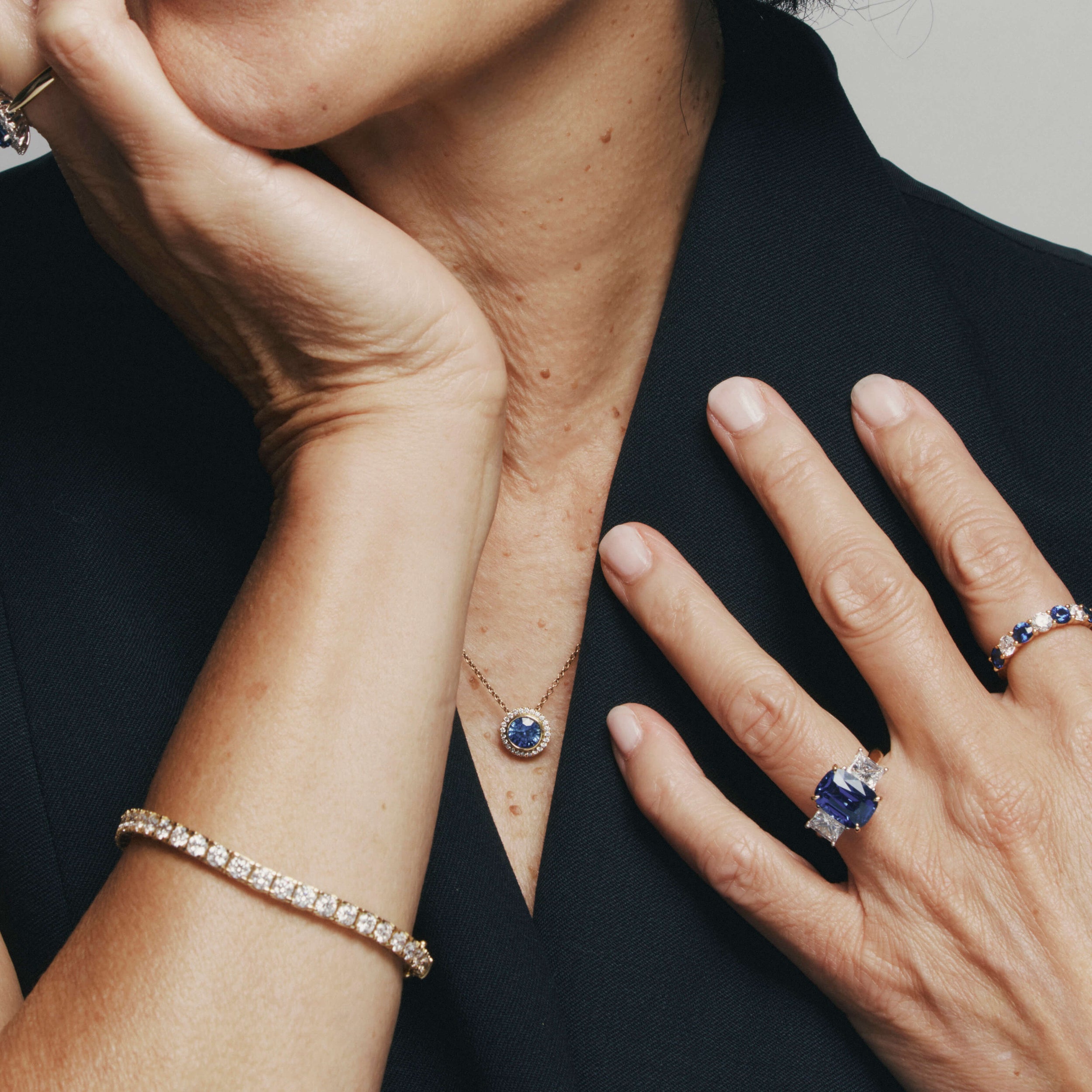 Model wearing natural diamond and gemstone jewellery from the 1899 Collection