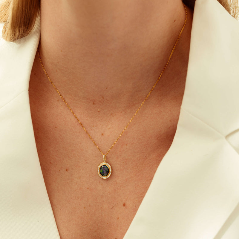 18ct Yellow Gold 1.48ct Opal & Diamond Isla Pendant