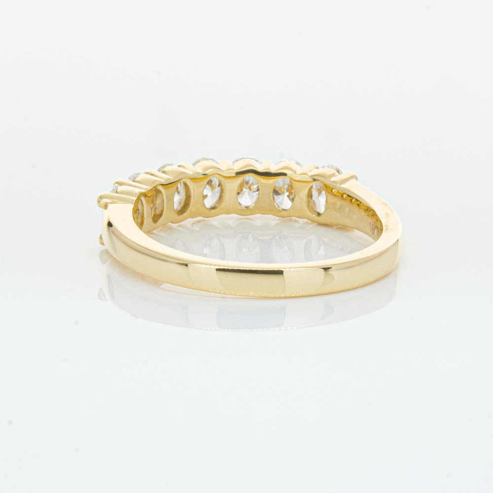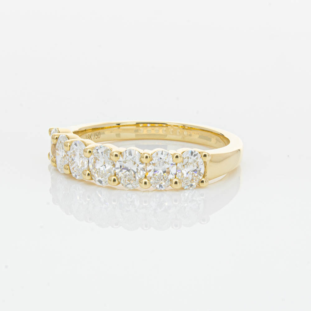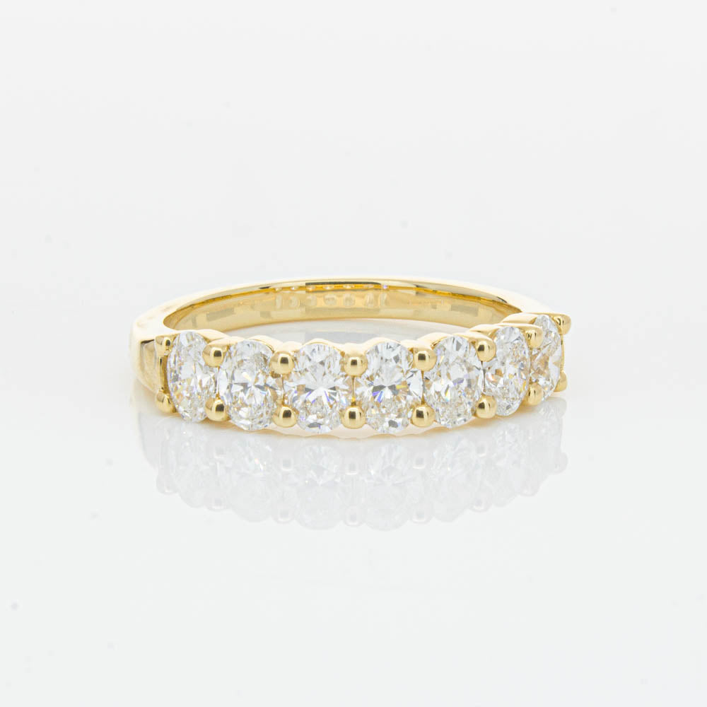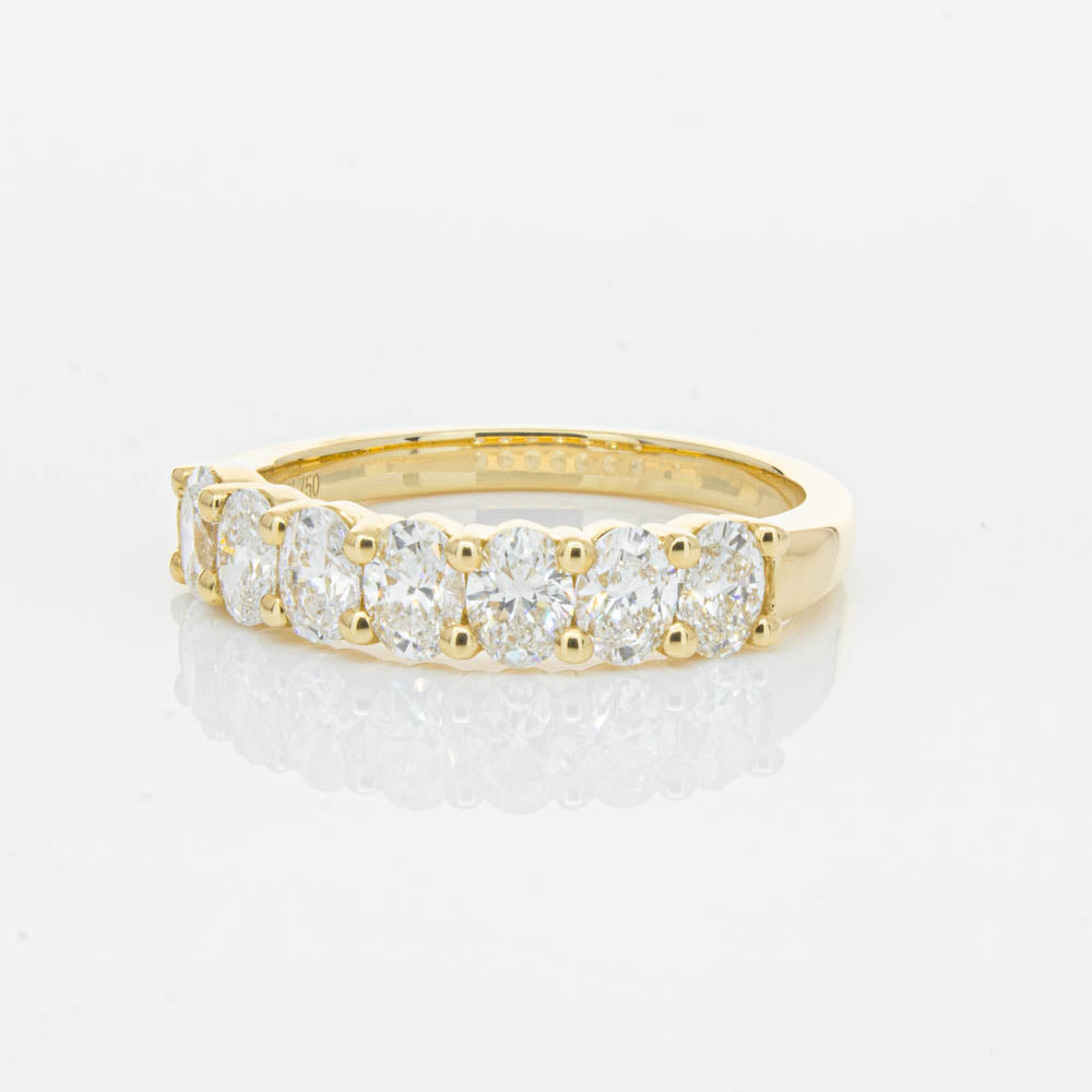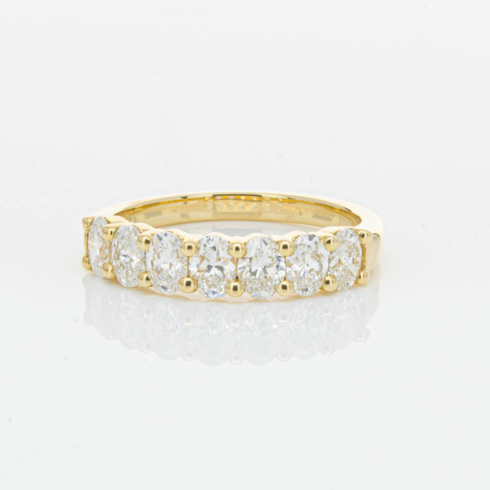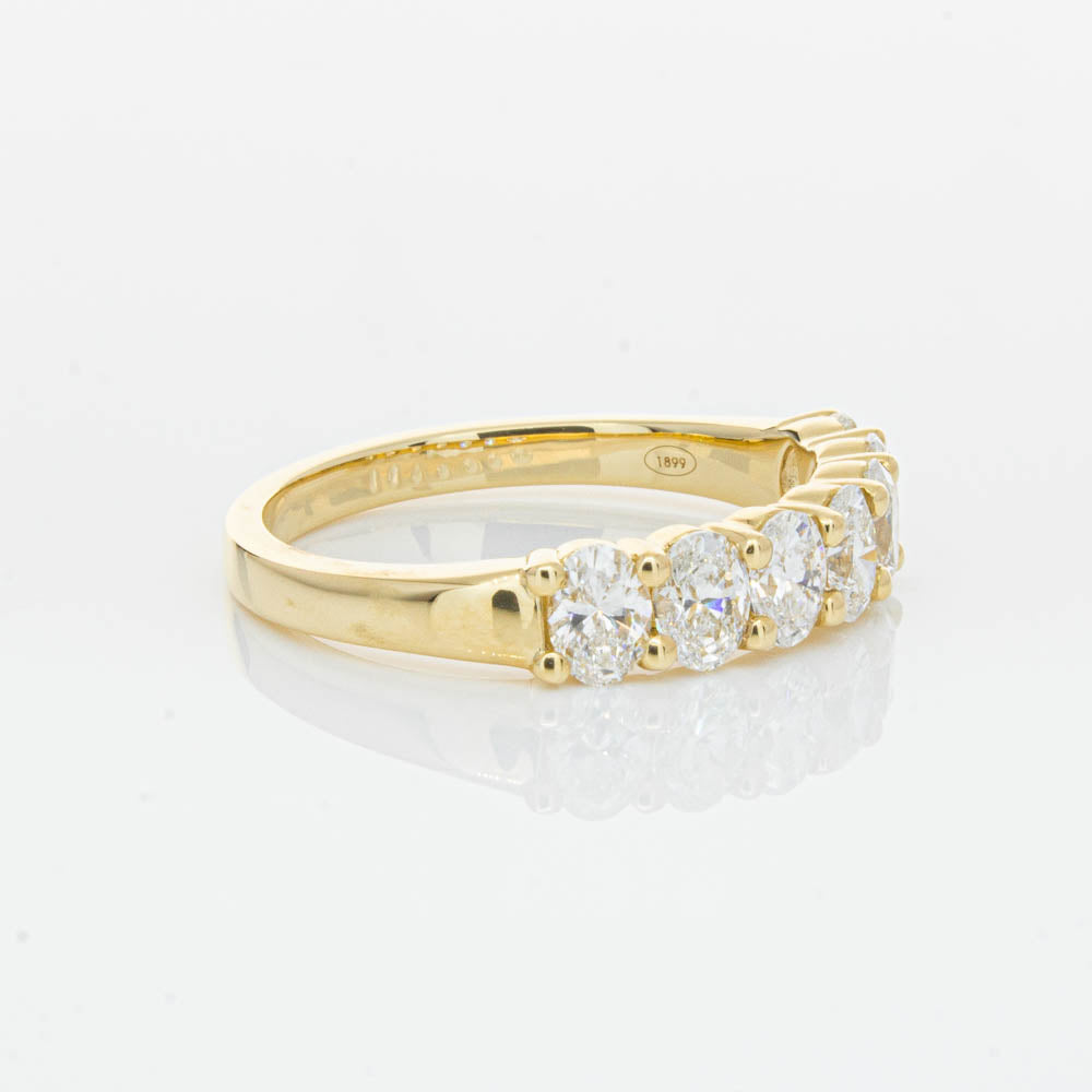 The oval panorama band sits vertically and is carefully crafted in 18ct yellow gold from our signature 1899 collection. This tapering band is 2.3-3mm wide and features seven claw set oval cut diamonds.