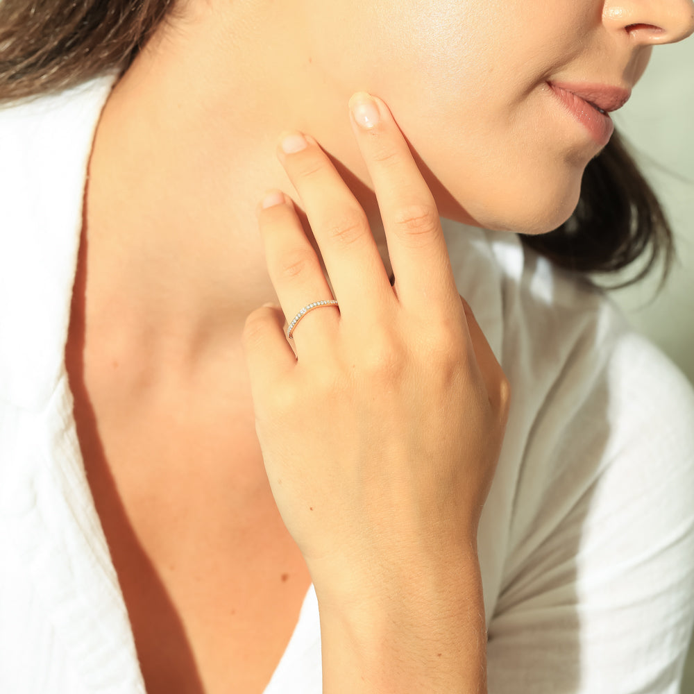 Sparkling elegance, this 18ct yellow gold and diamond Grace ring makes the perfect band to mark the occasion. This precious ring is bead set with round brilliant cut diamonds.