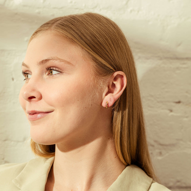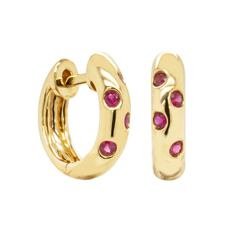 Light up the room with these timeless ruby huggie earrings. Designed to 'hug' the earlobe, these beautiful earrings are crafted in 18ct yellow gold and feature eight round faceted rubies.