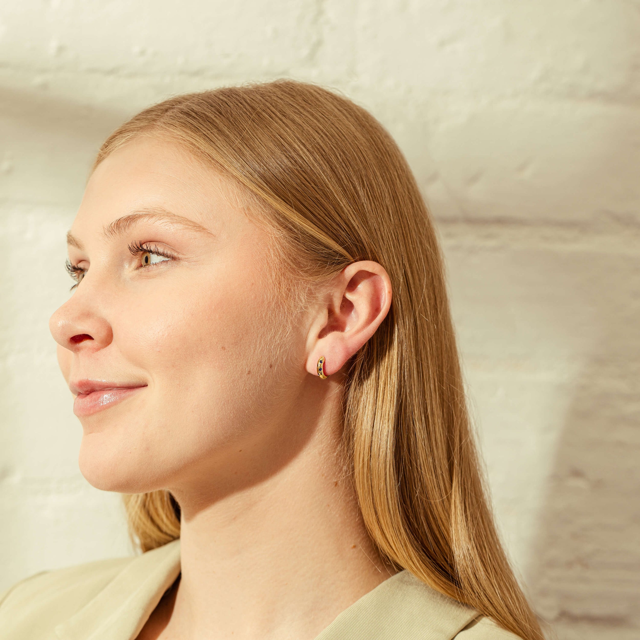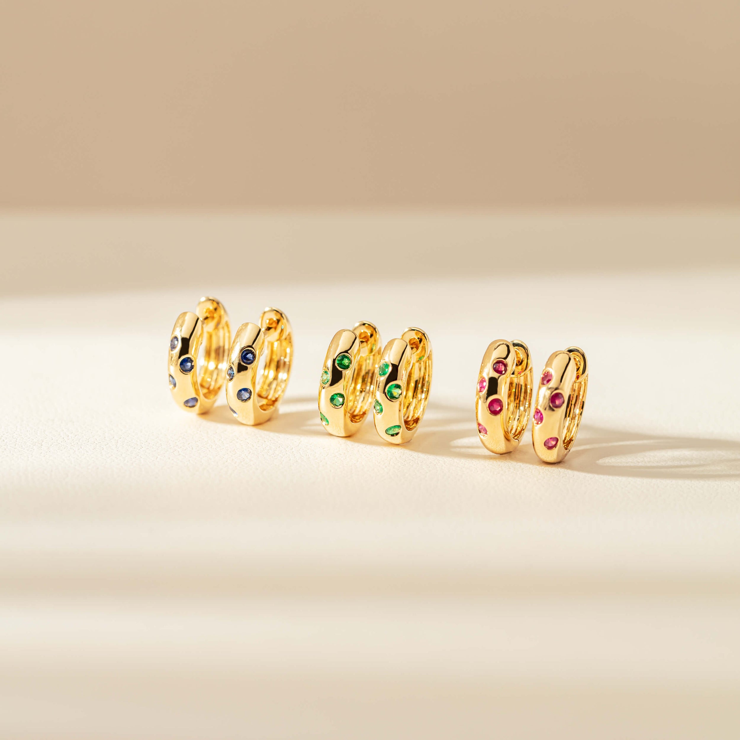 View BagLight up the room with these timeless sapphire huggie earrings. Designed to 'hug' the earlobe, these beautiful earrings are crafted in 18ct yellow gold and feature eight round faceted sapphires.