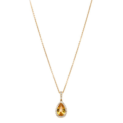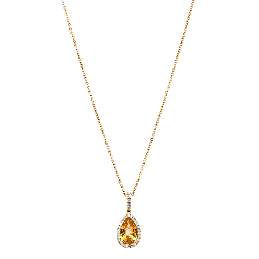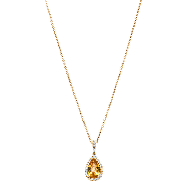 This stunning Sierra pendant, part of our 1899 collection, features a golden sapphire that exudes exceptional brilliance and radiance. Meticulously crafted in exquisite 18ct yellow gold, this pear-faceted sapphire.
