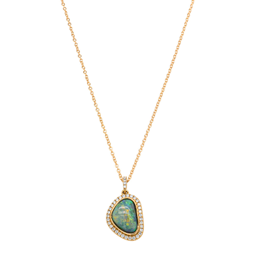 18ct Yellow Gold Freeform Opal & Diamond Isla Pendant