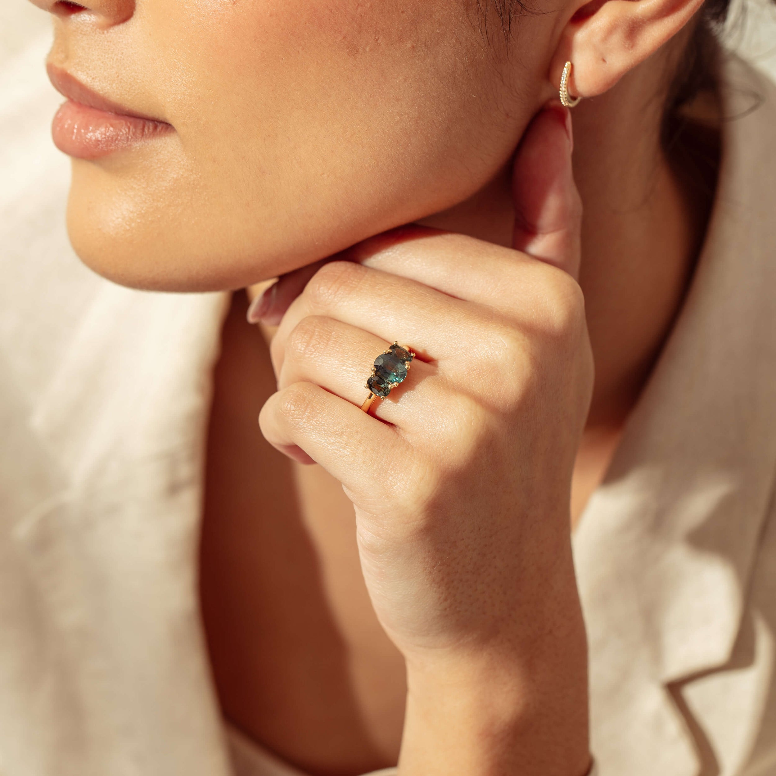 The contemporary three-stone design offers a fresh interpretation of a classic silhouette, making this ring a standout statement piece for any collection. Crafted for those who value refined elegance and vibrant detail, the Odyssey Ring is destined to be cherished for years to come.